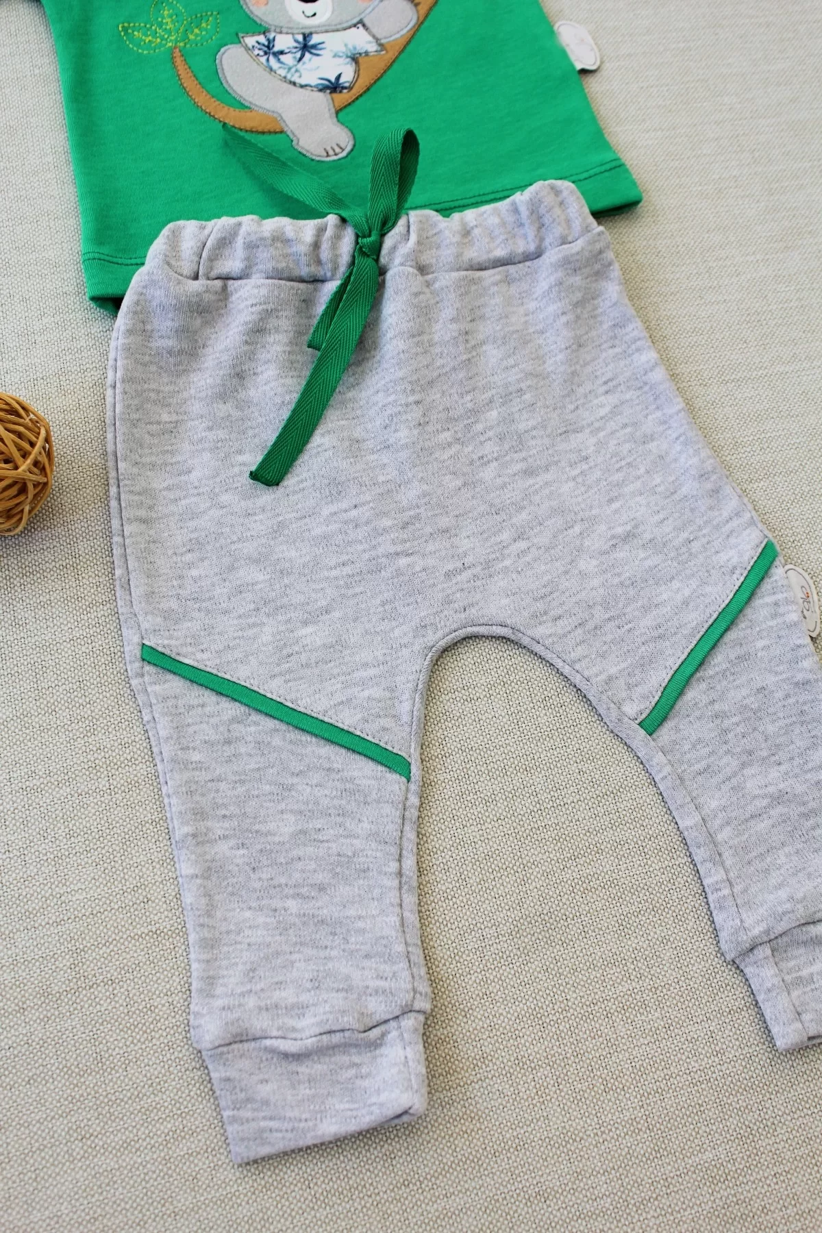 3-6 6-9 9-12 12-18 Ay Yavru Koala Nakışlı Uzun Kollu Sweat 2li Kız Erkek Bebek Takımı Yeşil