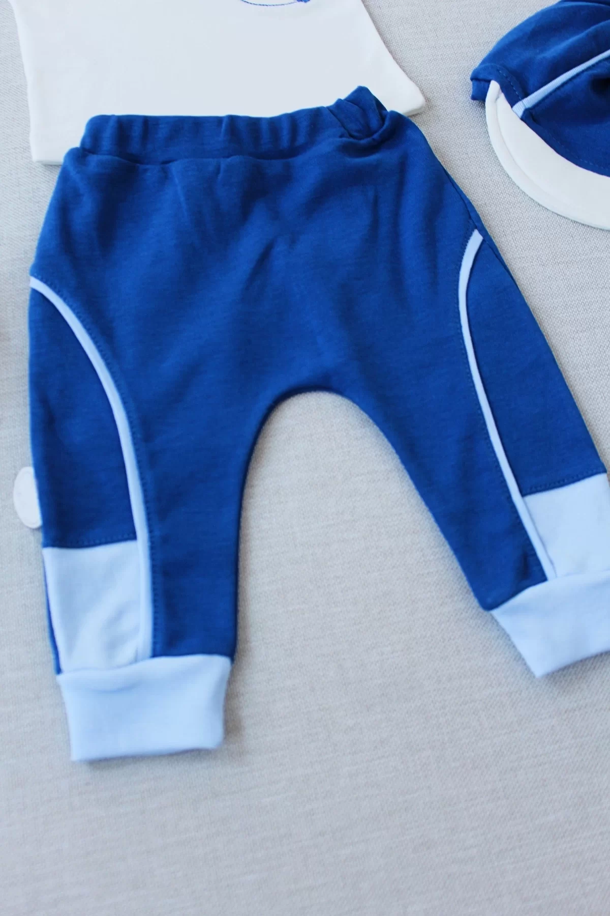 3-6 6-9 9-12 Ay Efendi Nakışlı Cep Şapkalı Uzun Kollu Sweat 3lü Erkek Bebek Takımı İndigo