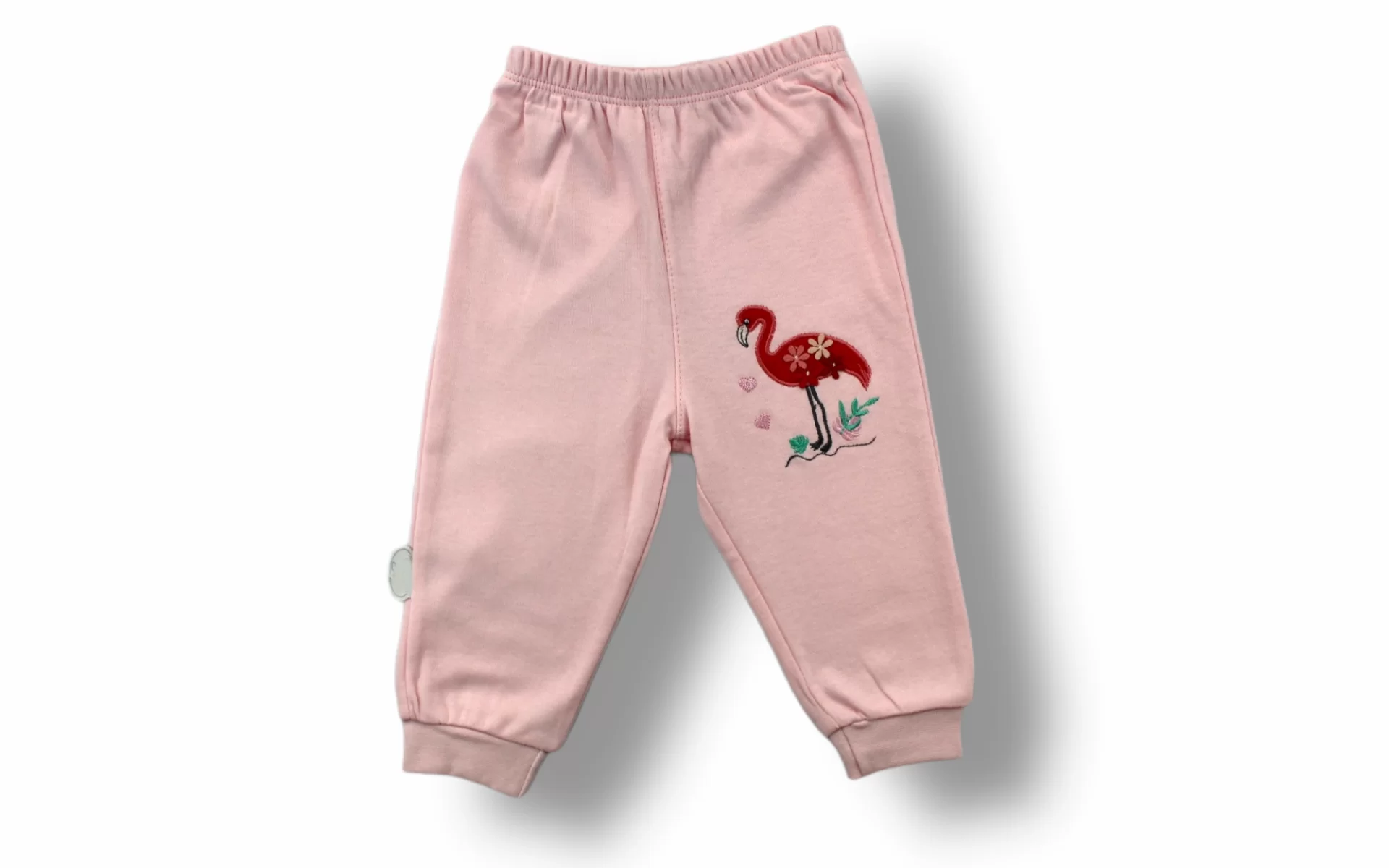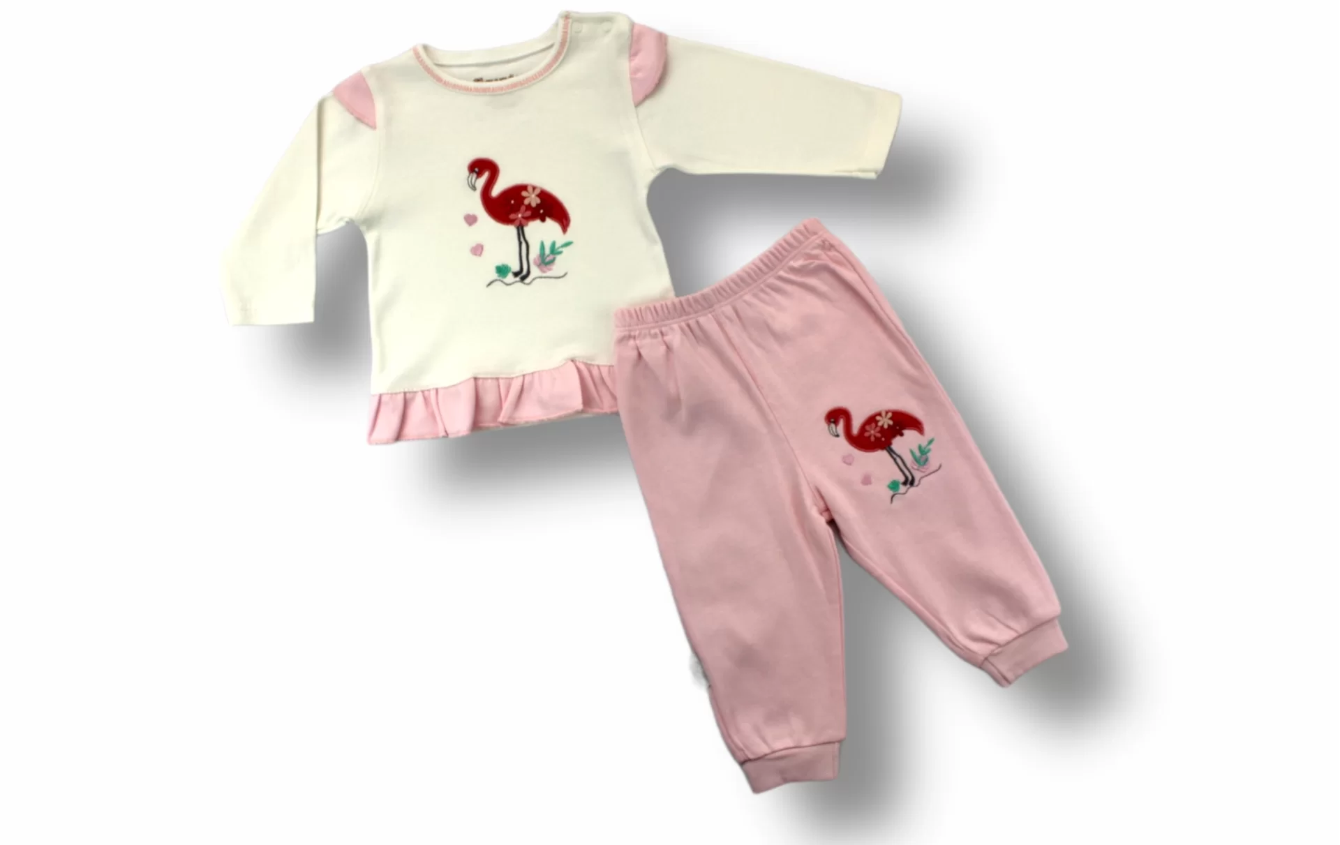 3-6 6-9 9-12 Ay Flamingo Nakışlı Uzun Kollu Sweatli 2li Kız Bebek Takımı Ekru adet