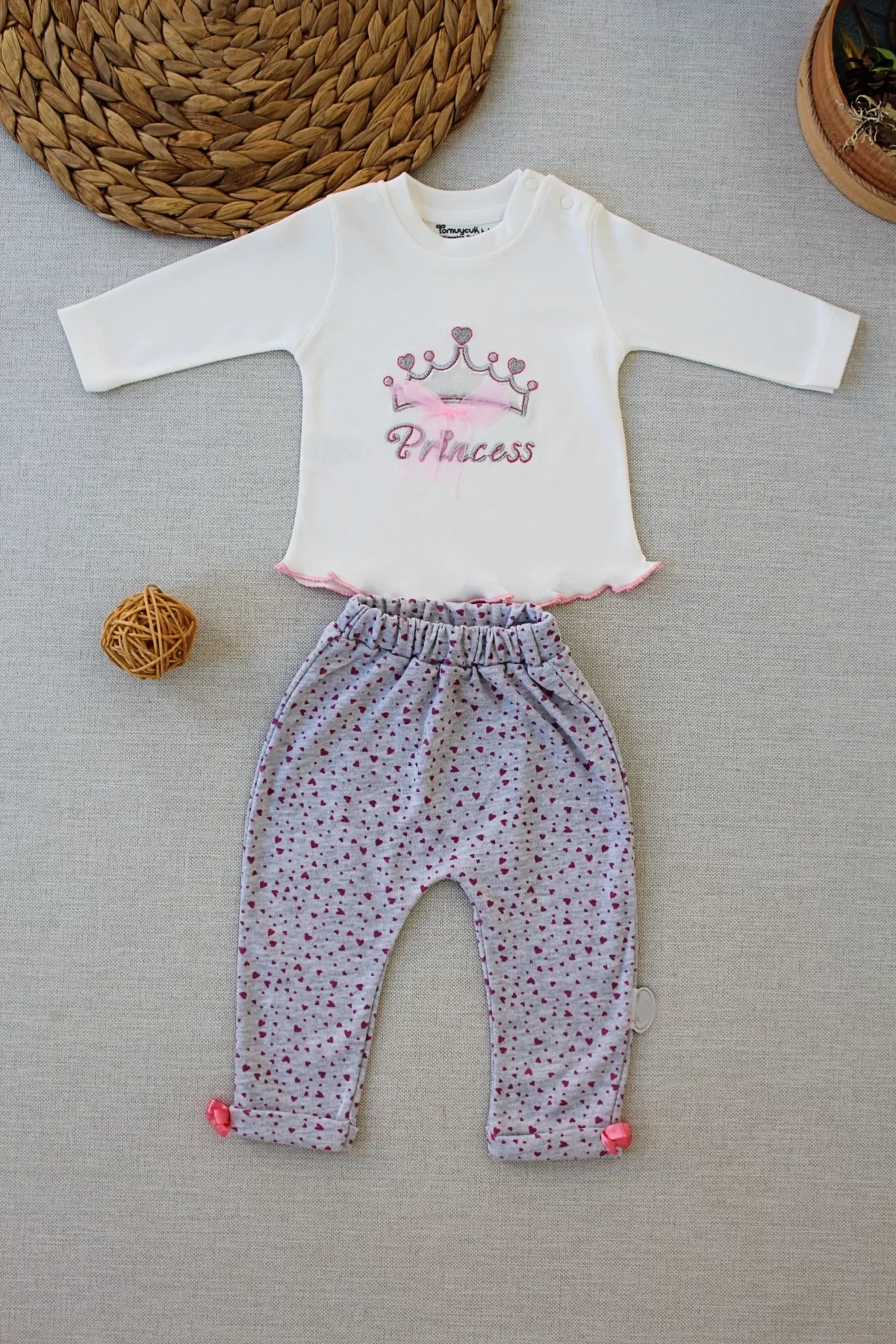 3-6 6-9 9-12 Ay Full Star Nakışlı Şapkalı Uzun Kollu Sweat 3lü Erkek Bebek Takımı Ekru