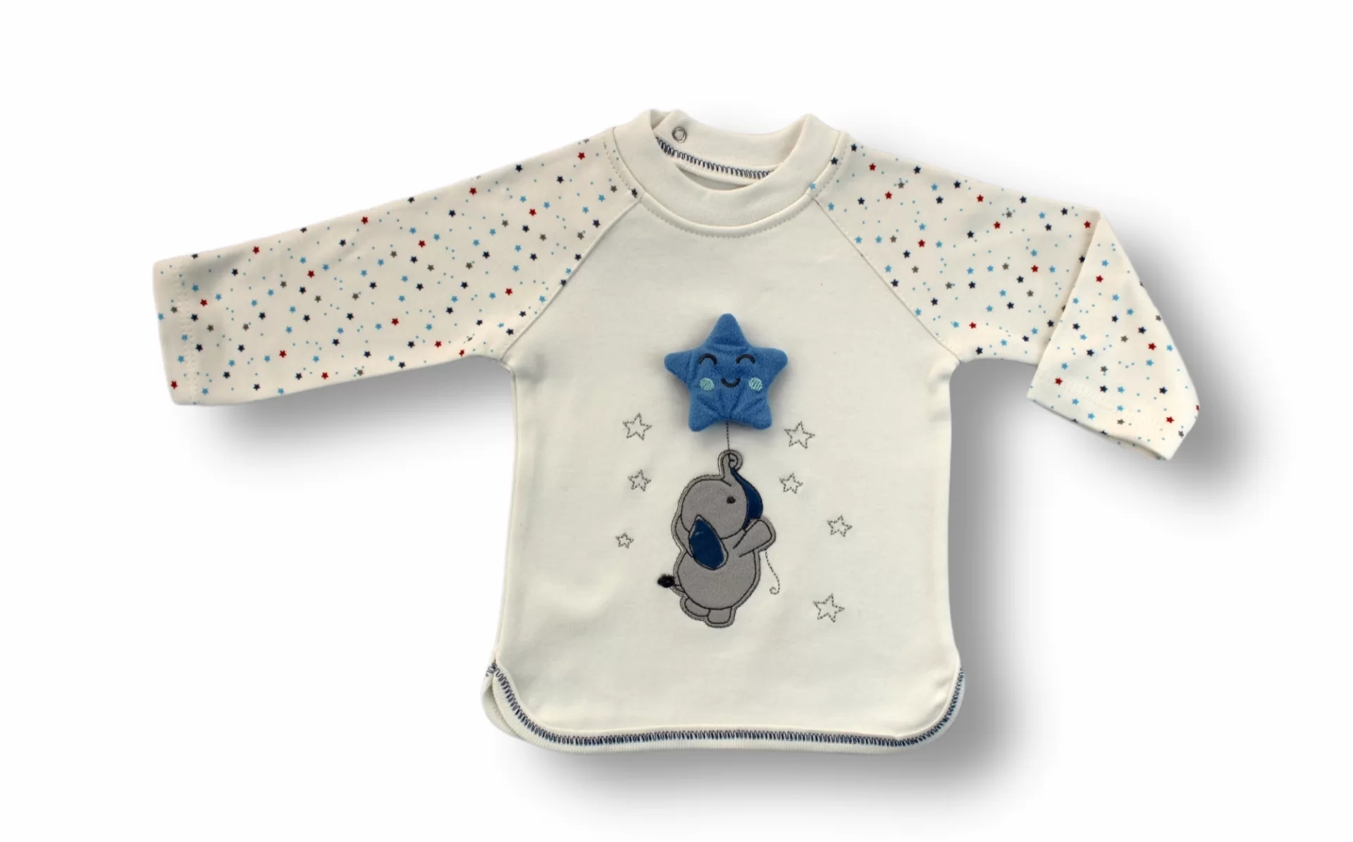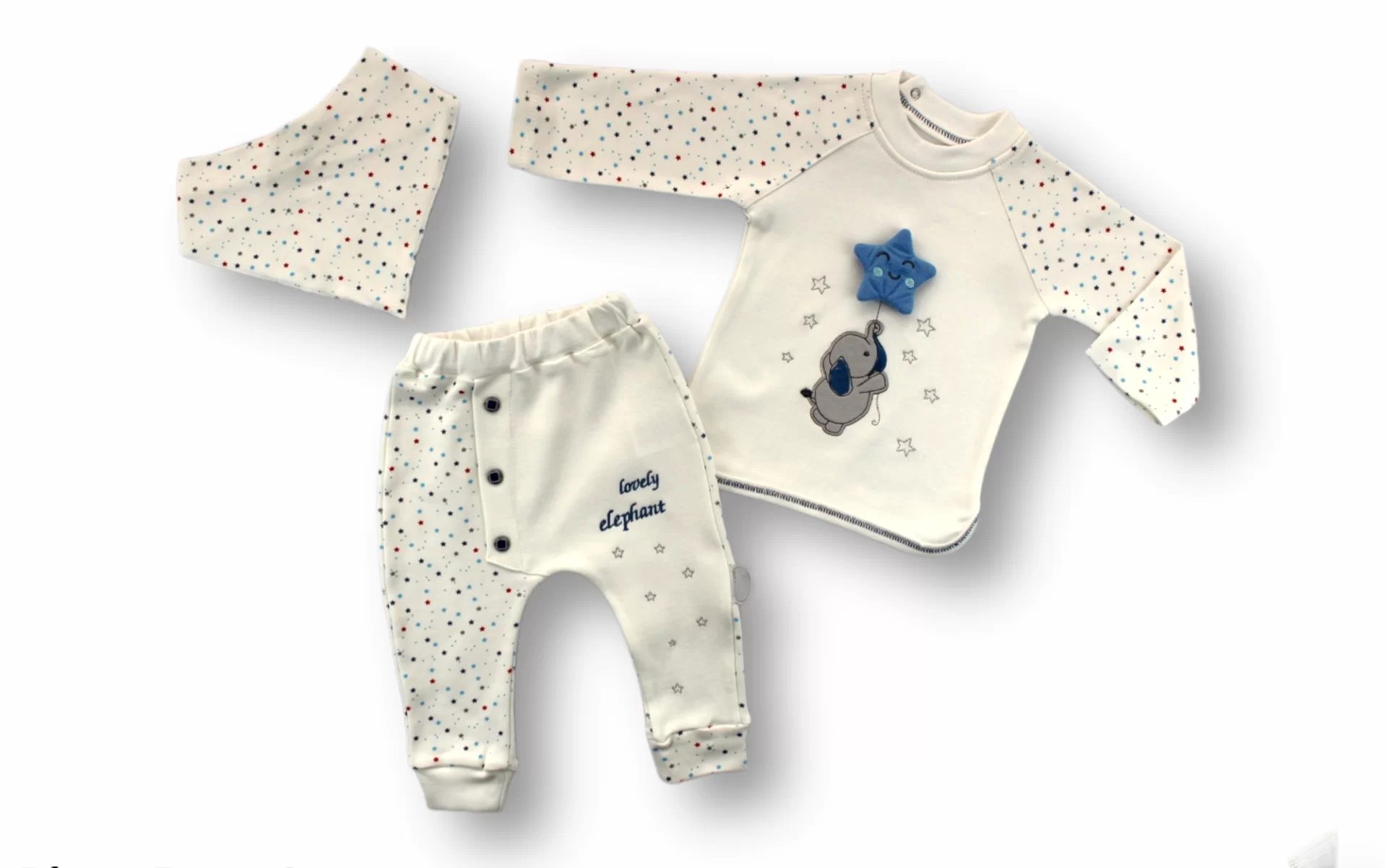 3-6 6-9 9-12 Ay Kutup Yıldızı Nakışlı Bandajlı Uzun Kollu Sweat 3lü Erkek Bebek Takımı Ekru