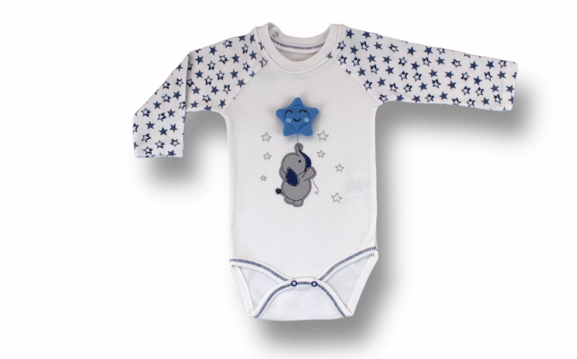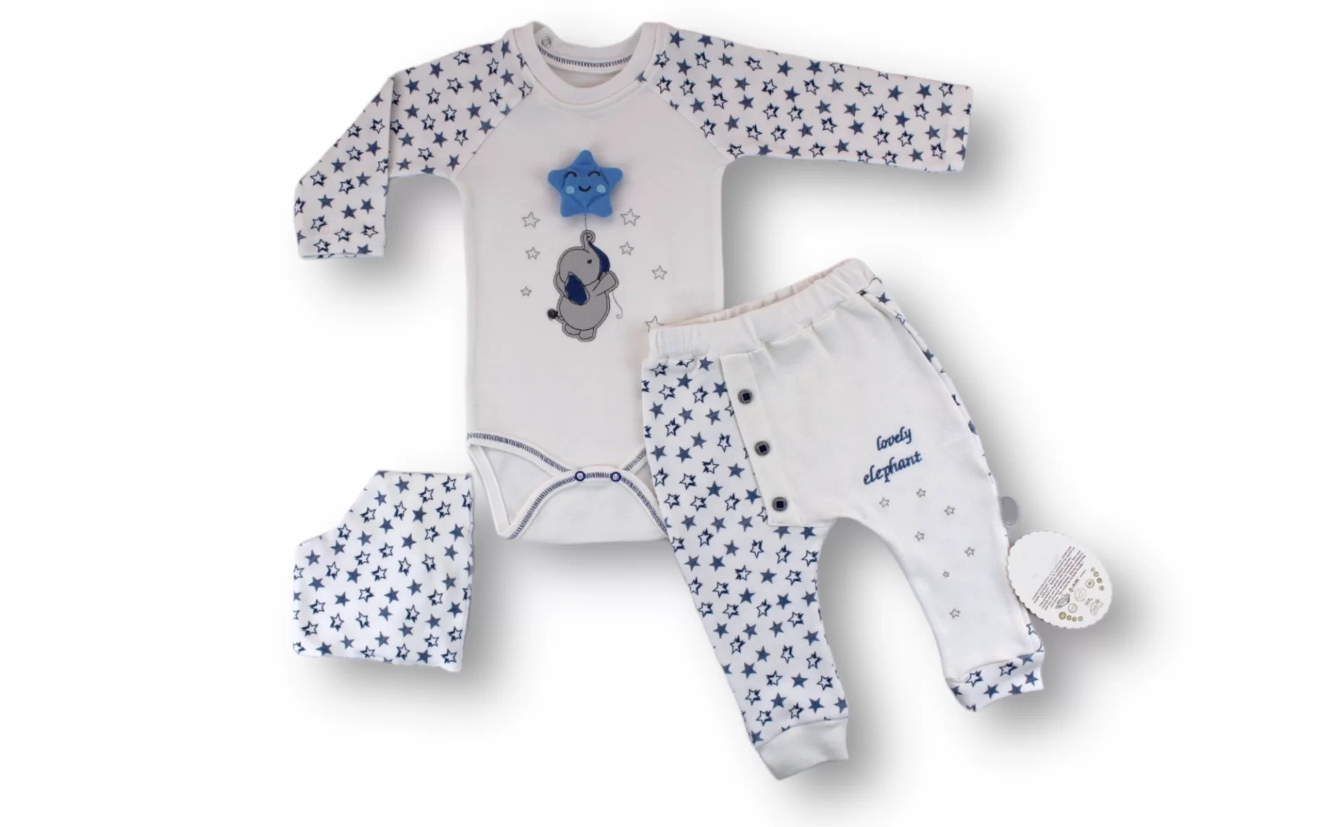 3-6 6-9 9-12 Ay Kutup Yıldızı Nakışlı Bandajlı Uzun Kollu Zıbınlı 3lü Erkek Bebek Takımı Ekru