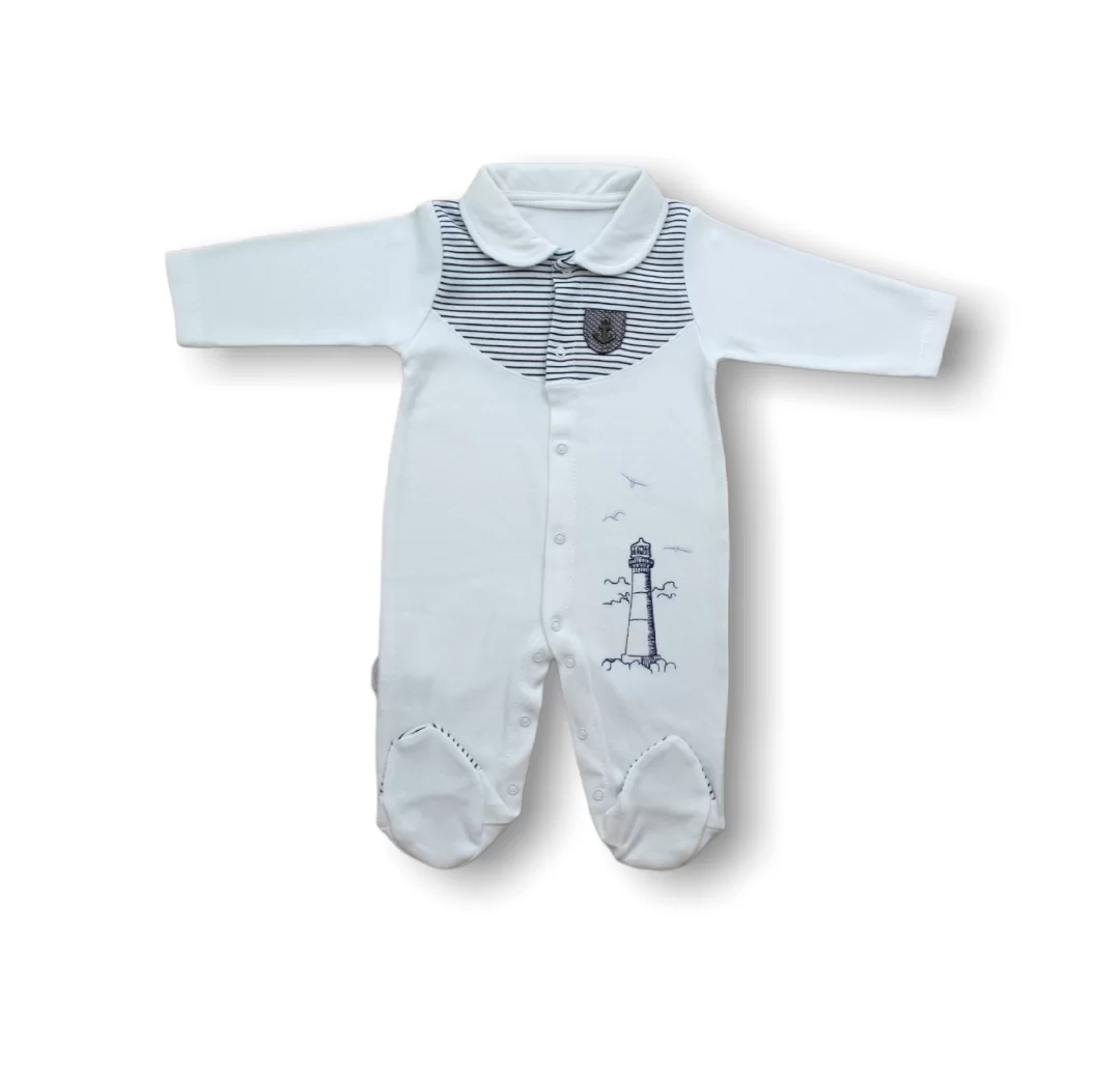 3-6 6-9 Ay Deniz Feneri Nakışlı Patikli Uzun Kollu Erkek Bebek Tulumu Ekru adet