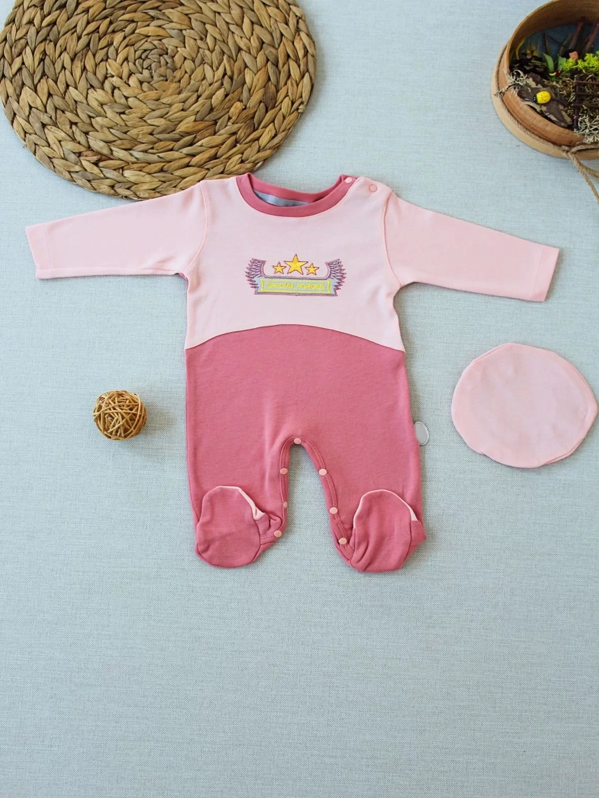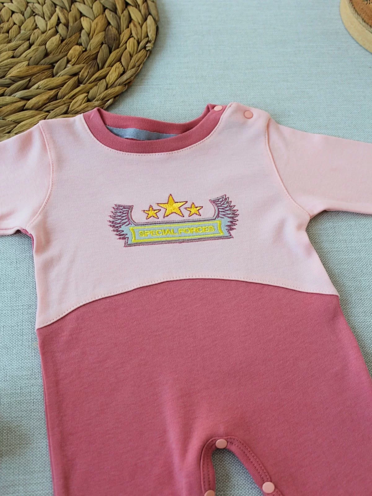 3-6 9-12 12-18 Ay Özel Kuvvetler Nakışlı Bere Şapkalı Kız Erkek Bebek Tulumu Gül Kurusu