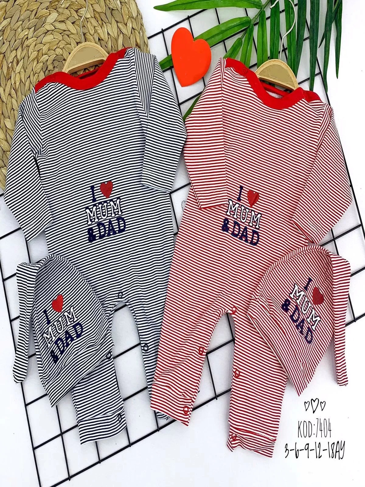 3-6-9-12-18 Ay Kuyruklu Şapkalı Melanjlı I Love Mum&dad Yazılı Uzun Kollu Kız Erkek Bebek Tulumu Kırmızı