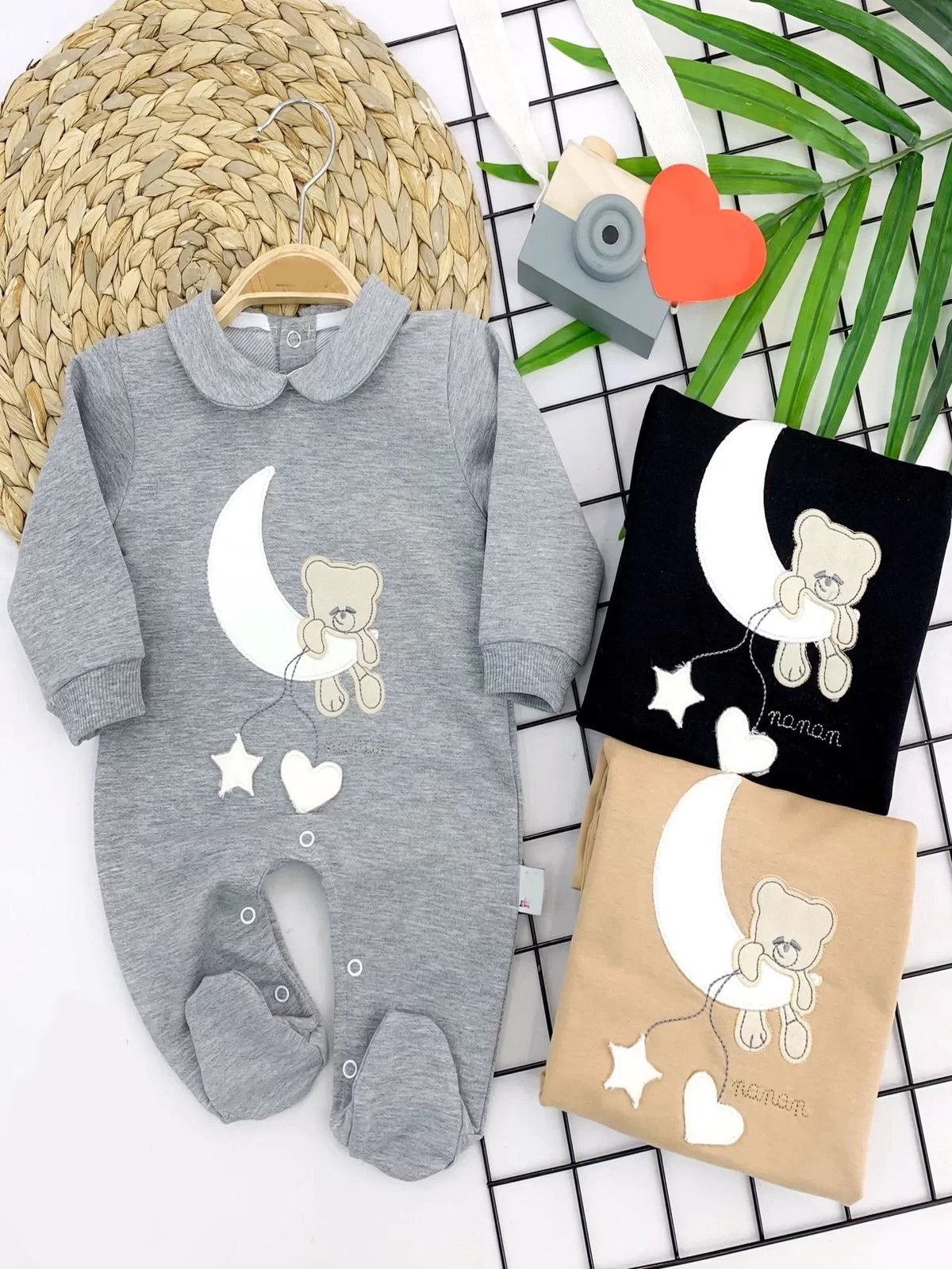 3-6-9-12 Ay Ayda Sallanan Ayıcık Nakışlı Kız Erkek Bebek Tulum Siyah adet