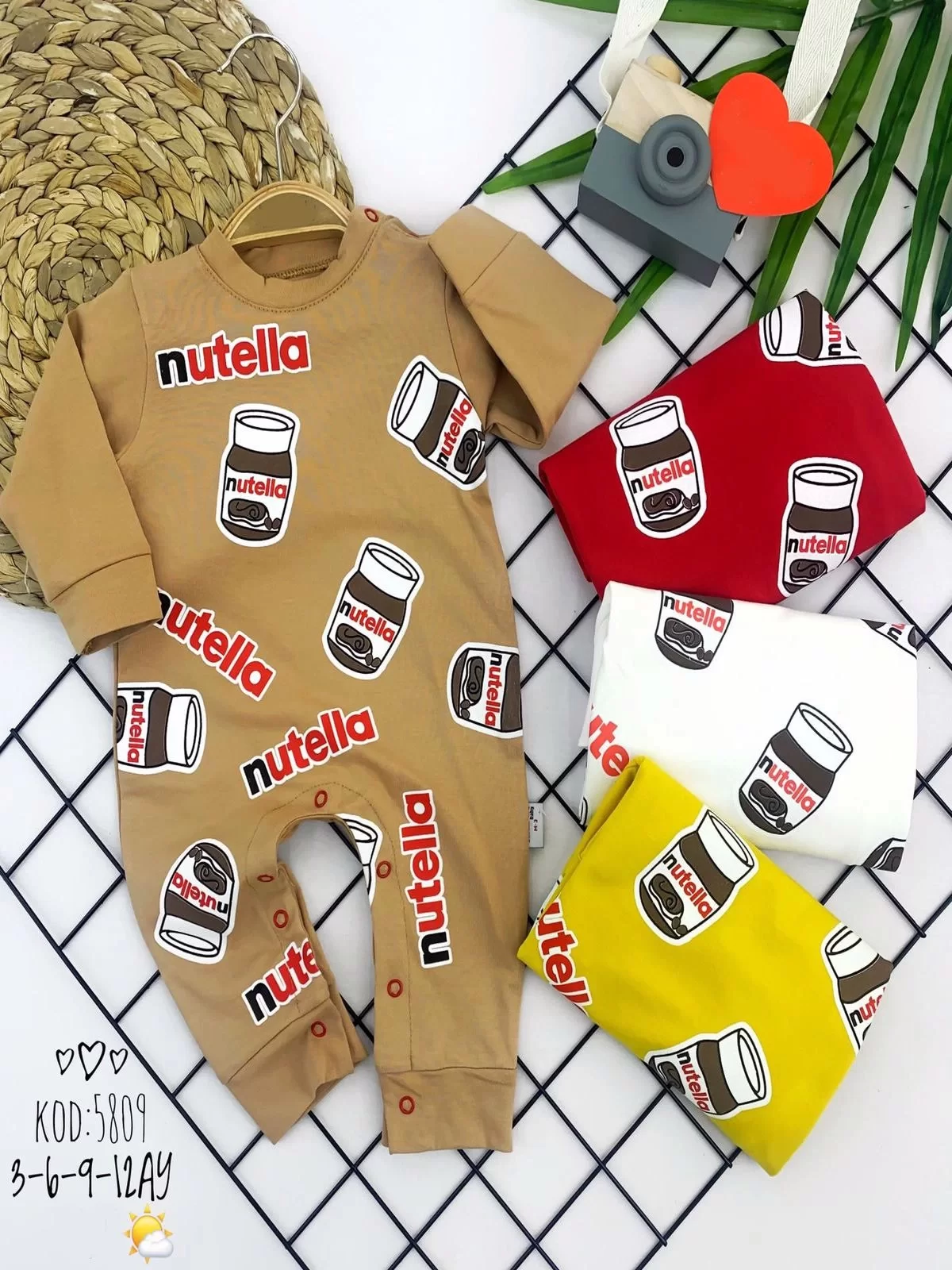 3-6-9-12 Ay Çikolatam Bebeğim Baskılı Uzun Kollu Kız Erkek Bebek Tulumu Bej adet