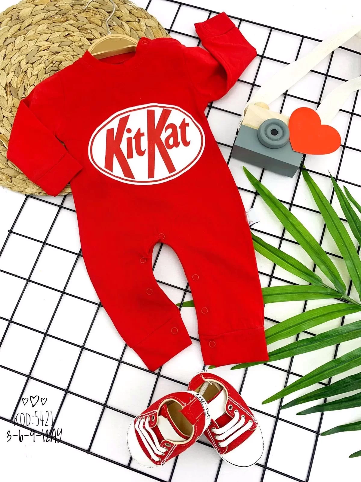 3-6-9-12 Ay Kitkat Çikolatam Baskılı Uzun Kollu Kız Erkek Bebek Tulumu Kırmızı adet