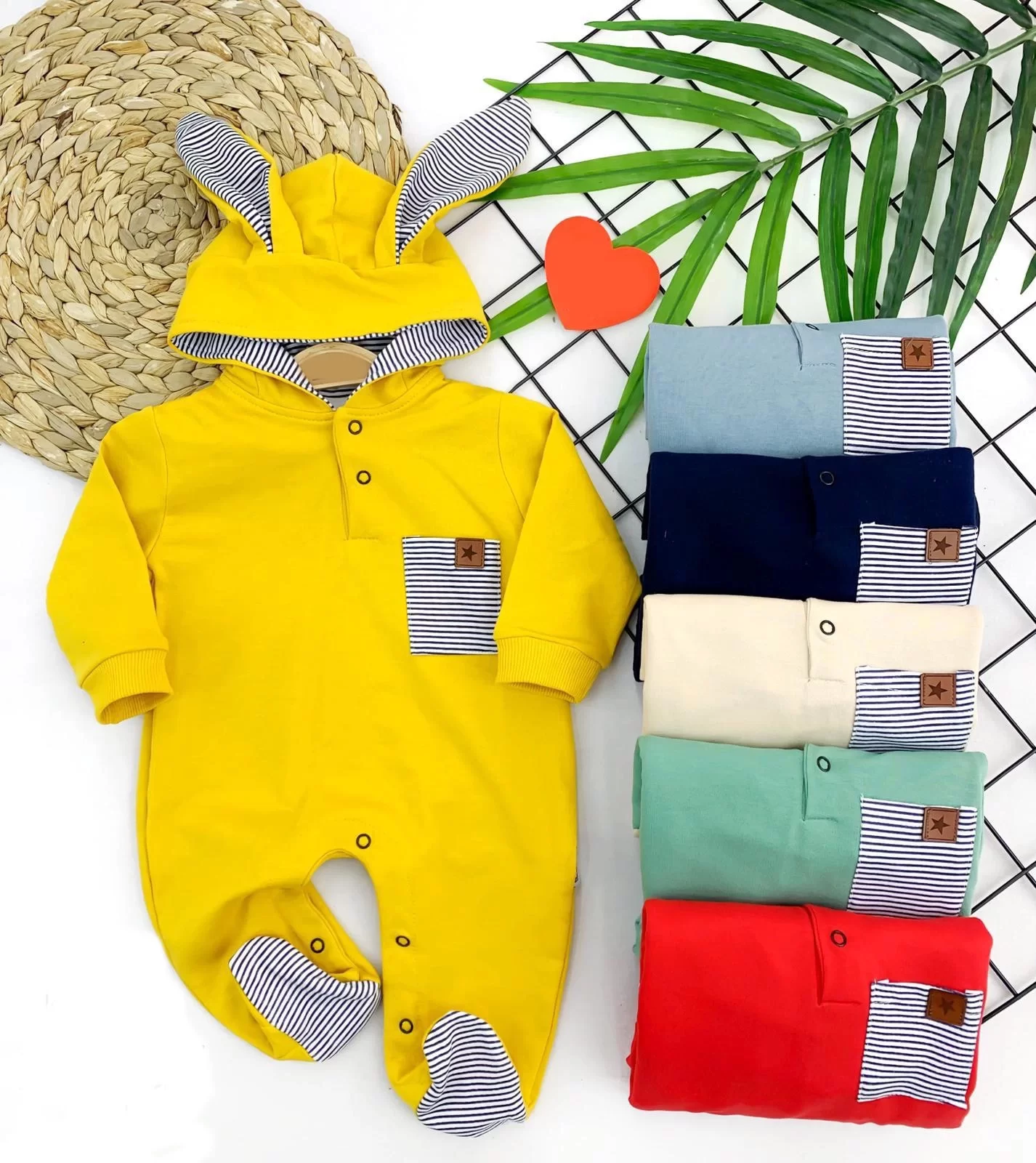 / 3-6-9-12 Ay Kulaklı Kapşonlu Çıt Çıt Kapama Kız Erkek Bebek Tulum Yeşil