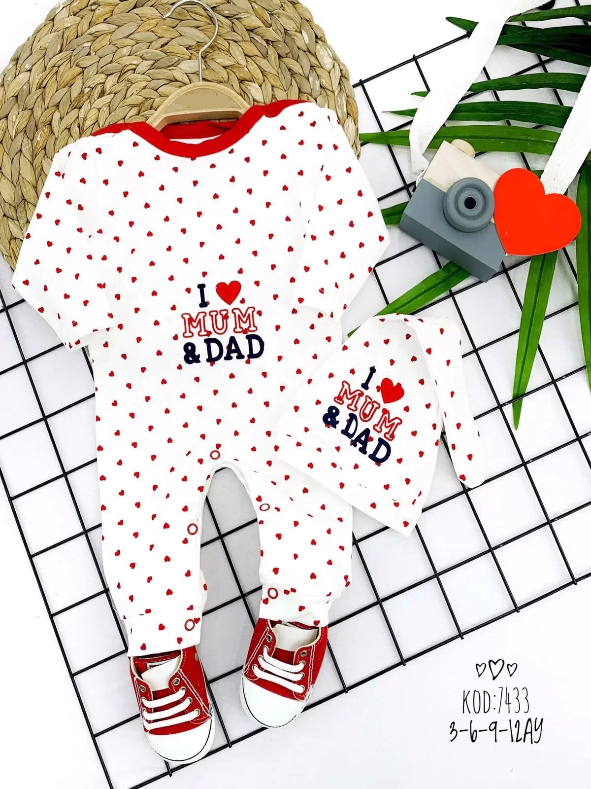 3-6-9-12 Ay Kuyruklu Şapkalı Piti Kalp I Love Mum&dad Baskılı Uzun Kollu Kız Erkek Bebek Tulumu Beyaz