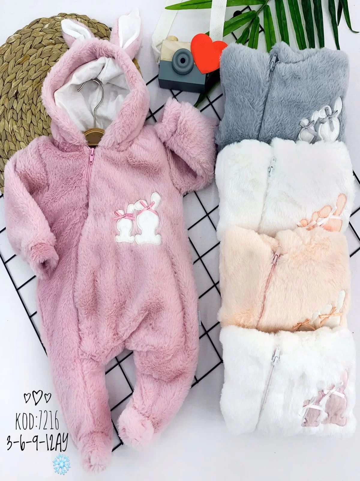 3-6-9-12 Ay Kuzu Kumaş Tüylü Kulaklı Kapşonlu Boydan Fermuarlı Kız Bebek Tulumu Gri