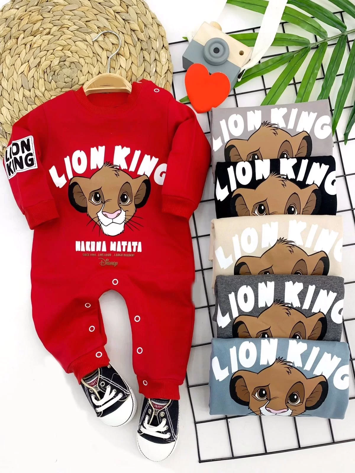 3-6-9-12 Ay Lion King Baskılı Çıt Çıt Kapamalı Kız Erkek Bebek Tulum Mavi