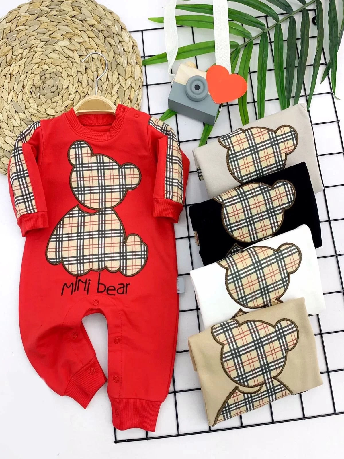 3-6-9-12 Ay Mini Bear Nakışlı Çıtçıt Kapamalı Kız Erkek Bebek Tulumu Kırmızı adet