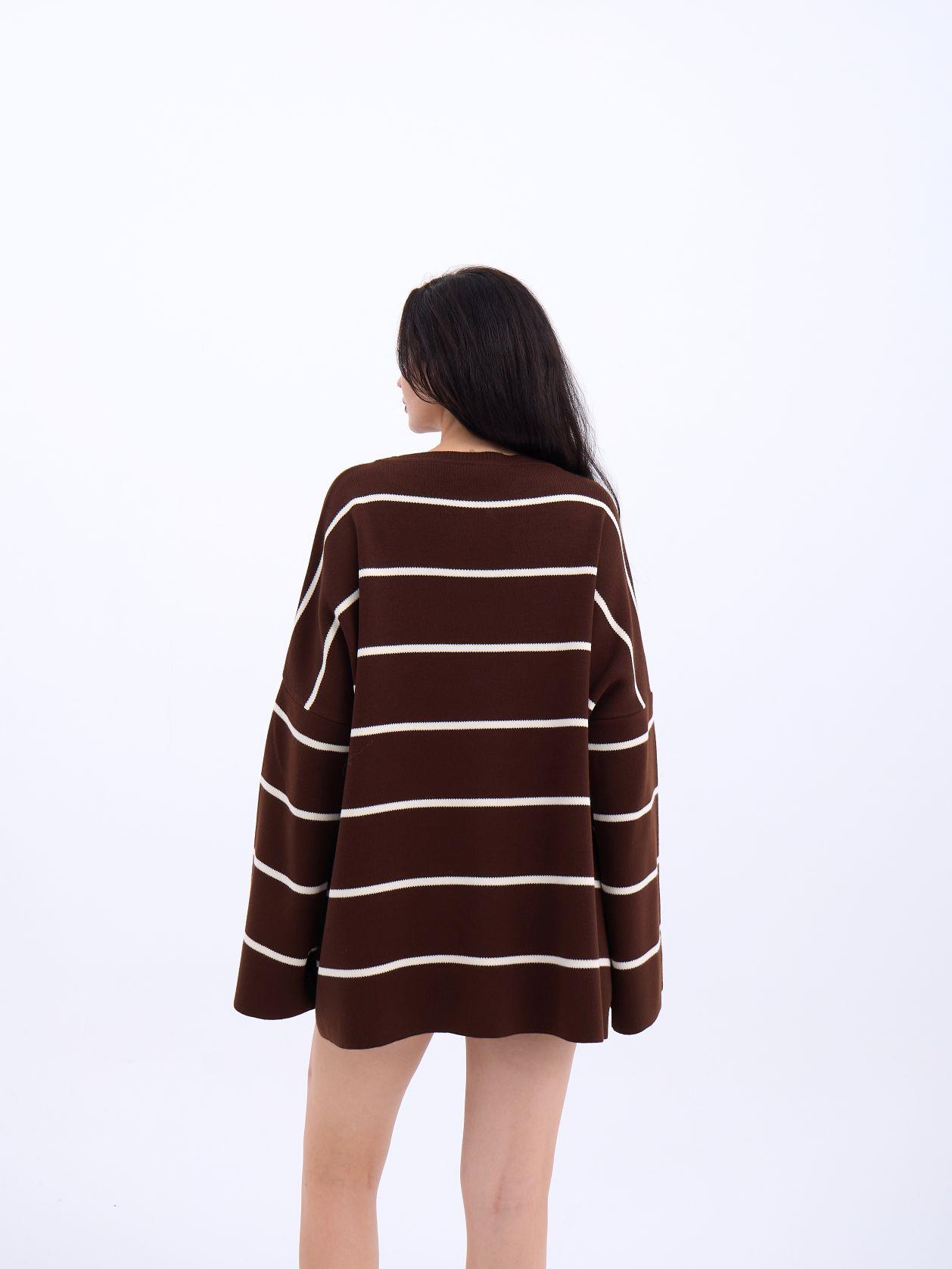 3368 ÇİZGİLİ SALAŞ TUNİK-KAHVE-KREM