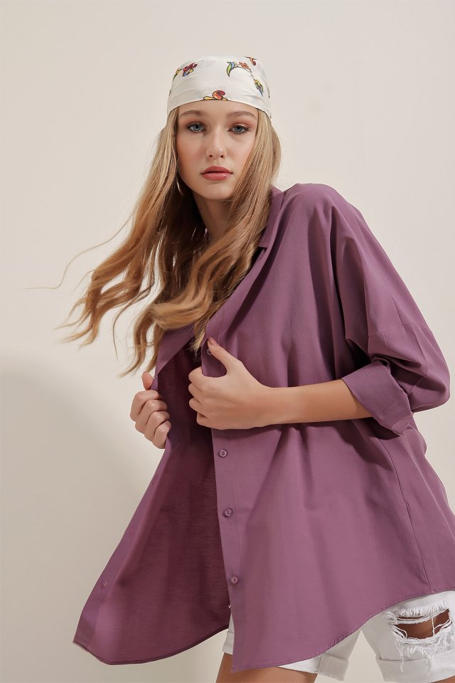 3900 Oversize Uzun Basic Gömlek – Gül Kurusu