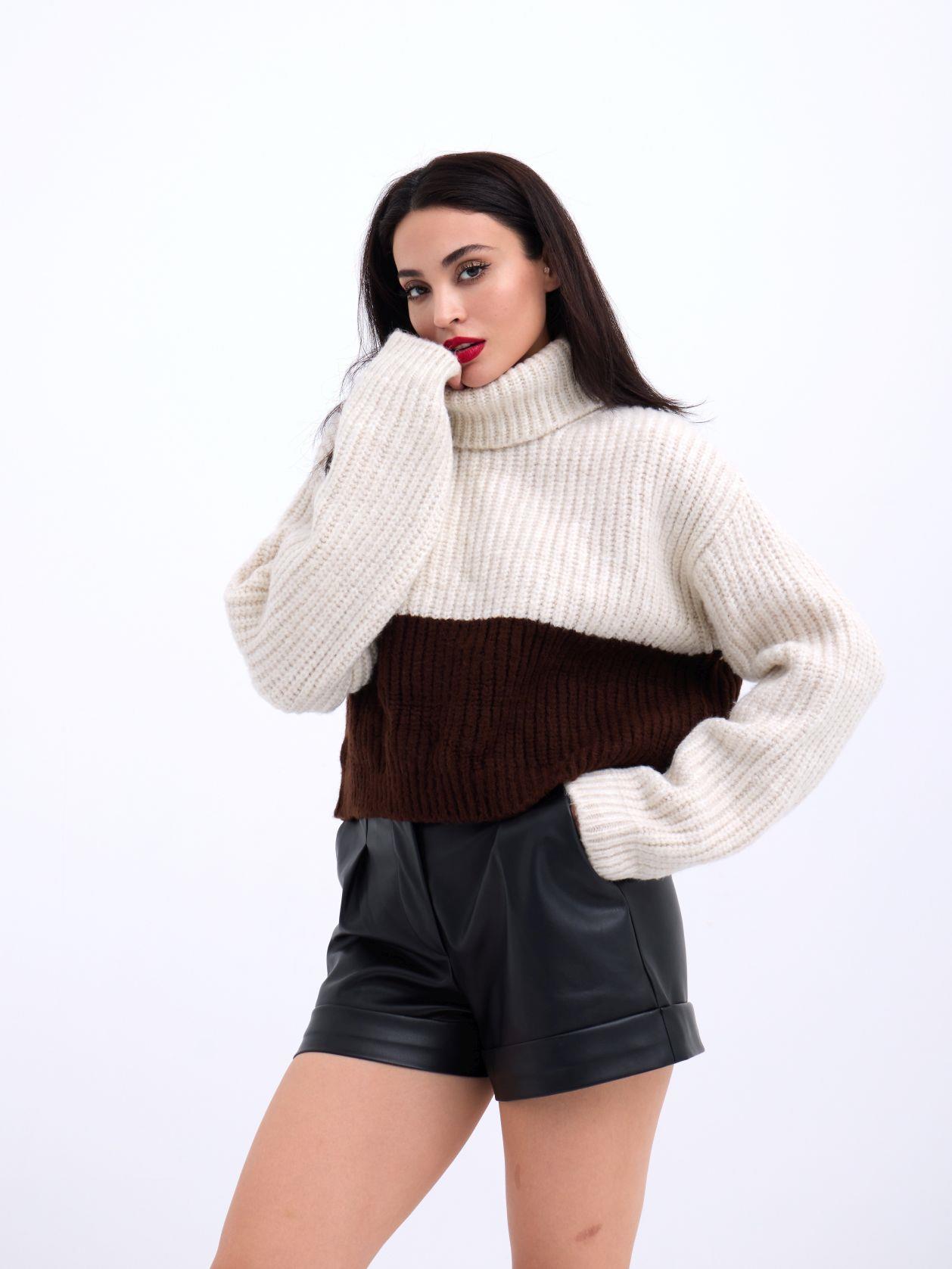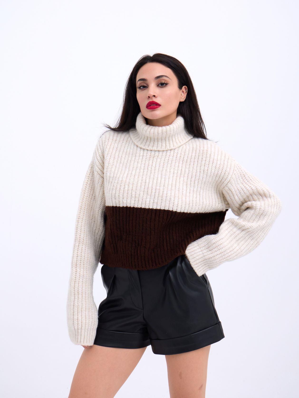 3904 TRİKO BALIKÇI ÇİZGİLİ KAZAK-KREM-KAHVE