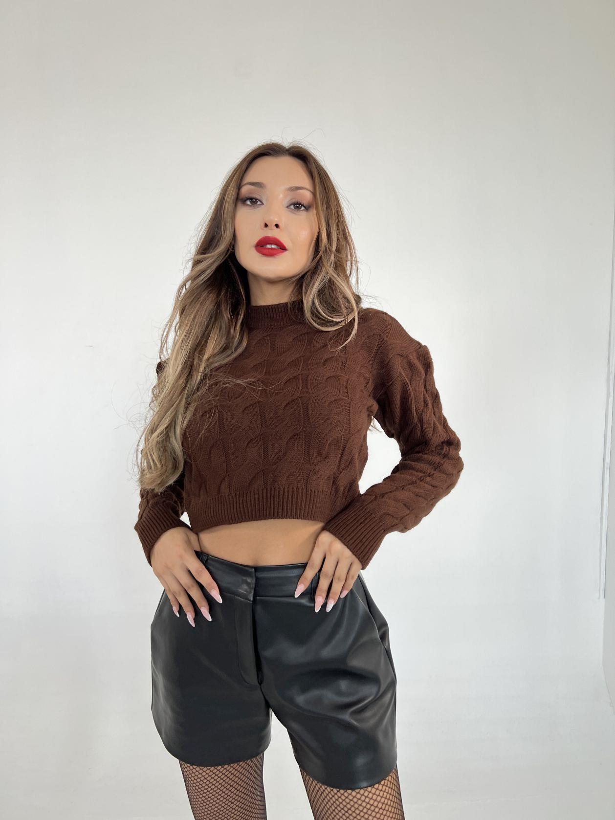 3924 TRİKO SAÇ ÖRGÜ KAZAK-KAHVE