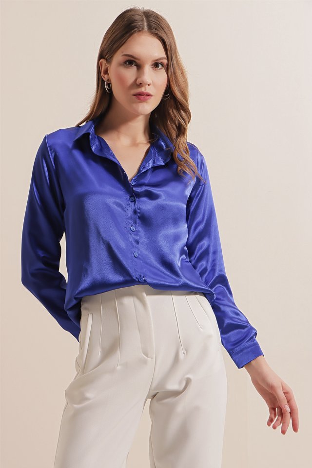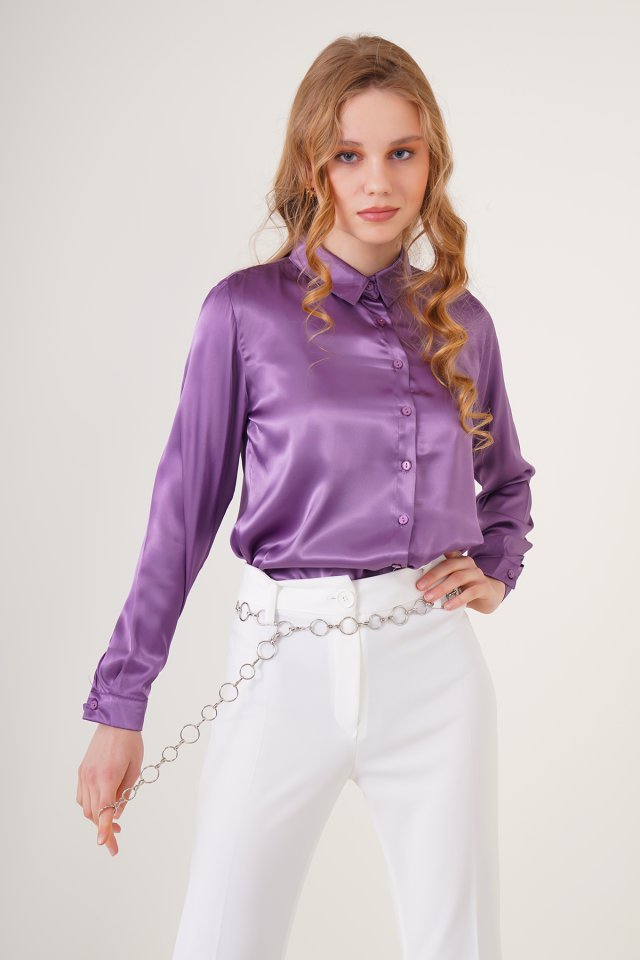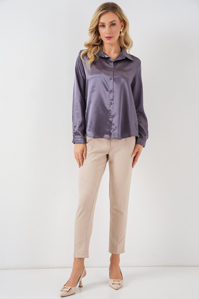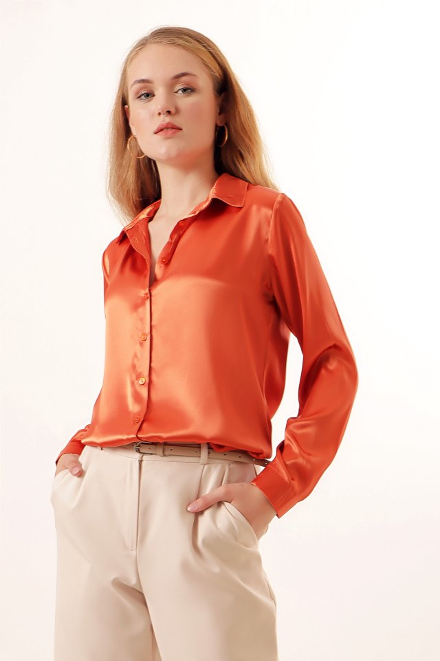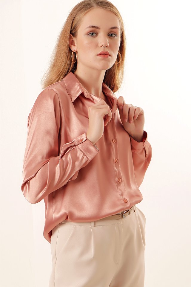 3964 Hafif Dökümlü Saten Gömlek – Camel