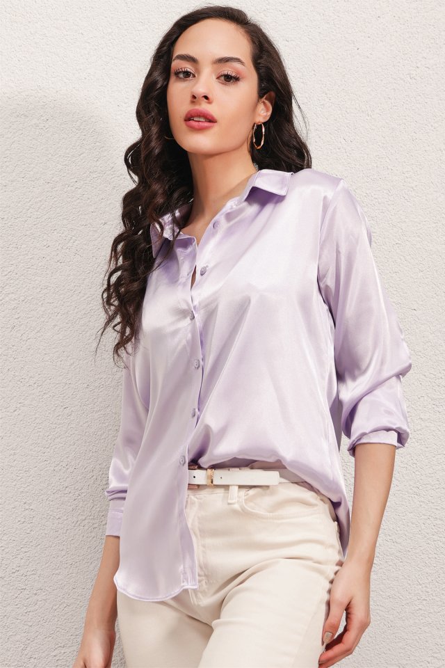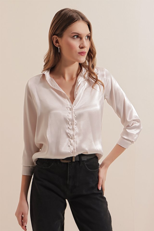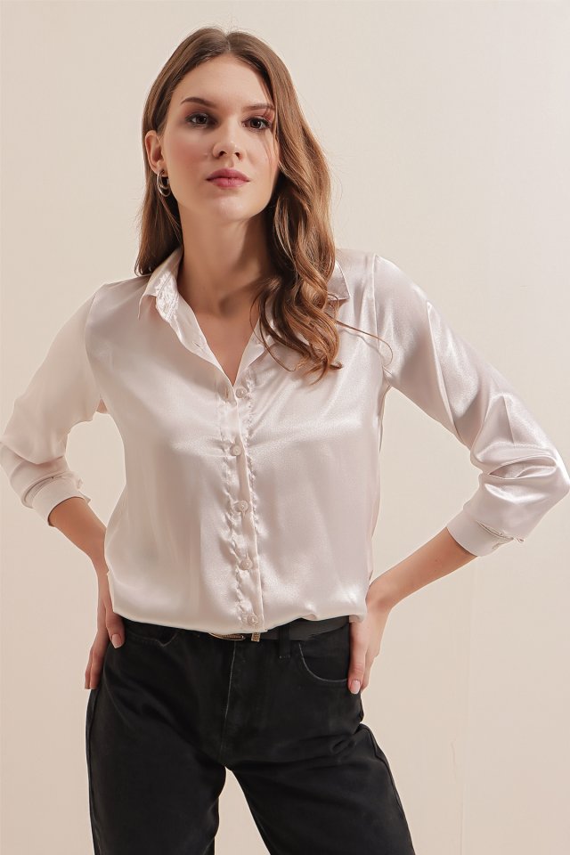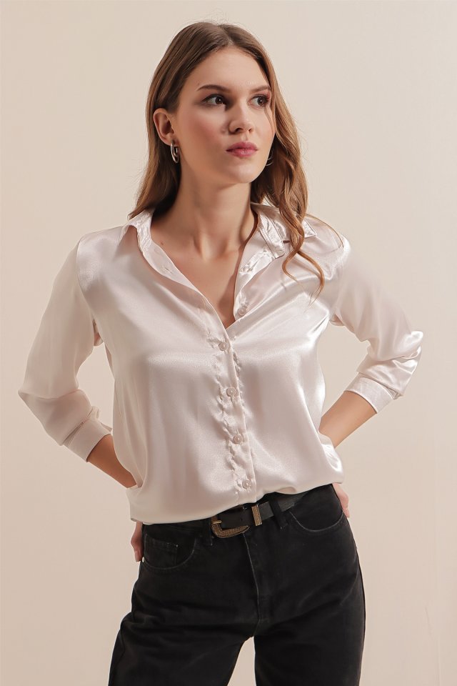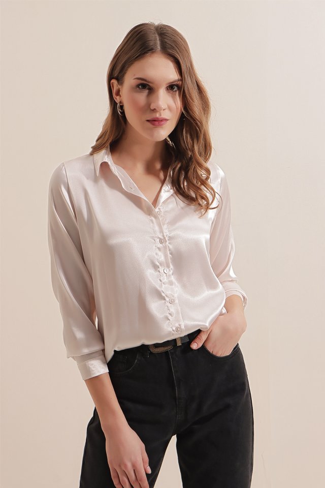 3964 Hafif Dökümlü Saten Gömlek – Yeşil