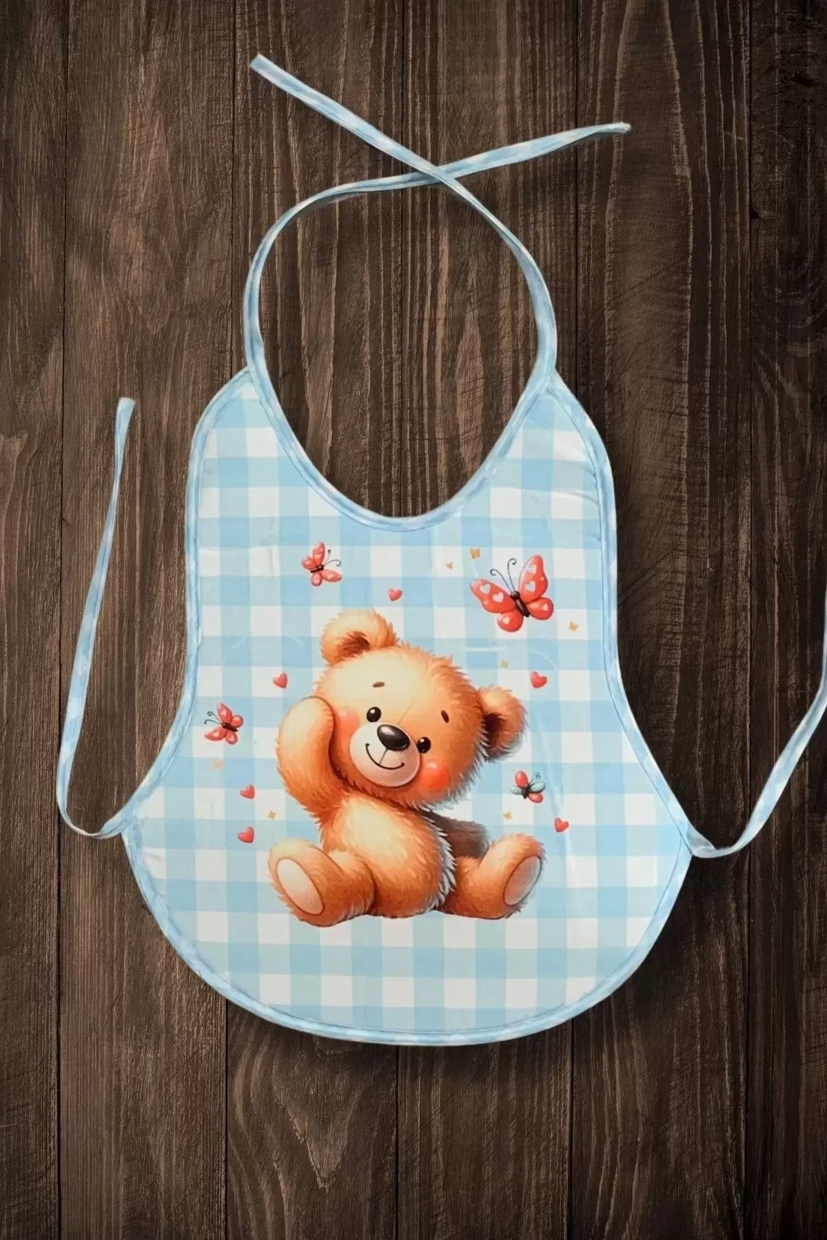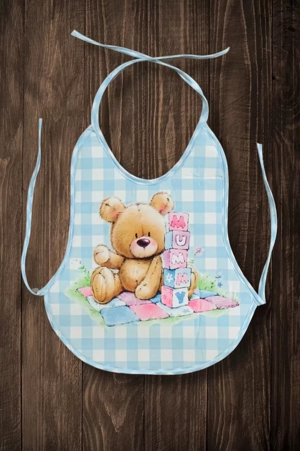 3’lü Set Mavi Ekose Baskılı Ekonomik Sıvı Geçirmez Armut Mama Önlüğü (0-18 Ay)