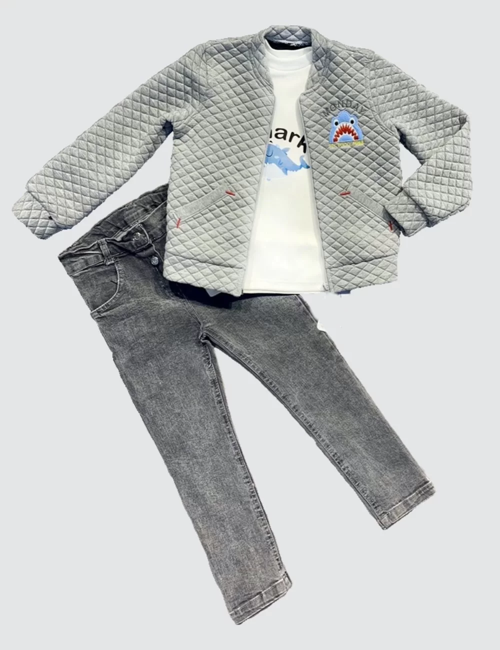 “4-5-6 Yaş Kot Pantolonlu Pilot Mont Uzun Kollu Penye Sweat 3lü Erkek Çocuk Takımı Gri” için yorum yapan ilk kişi siz olun