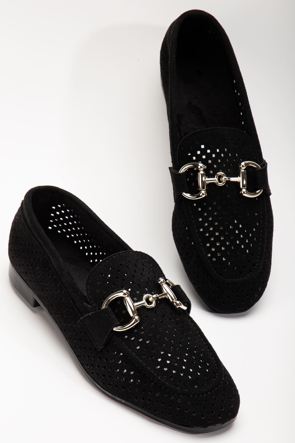 401 Siyah Süet Delikli Günlük Kadın Babet