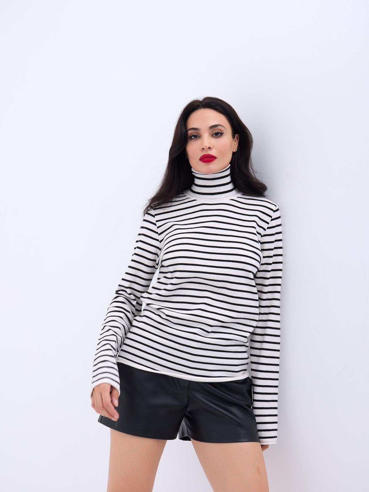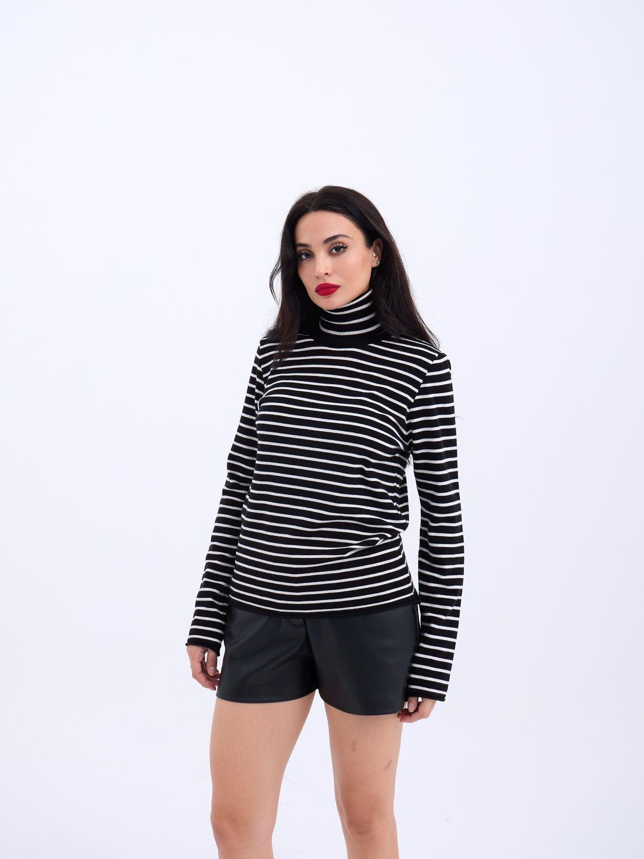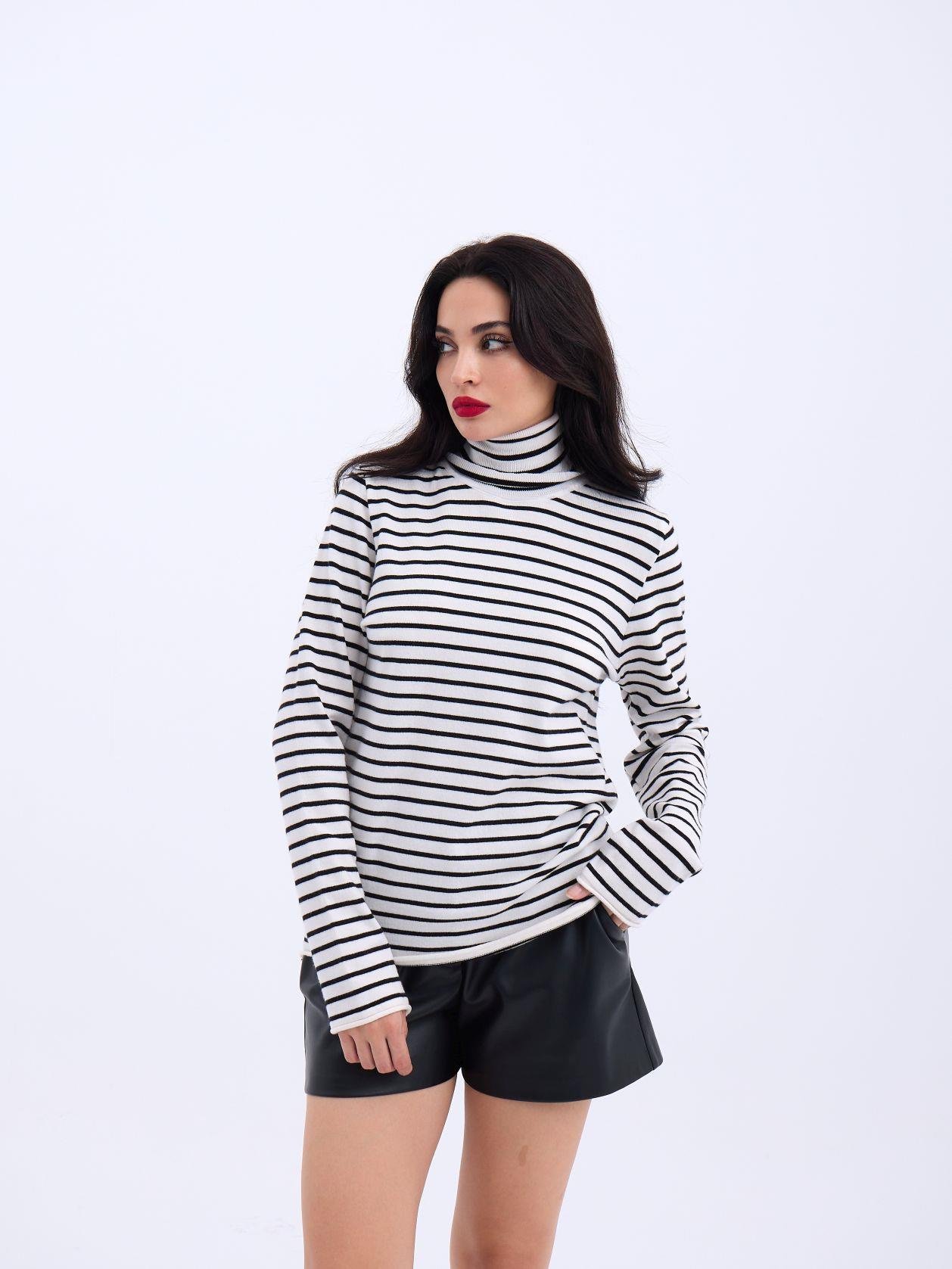 4213 TRİKO ÇİZGİLİ BALIKÇI SALAŞ-SİYAH-EKRU