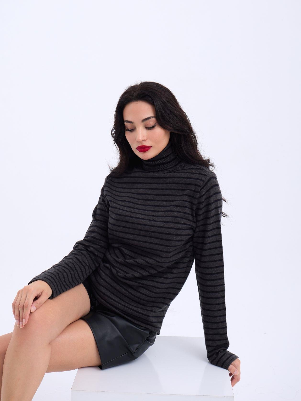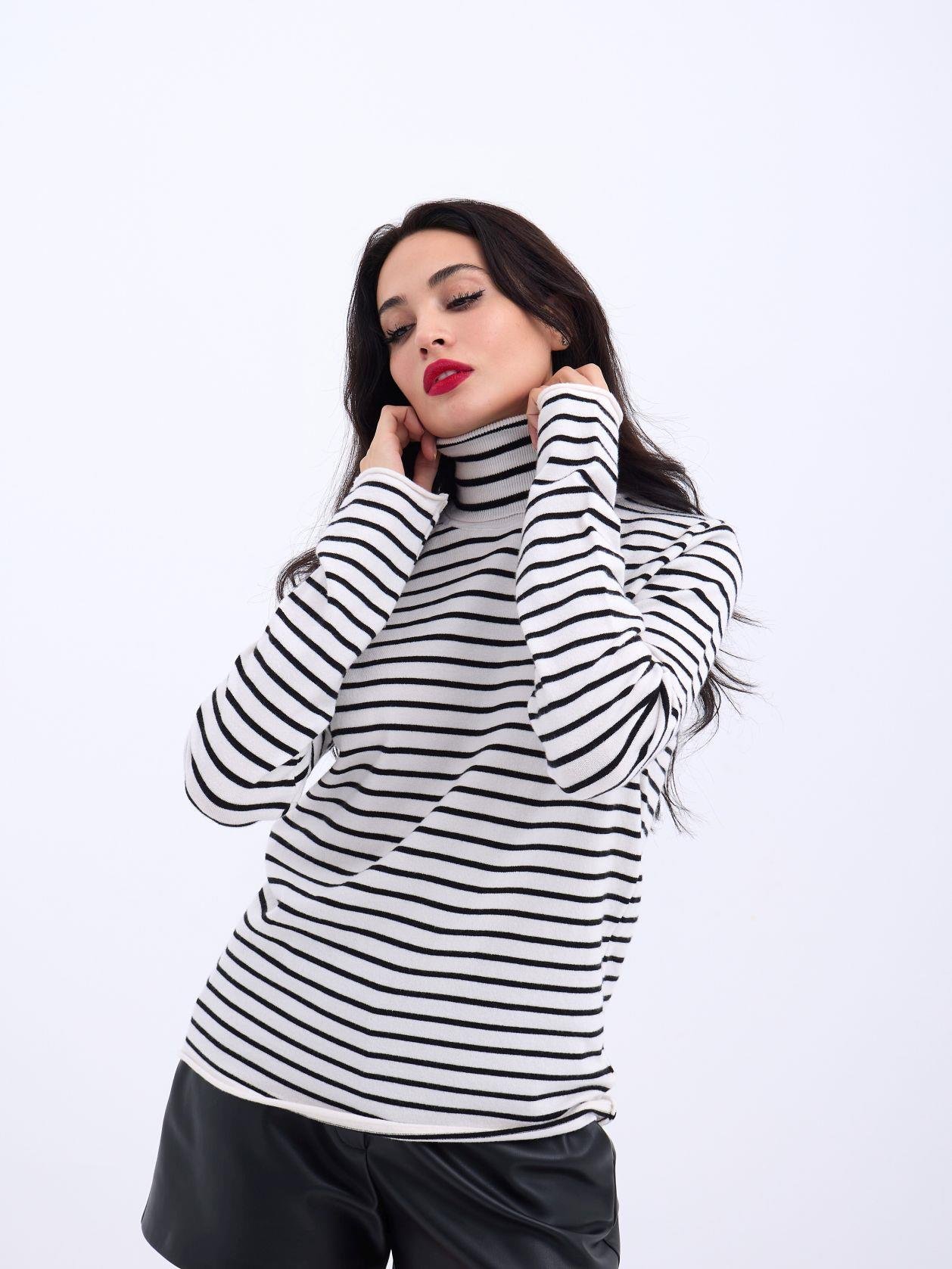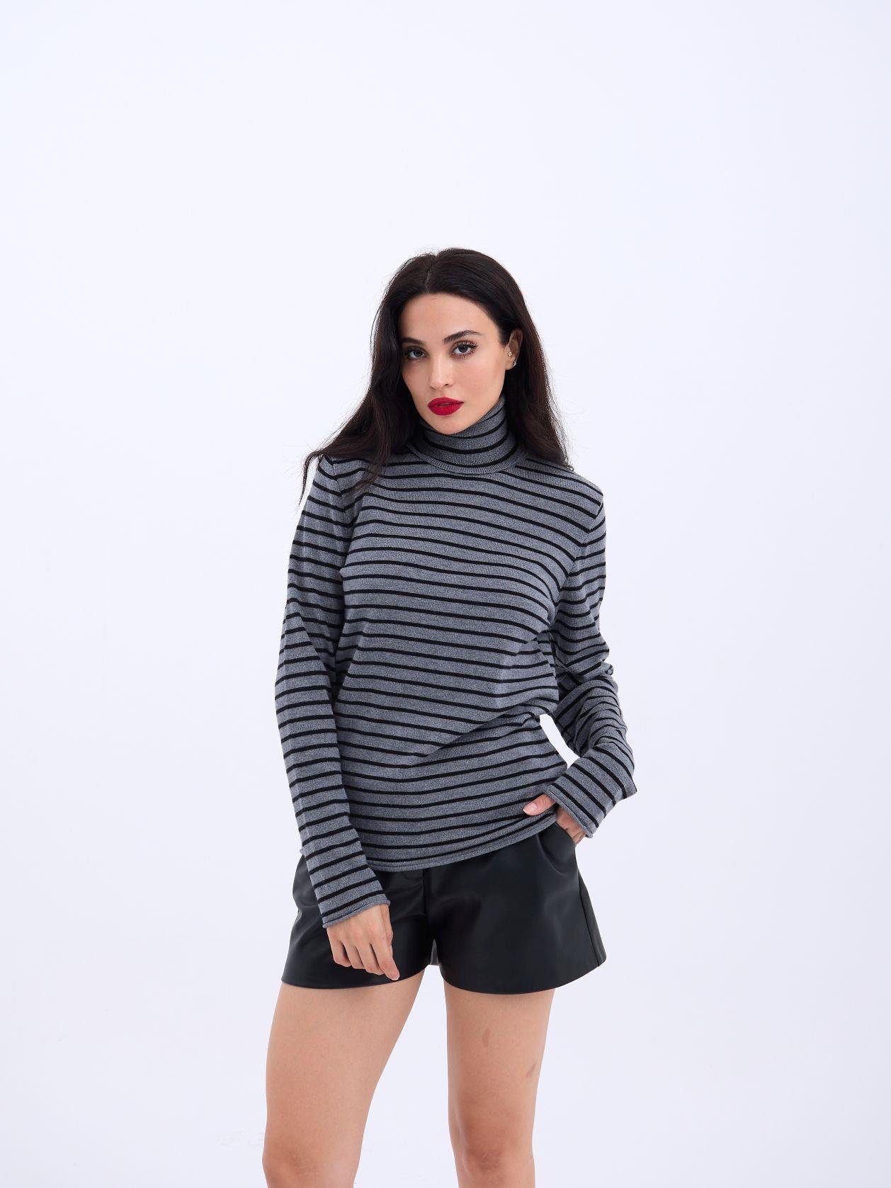 4213 TRİKO ÇİZGİLİ BALIKÇI SALAŞ-SİYAH-EKRU