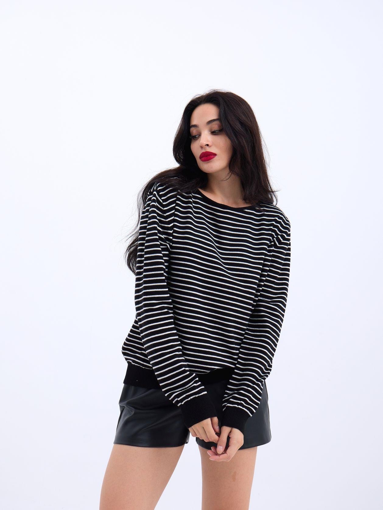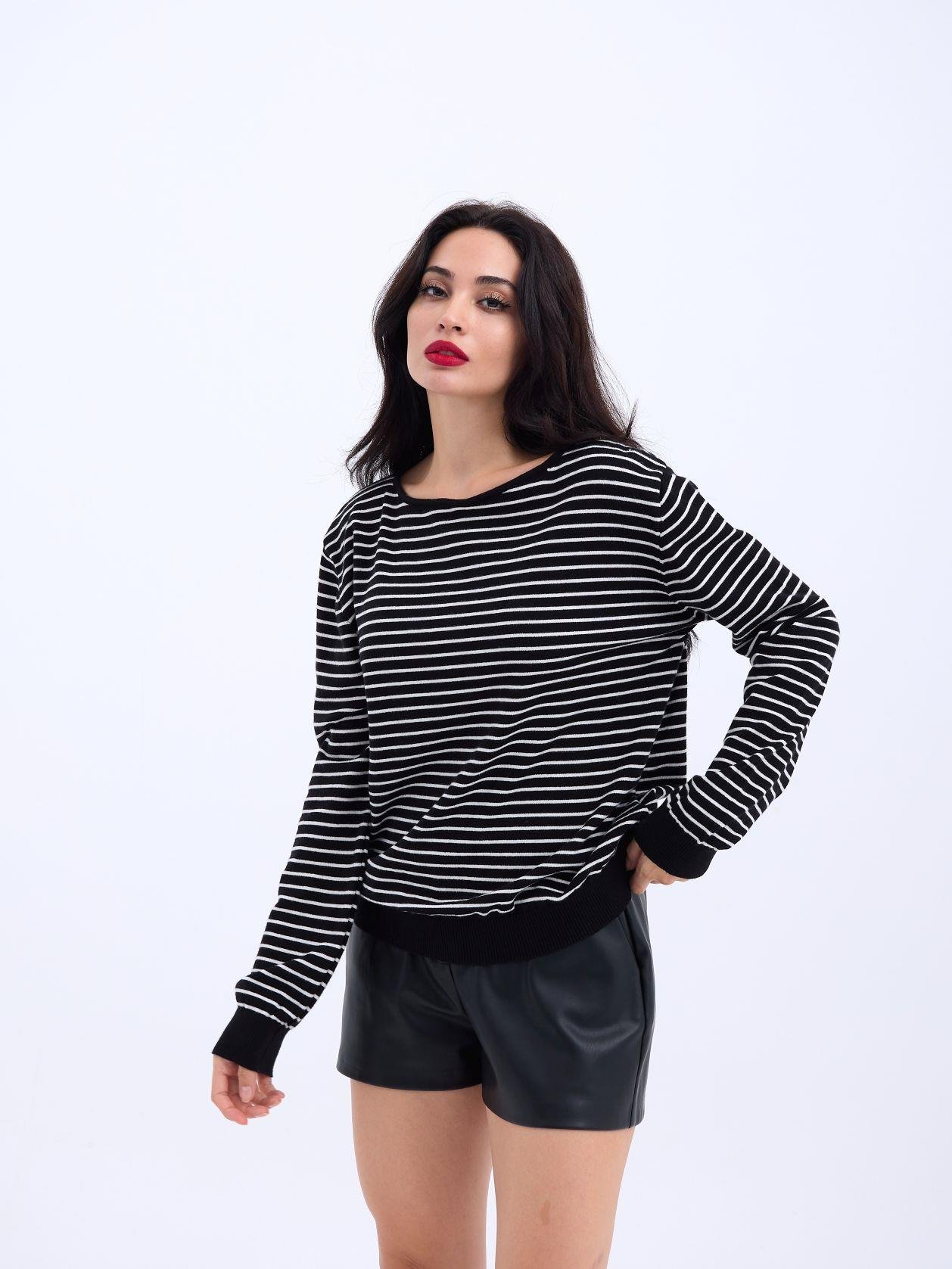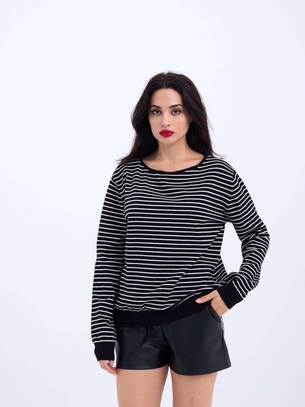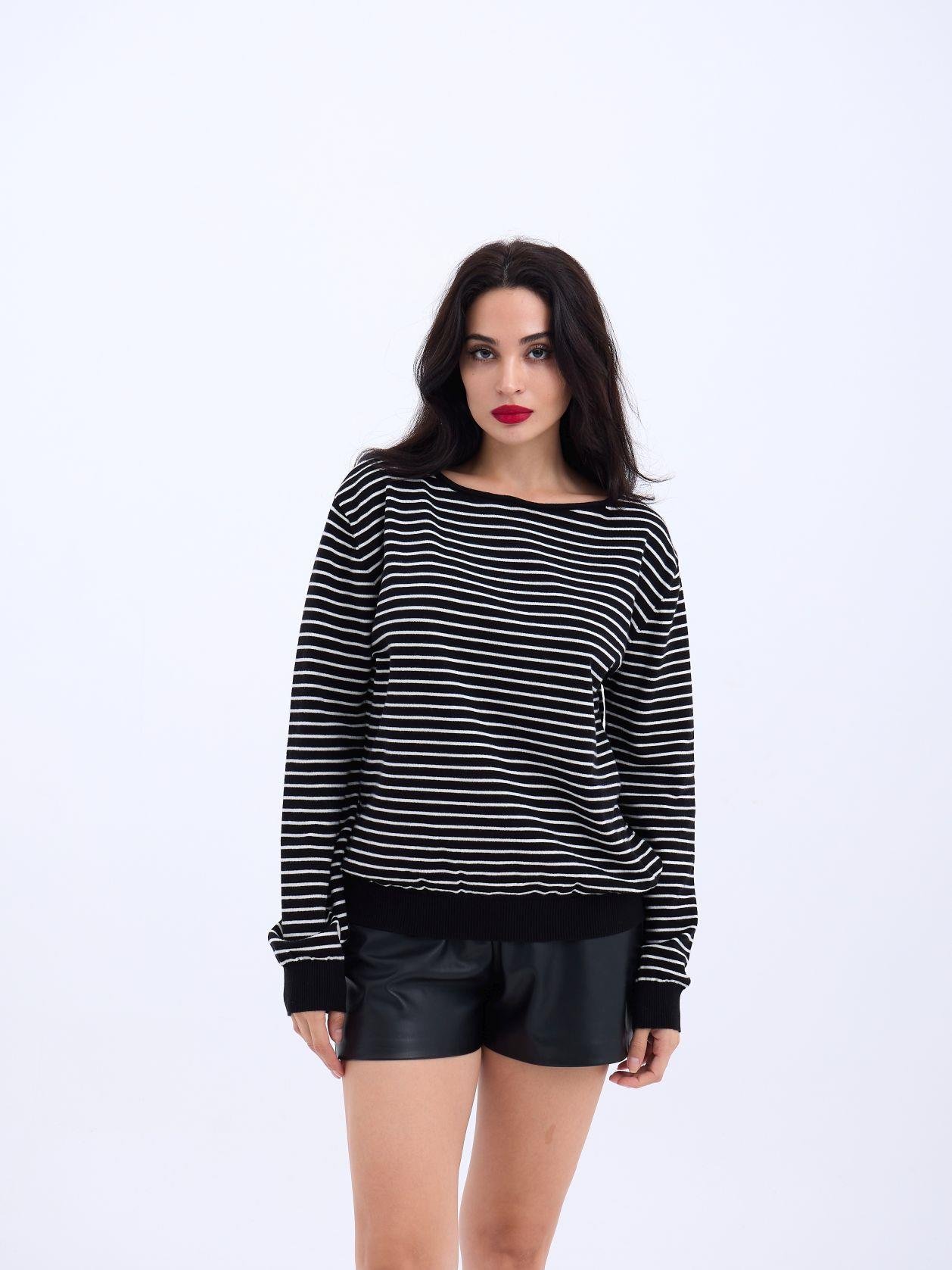 4215 TRİKO ÇİZGİLİ SALAŞ KAZAK-SİYAH-EKRU