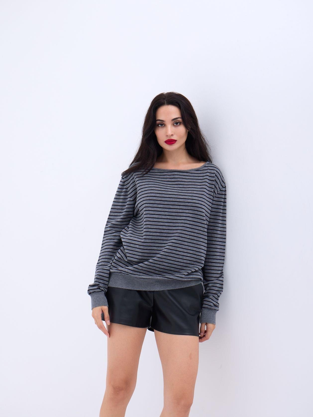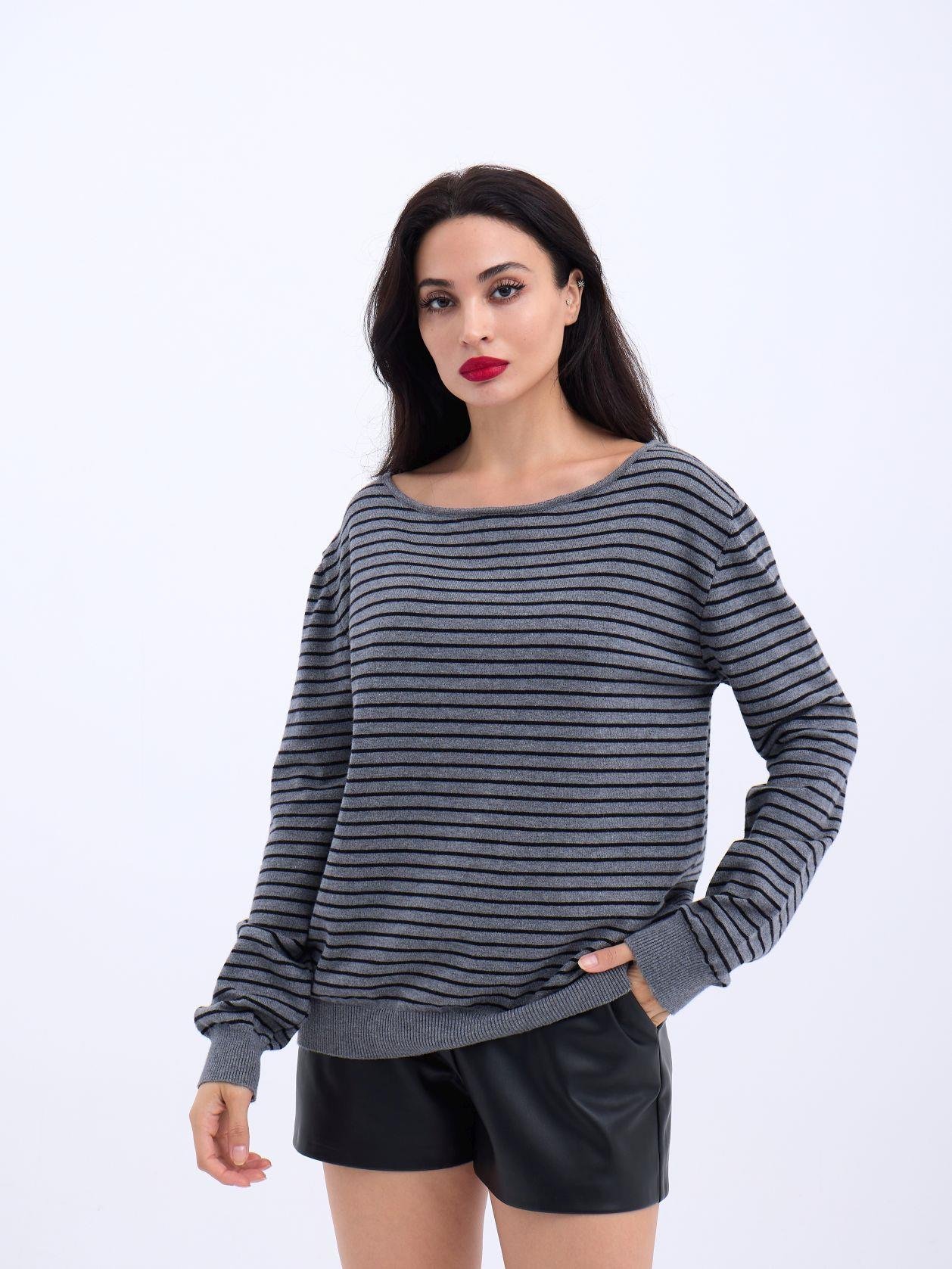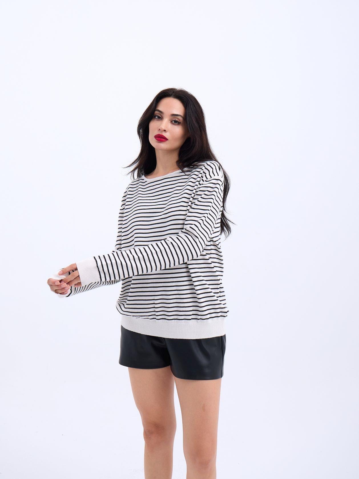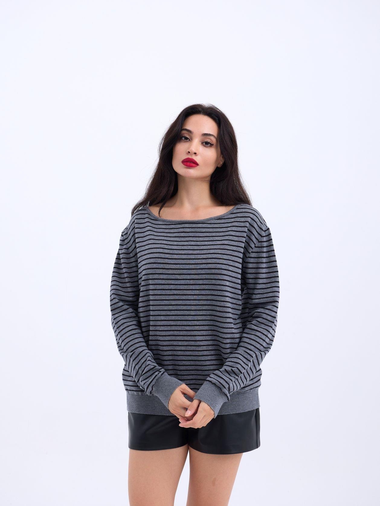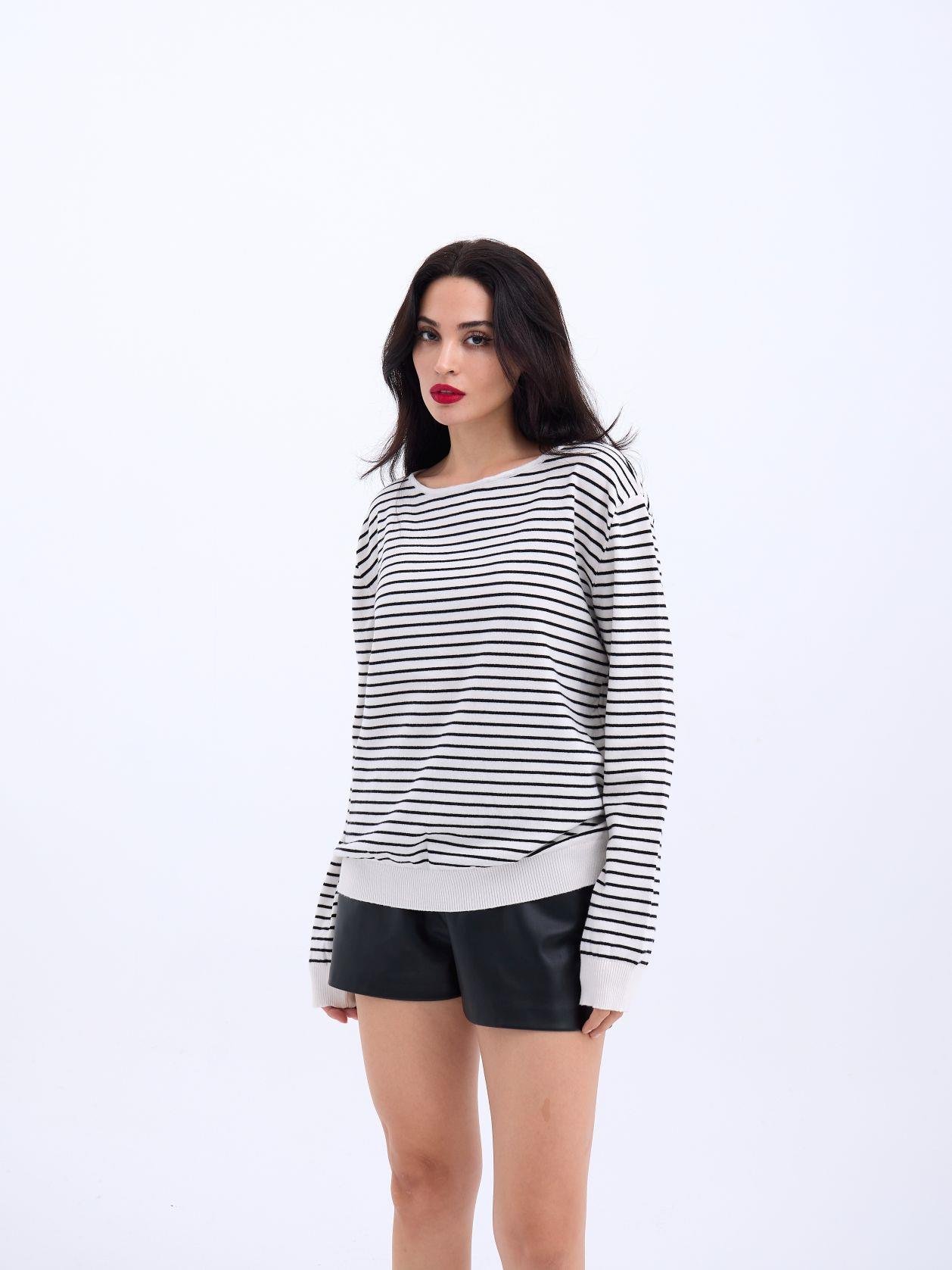 4215 TRİKO ÇİZGİLİ SALAŞ KAZAK-SİYAH-EKRU