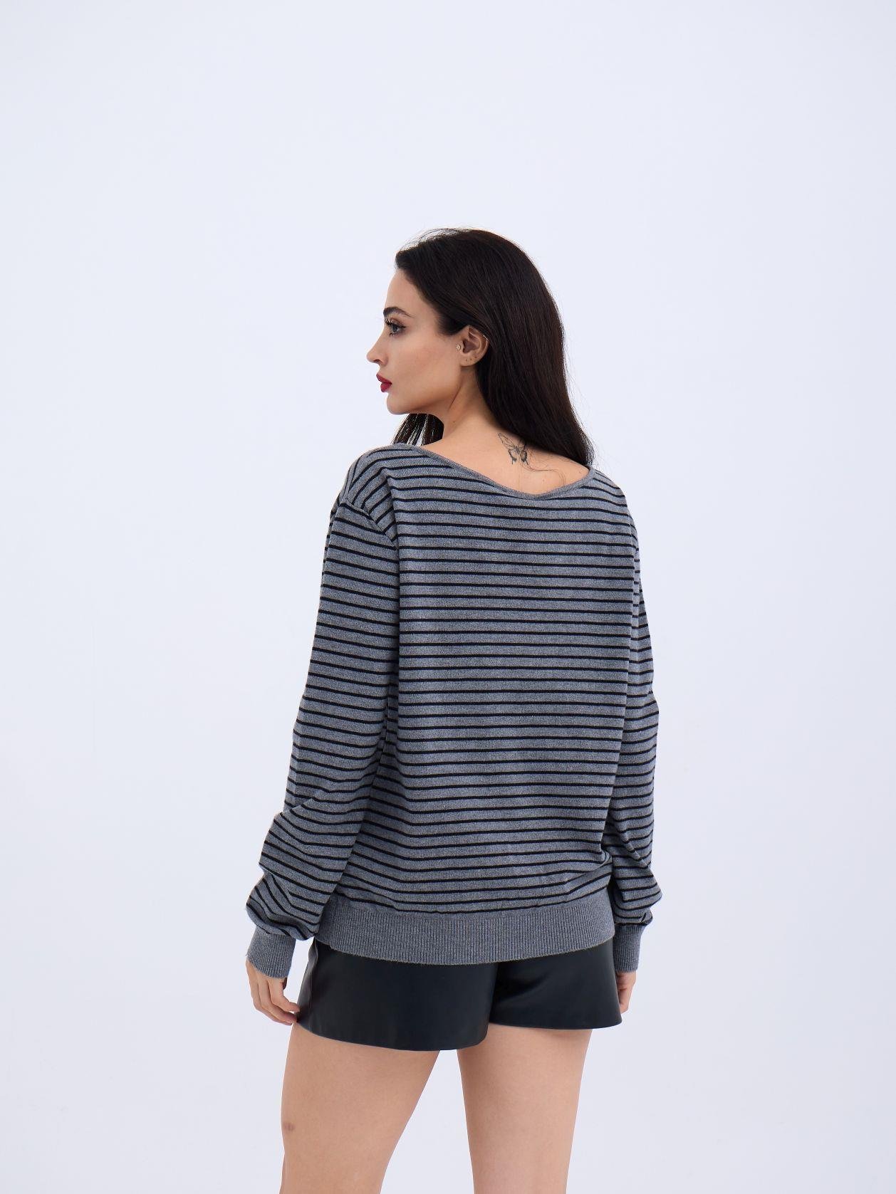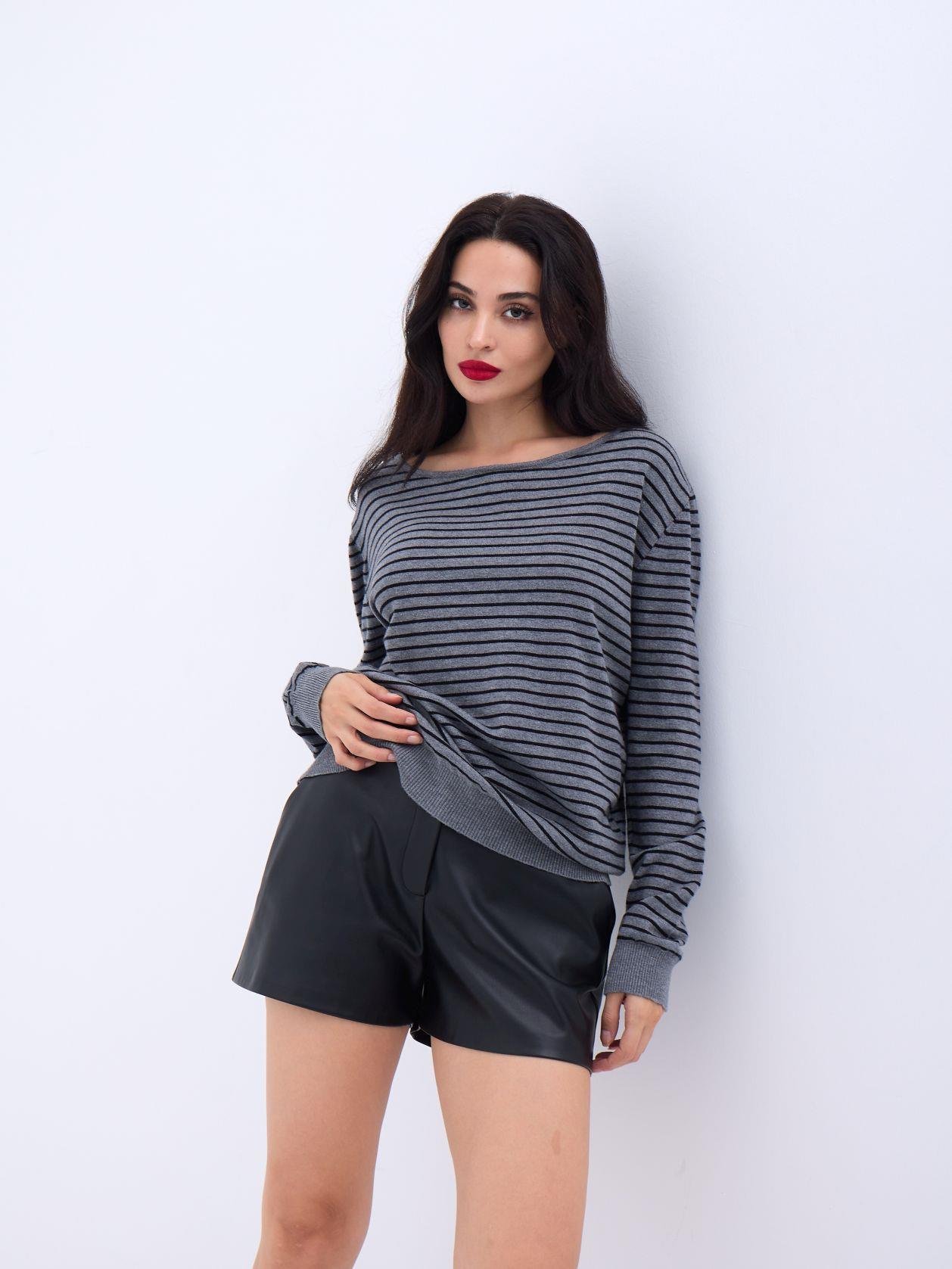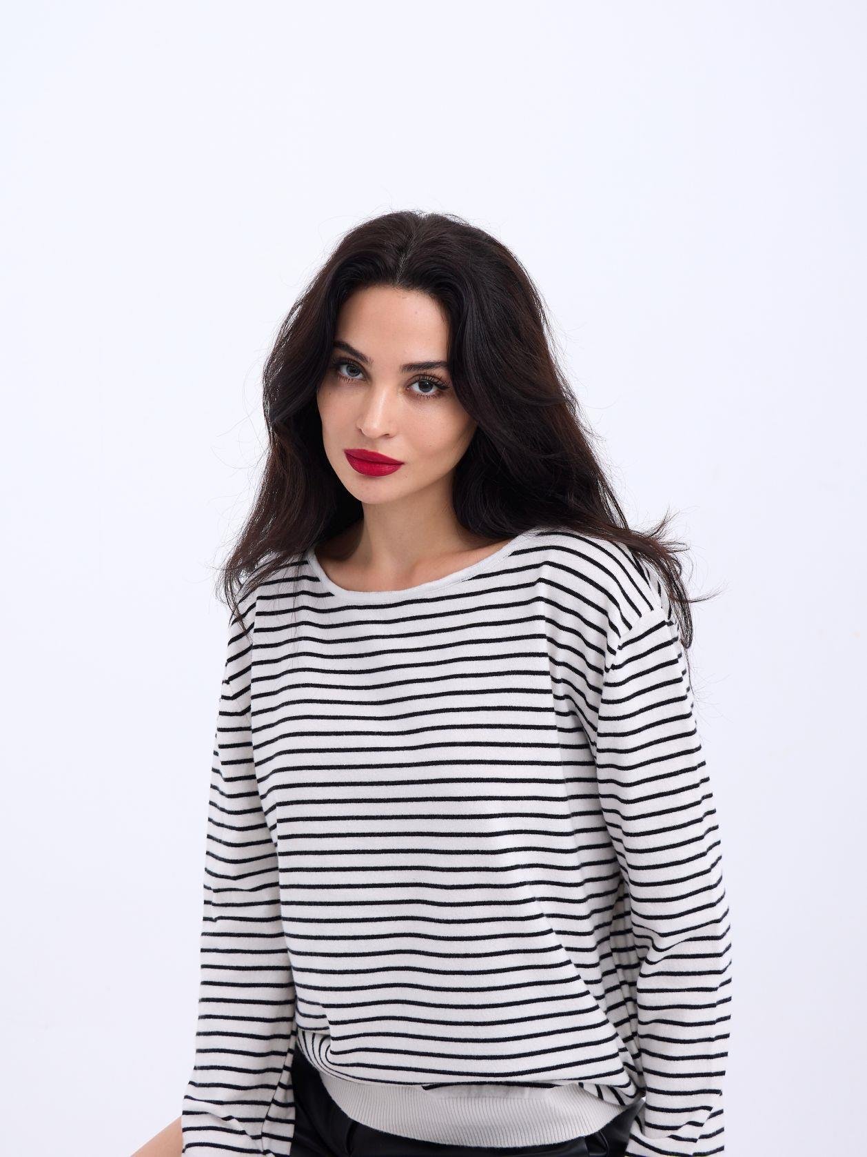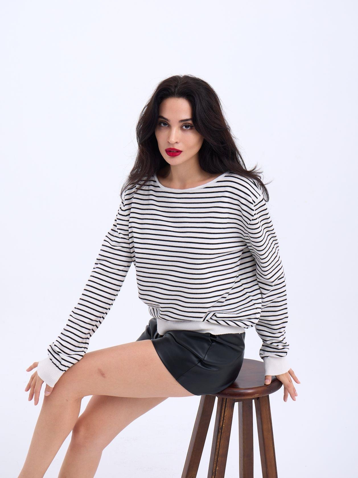 4215 TRİKO ÇİZGİLİ SALAŞ KAZAK-SİYAH-EKRU