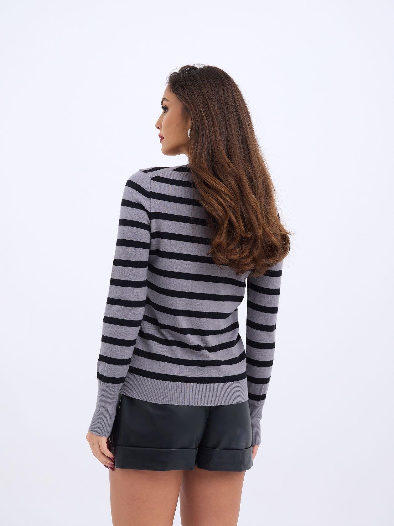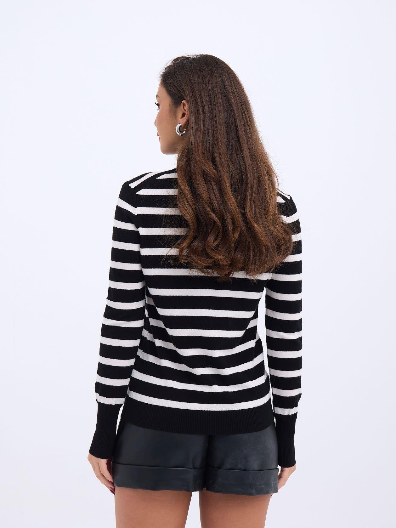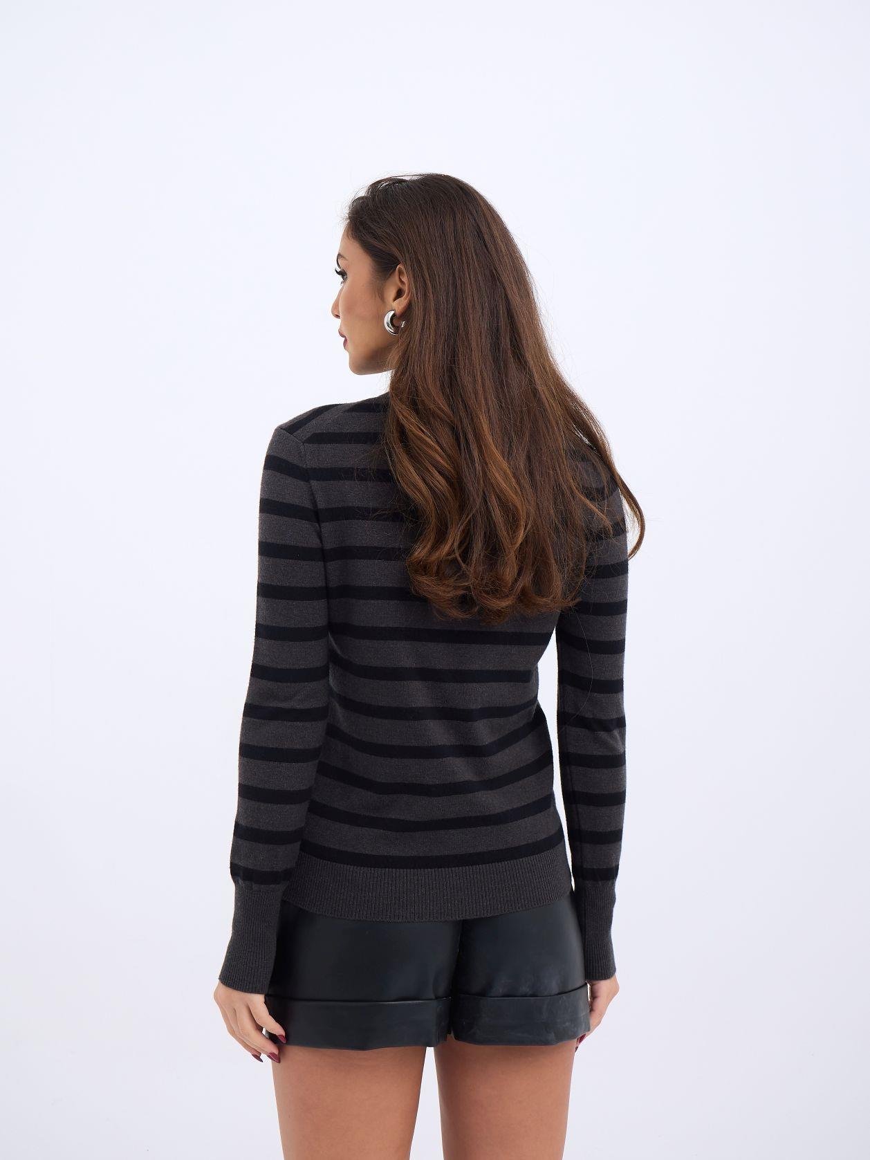 42271 TRİKO ÇİZGİLİ SALAŞ KAZAK-SİYAH-EKRU