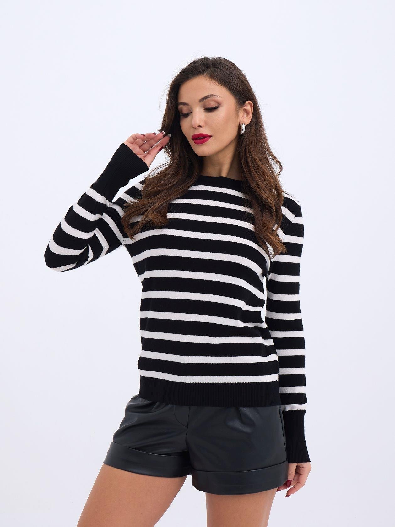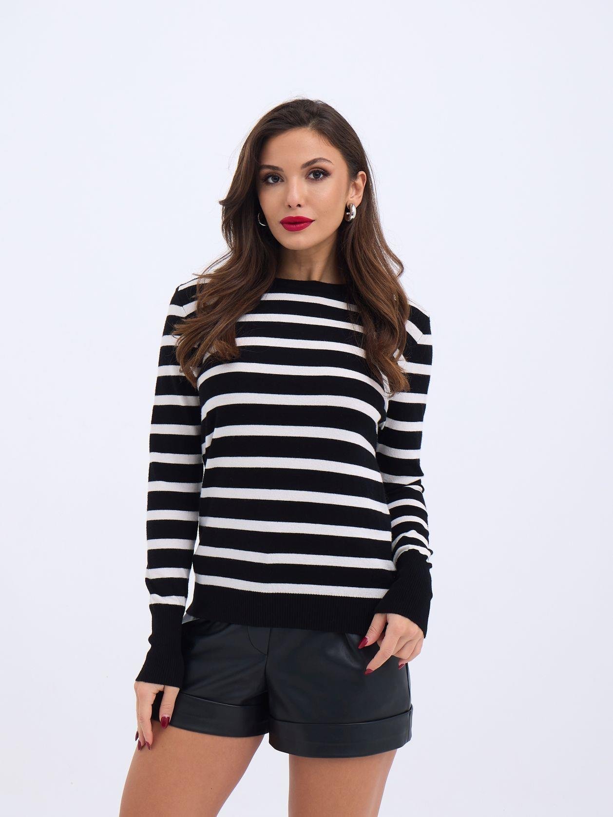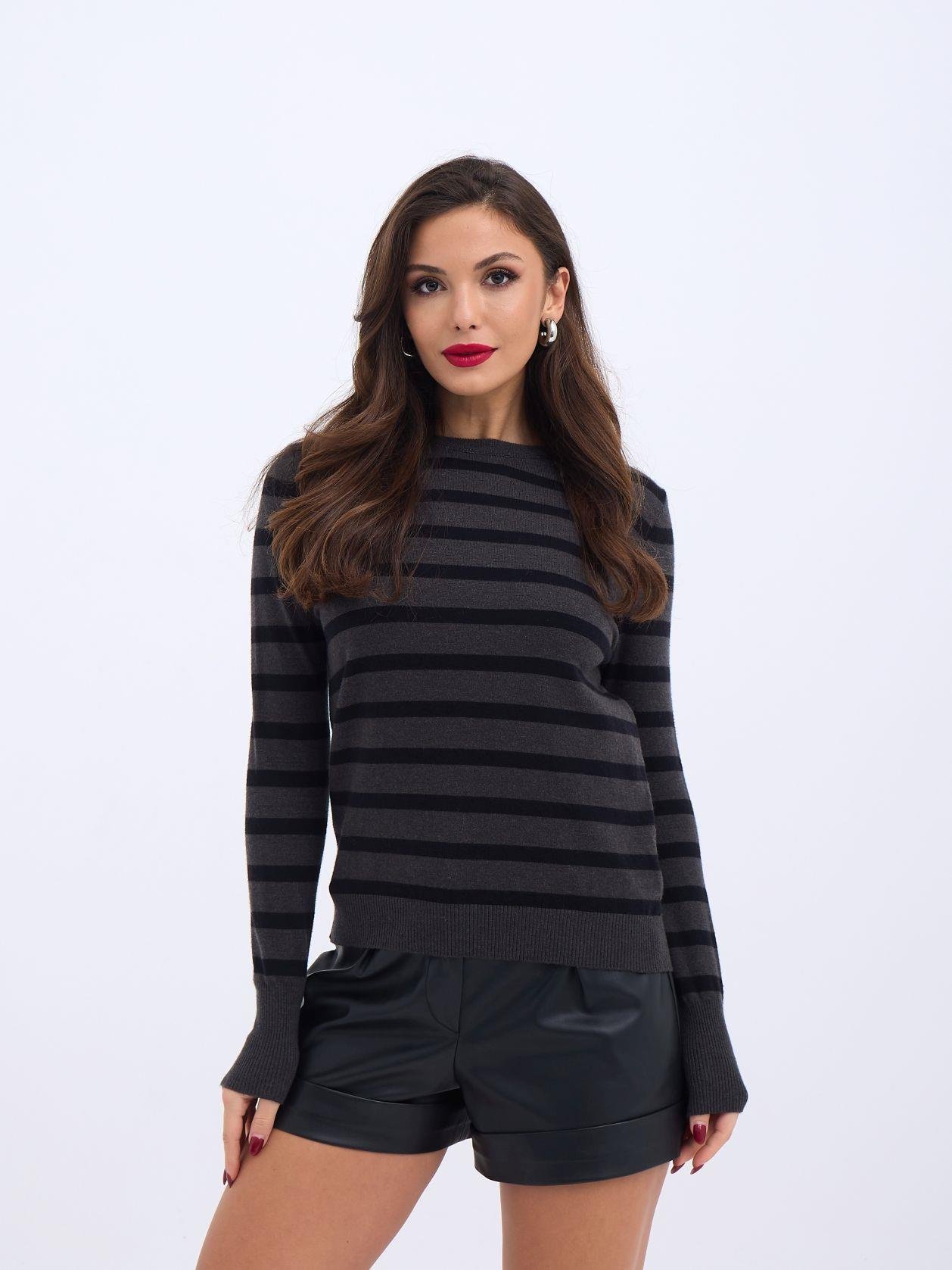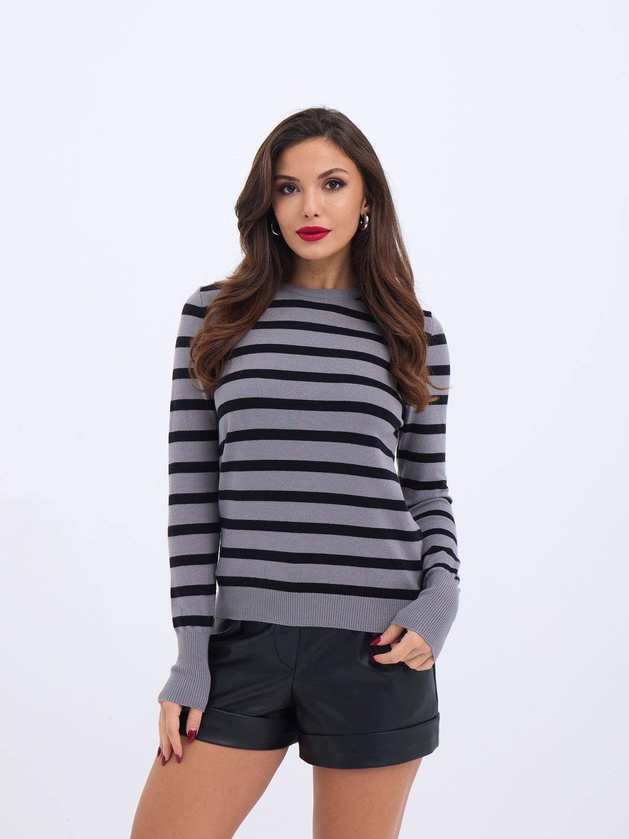 42271 TRİKO ÇİZGİLİ SALAŞ KAZAK-SİYAH-EKRU