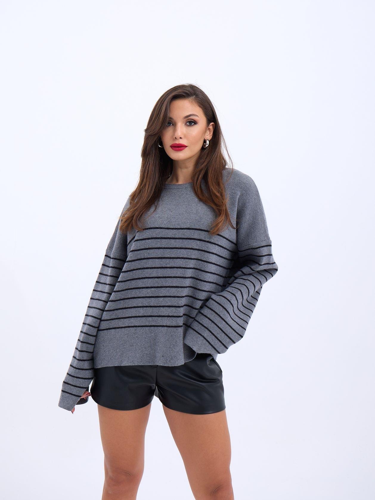 42351 TRİKO SIFIR YAKA ÇİZGİLİ SALAŞ-GRİ-SİYAH
