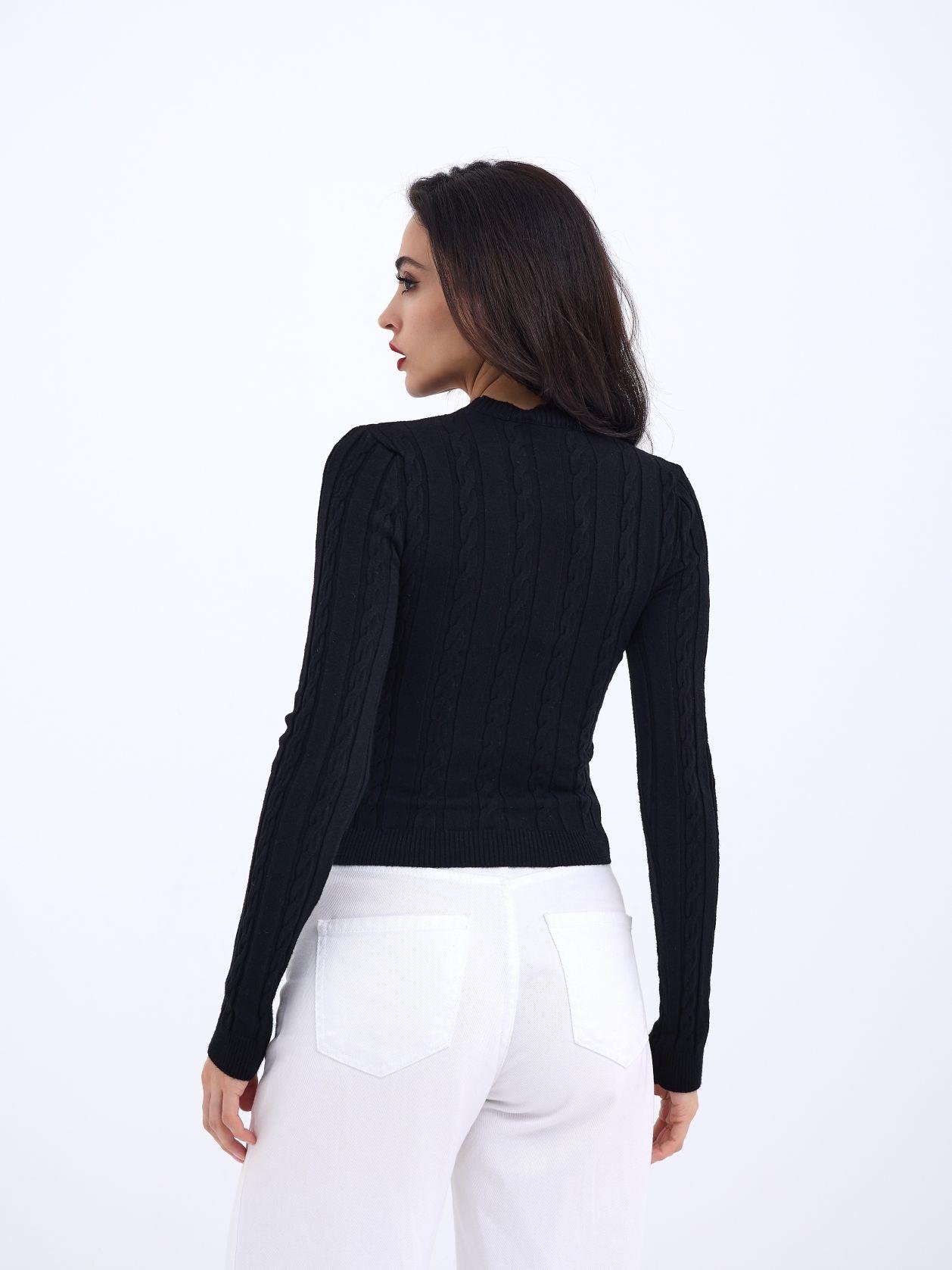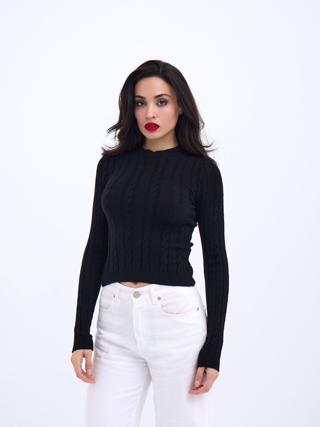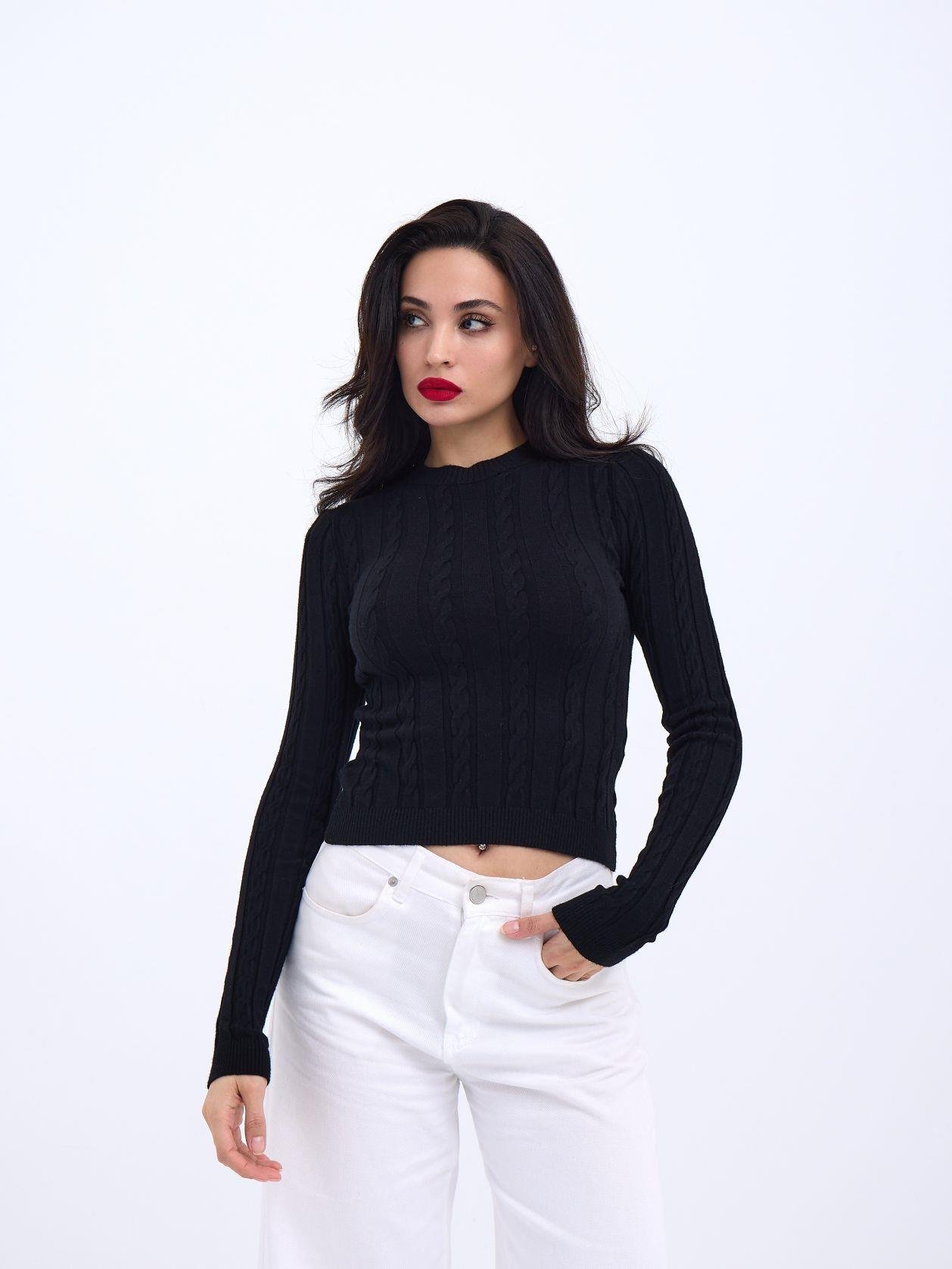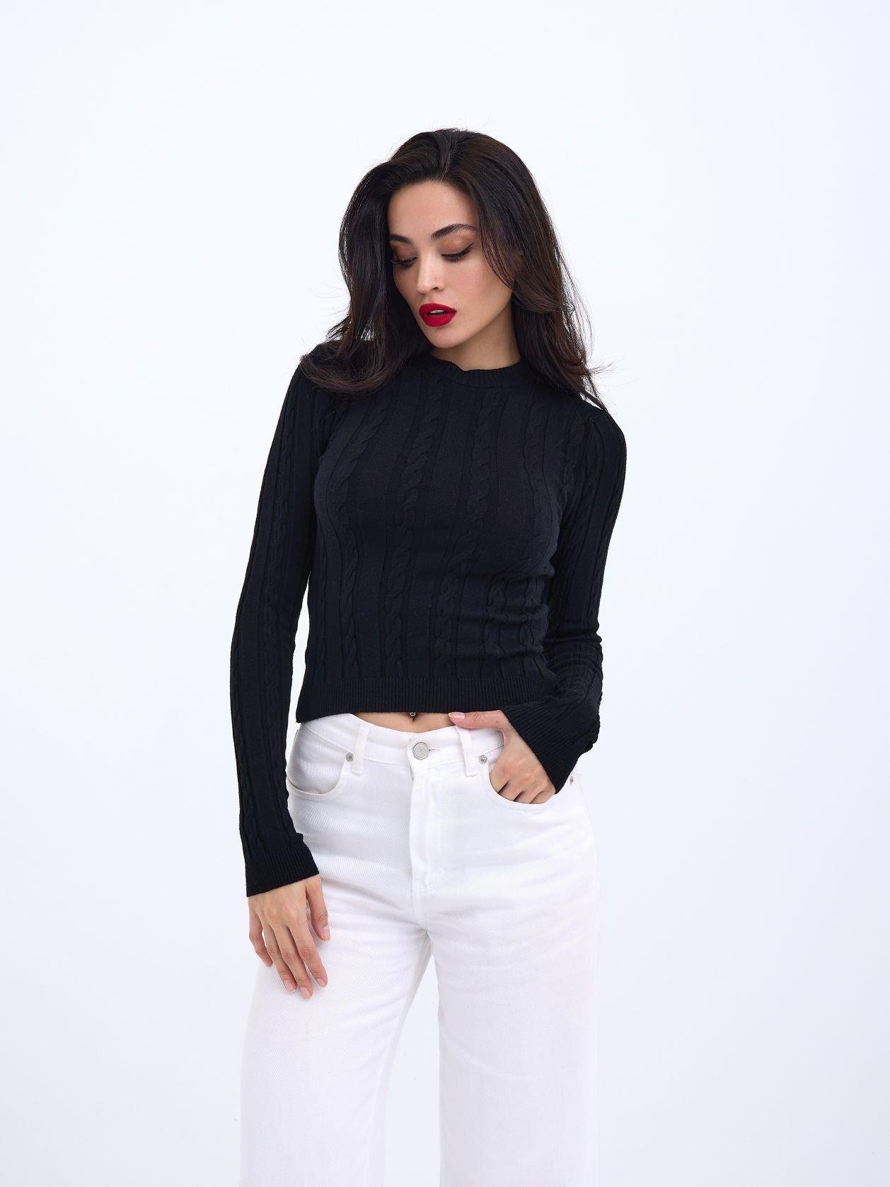 42491 TRİKO SAÇ ÖRGÜ CROP KAZAK-SİYAH