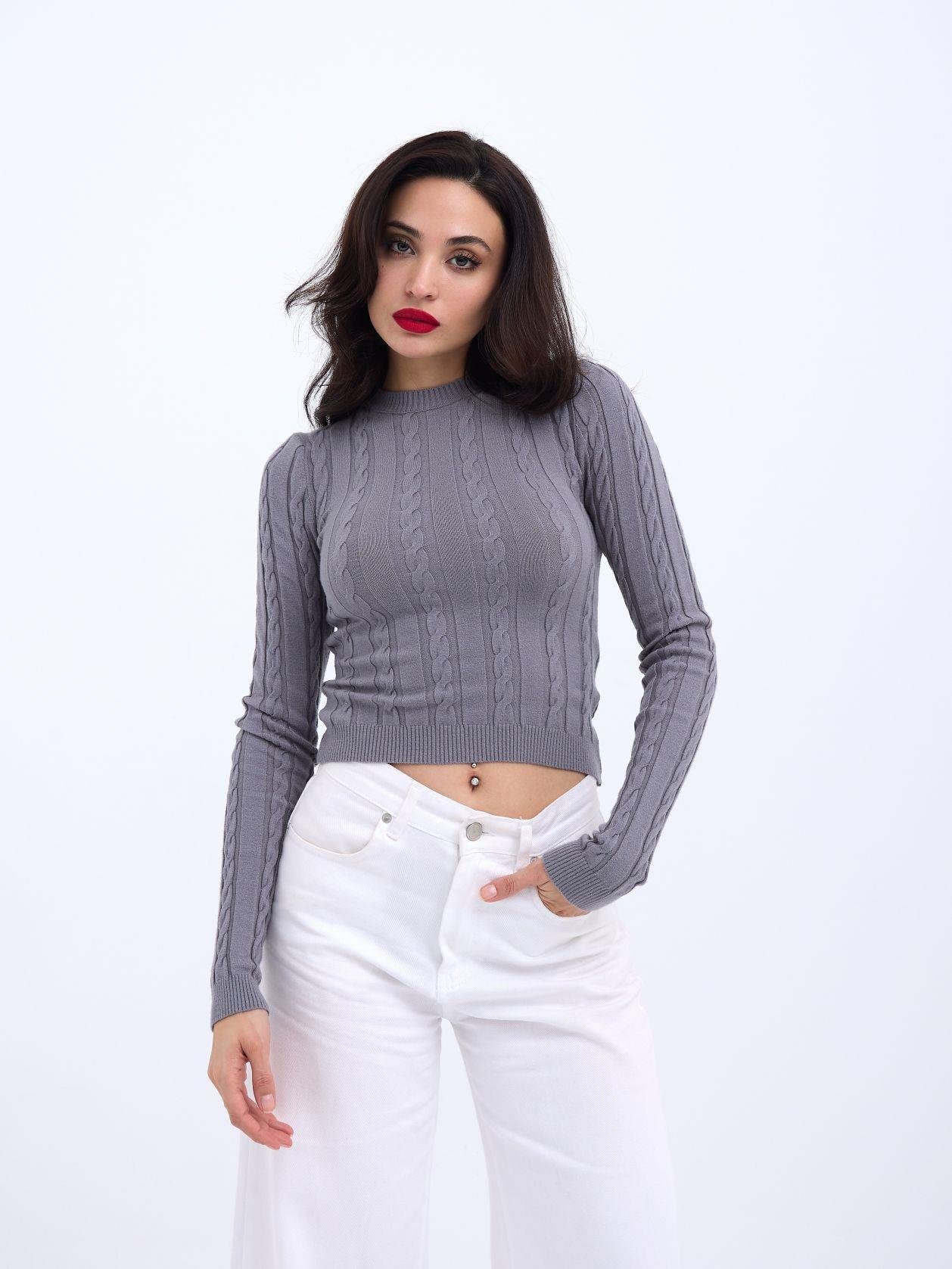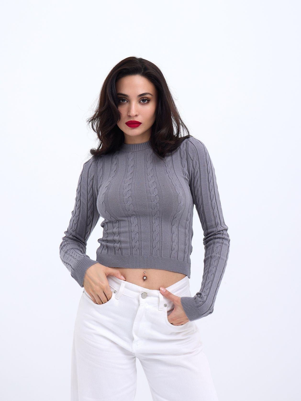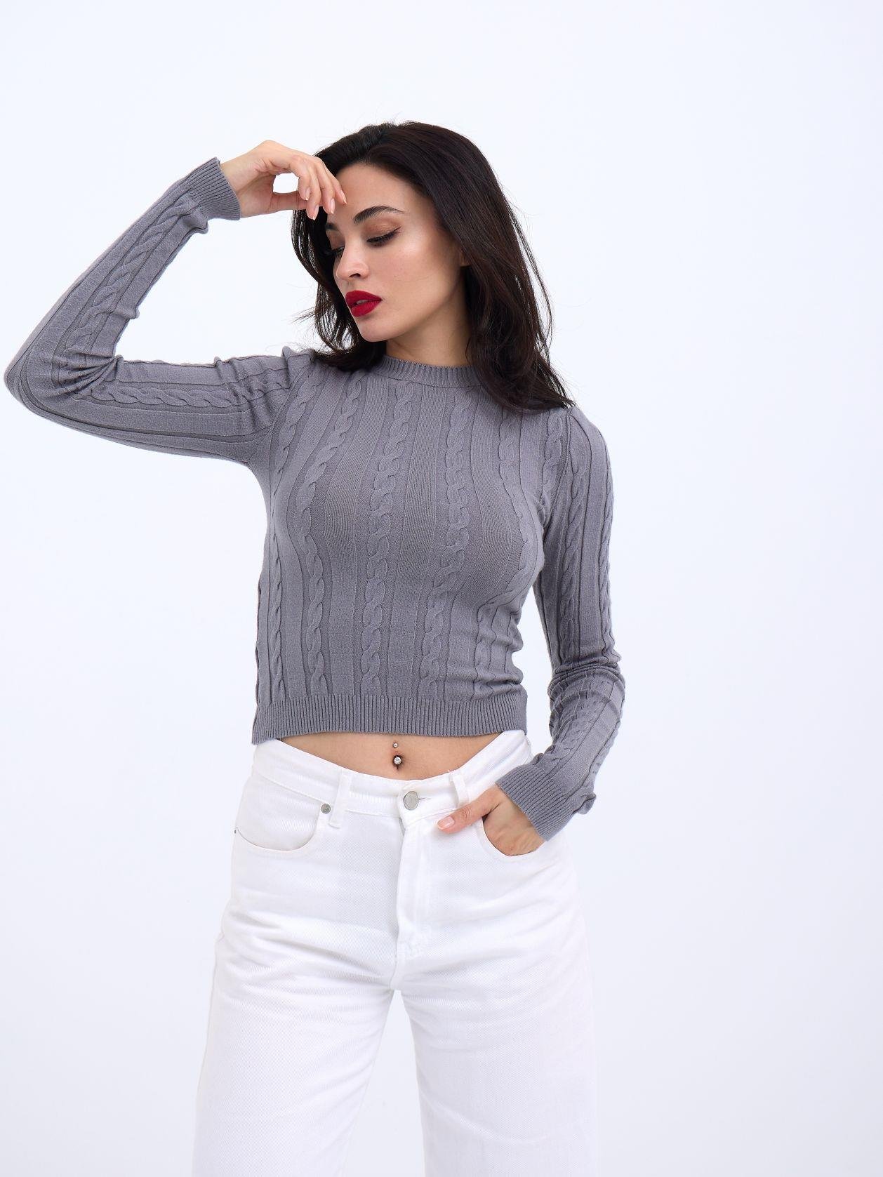 42491 TRİKO SAÇ ÖRGÜ CROP KAZAK-GRİ