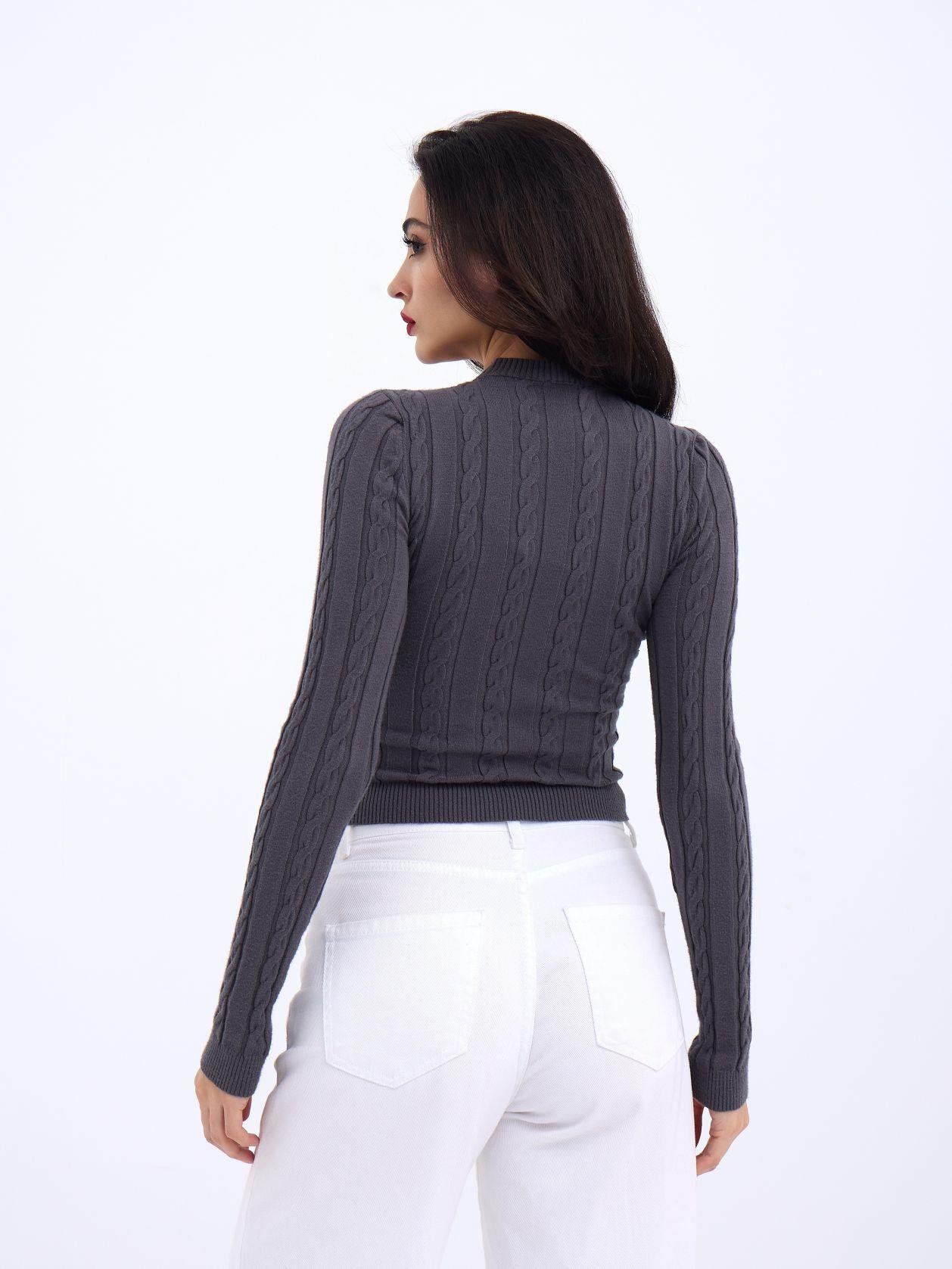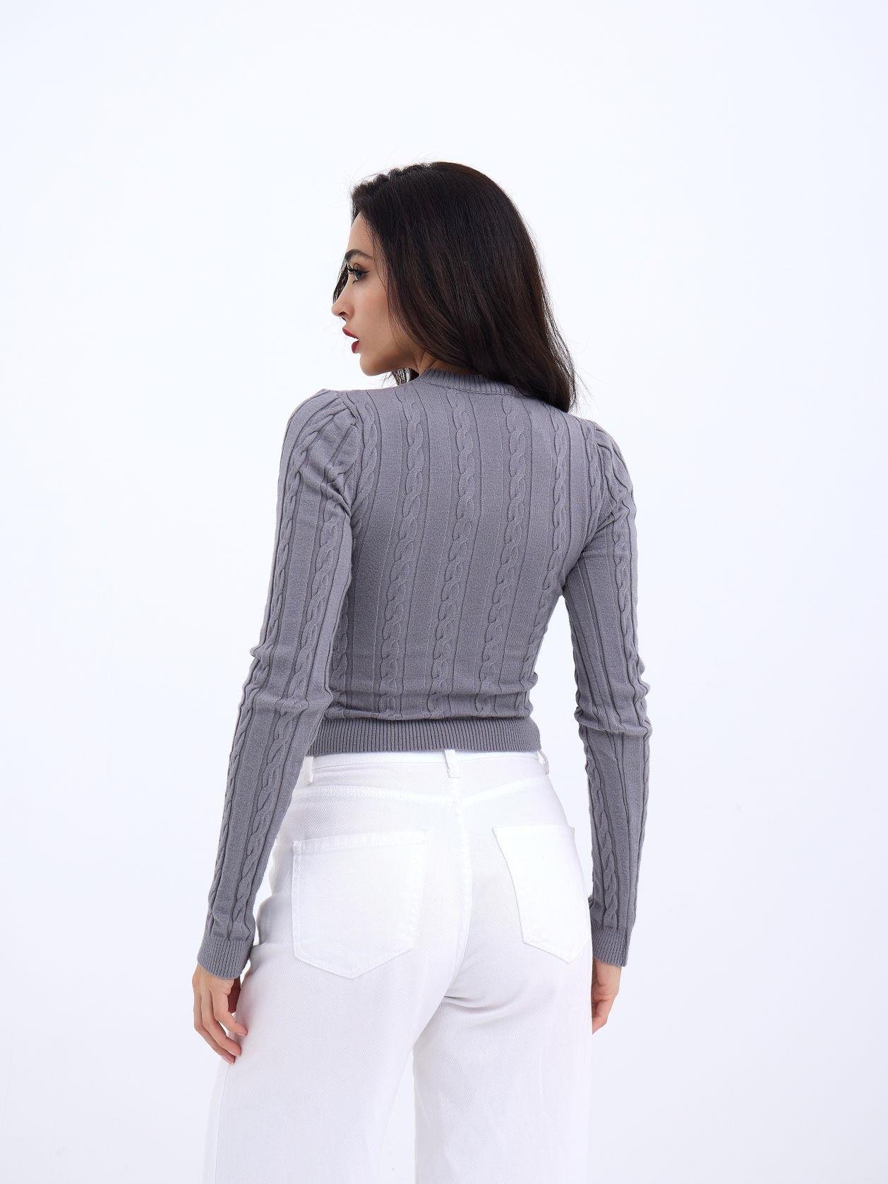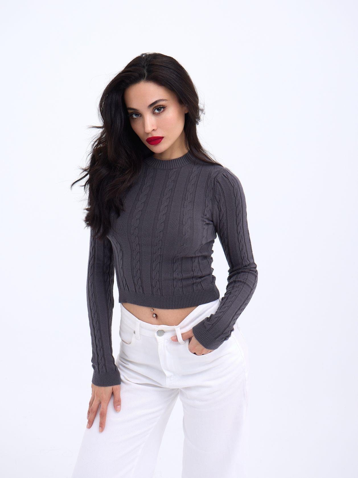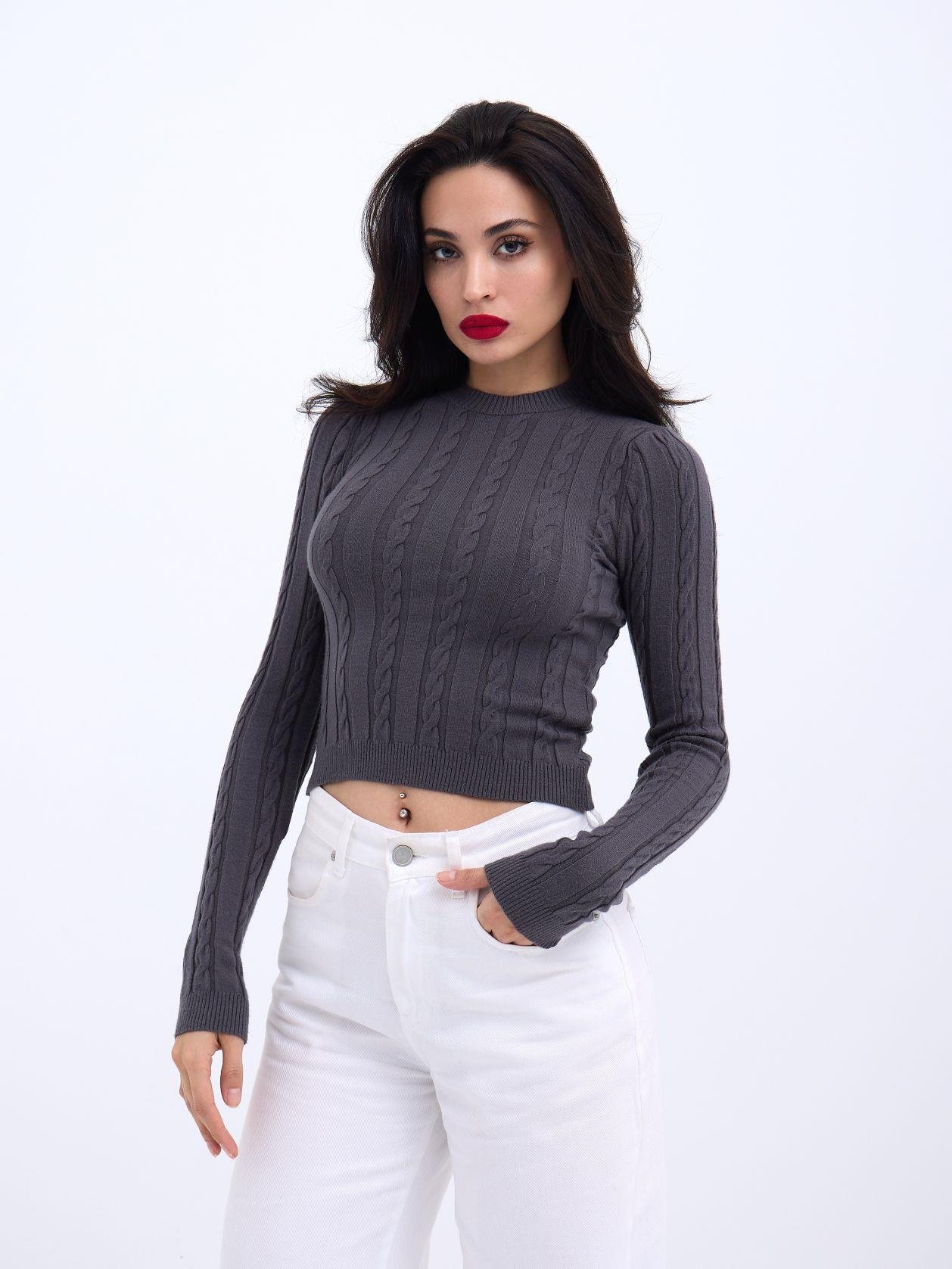 42491 TRİKO SAÇ ÖRGÜ CROP KAZAK-GRİ