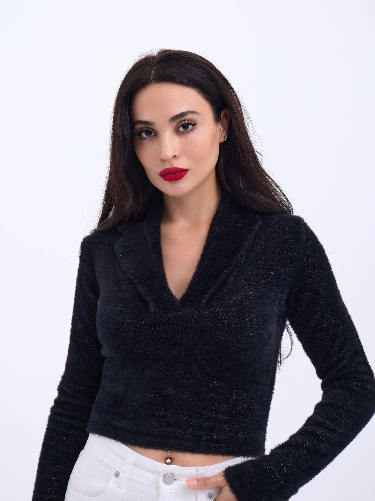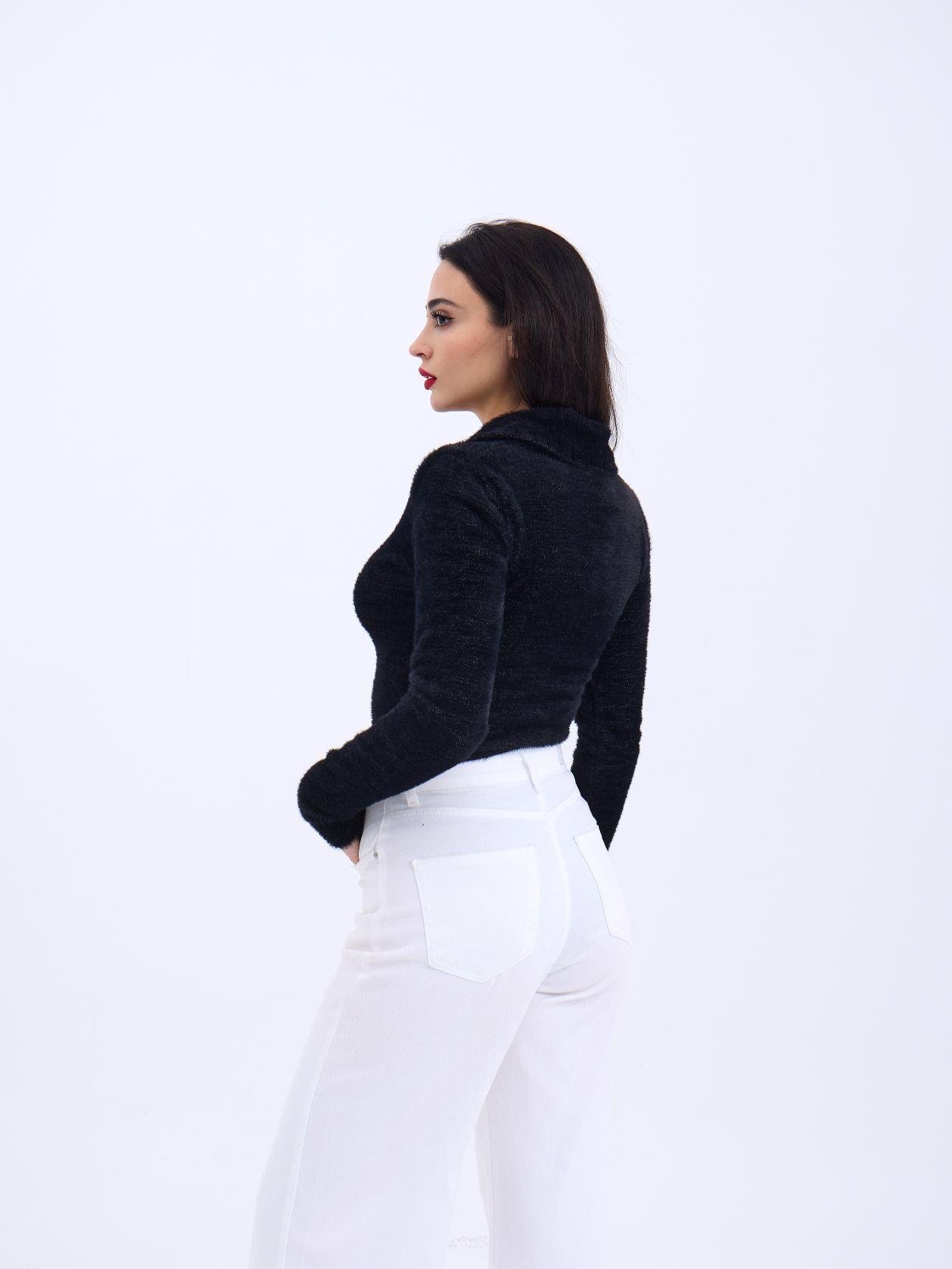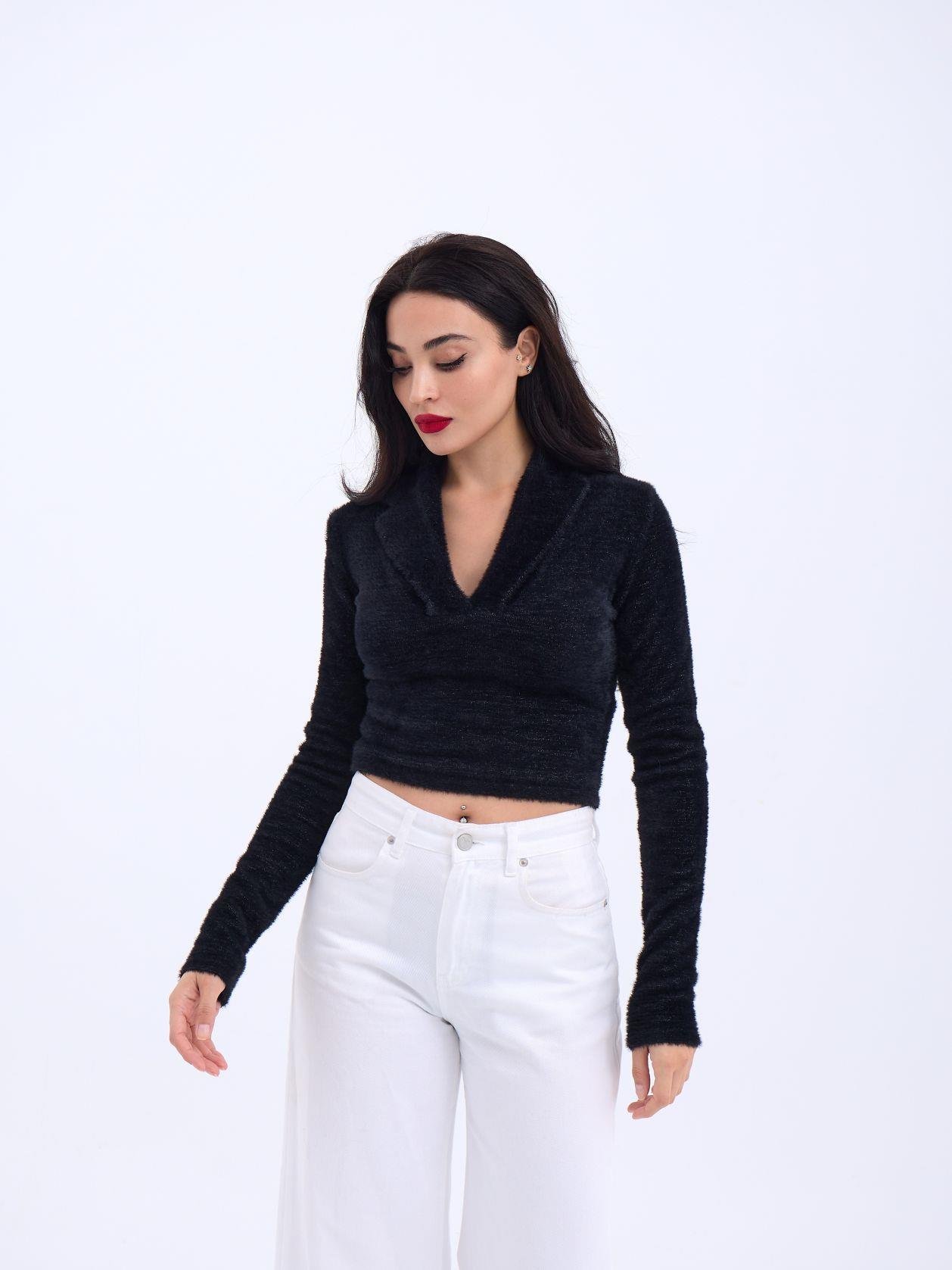 42531 TRİKO SİMLİ YAKALI CROP-SİYAH