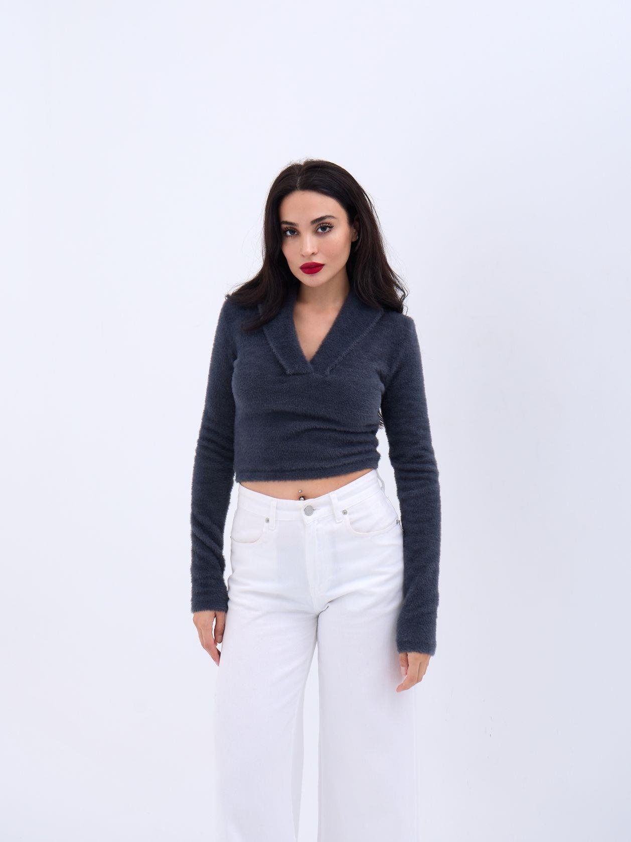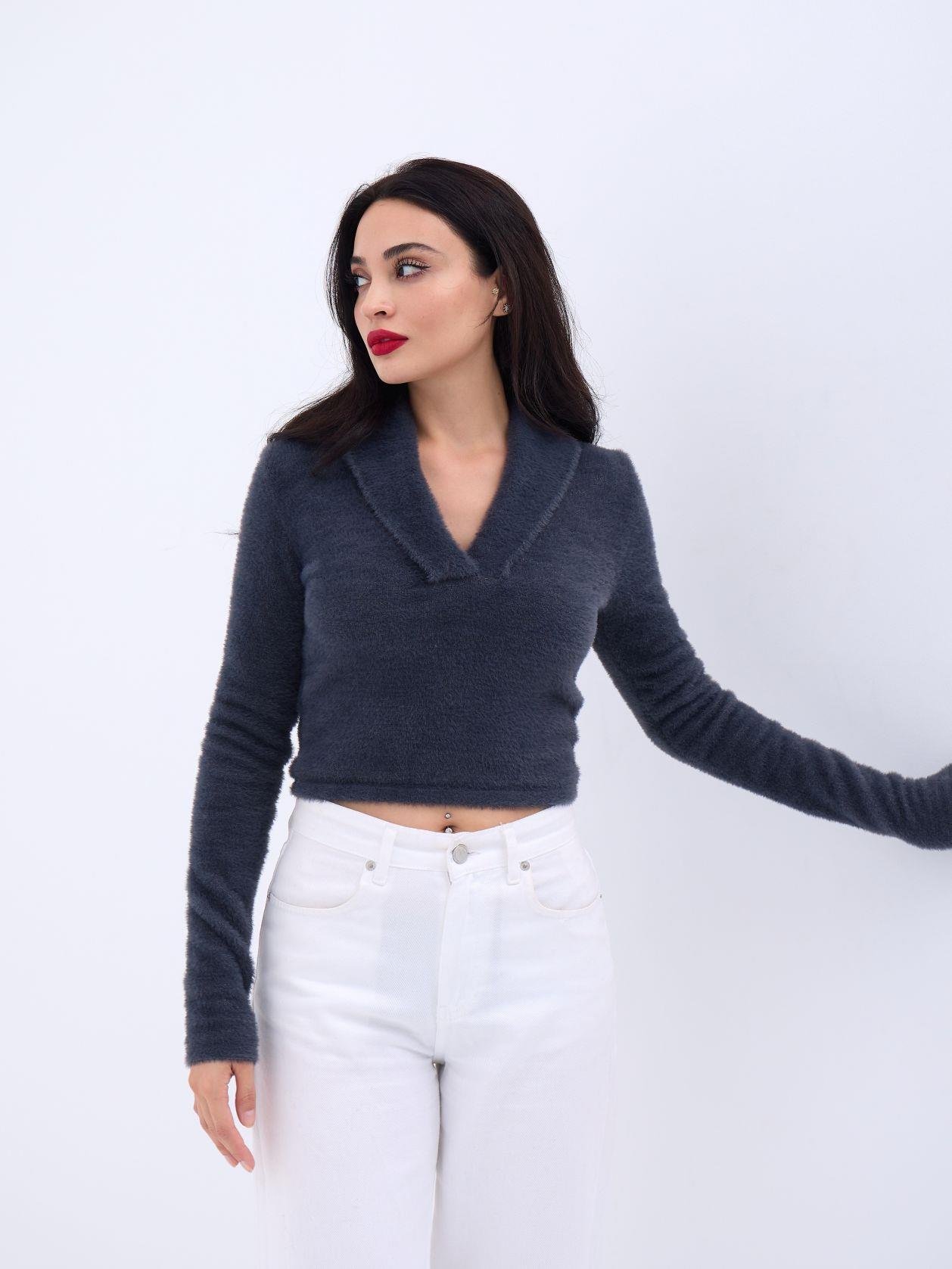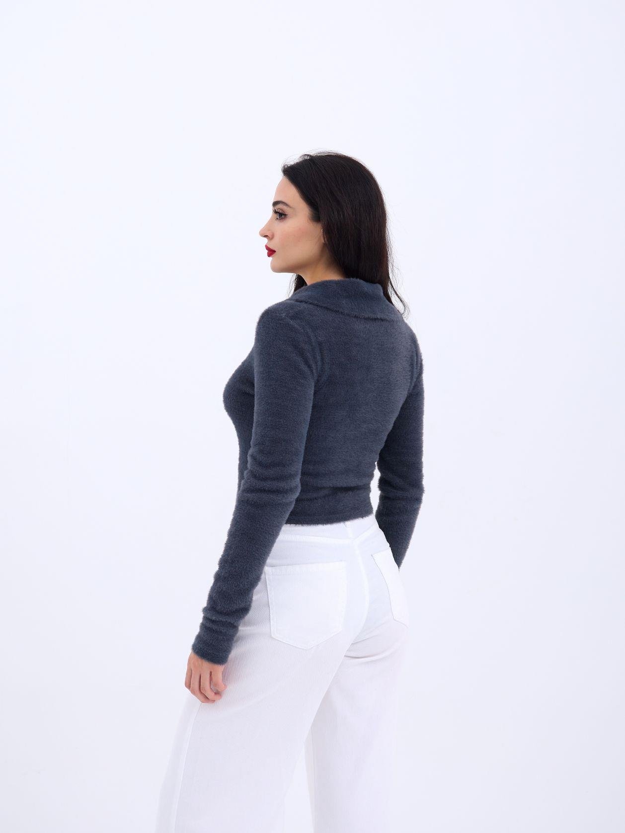 42531 TRİKO SİMLİ YAKALI CROP-TAŞ