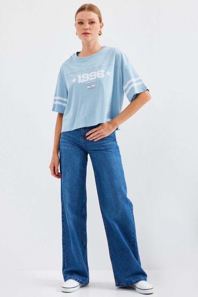4322 Baskılı Oversize Basic Tişört – Pembe