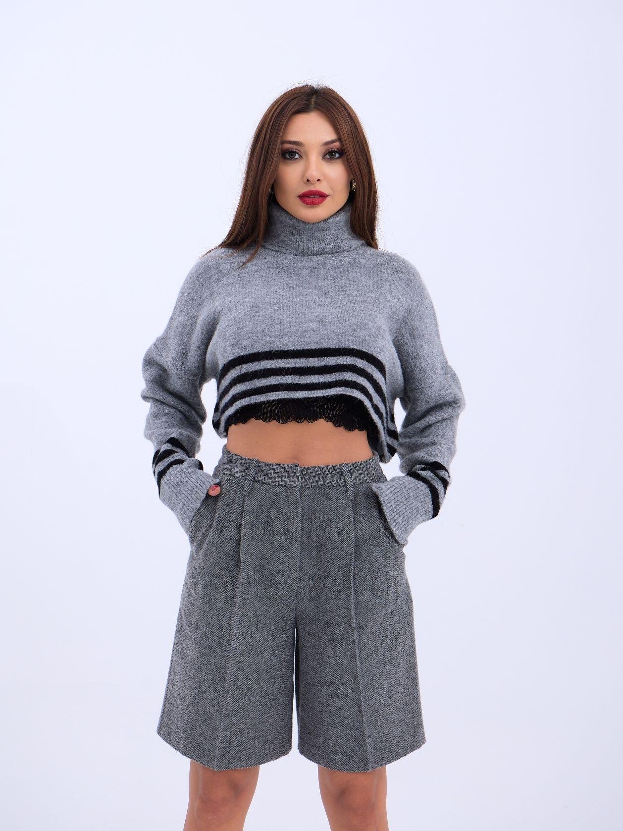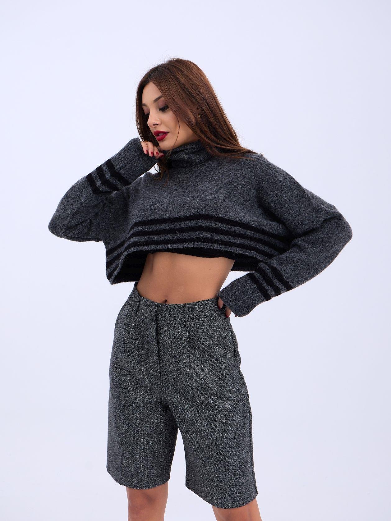 43241 TRİKO ÇİZGİLİ BALIKÇI CROP-ANTRASİT-SİYAH