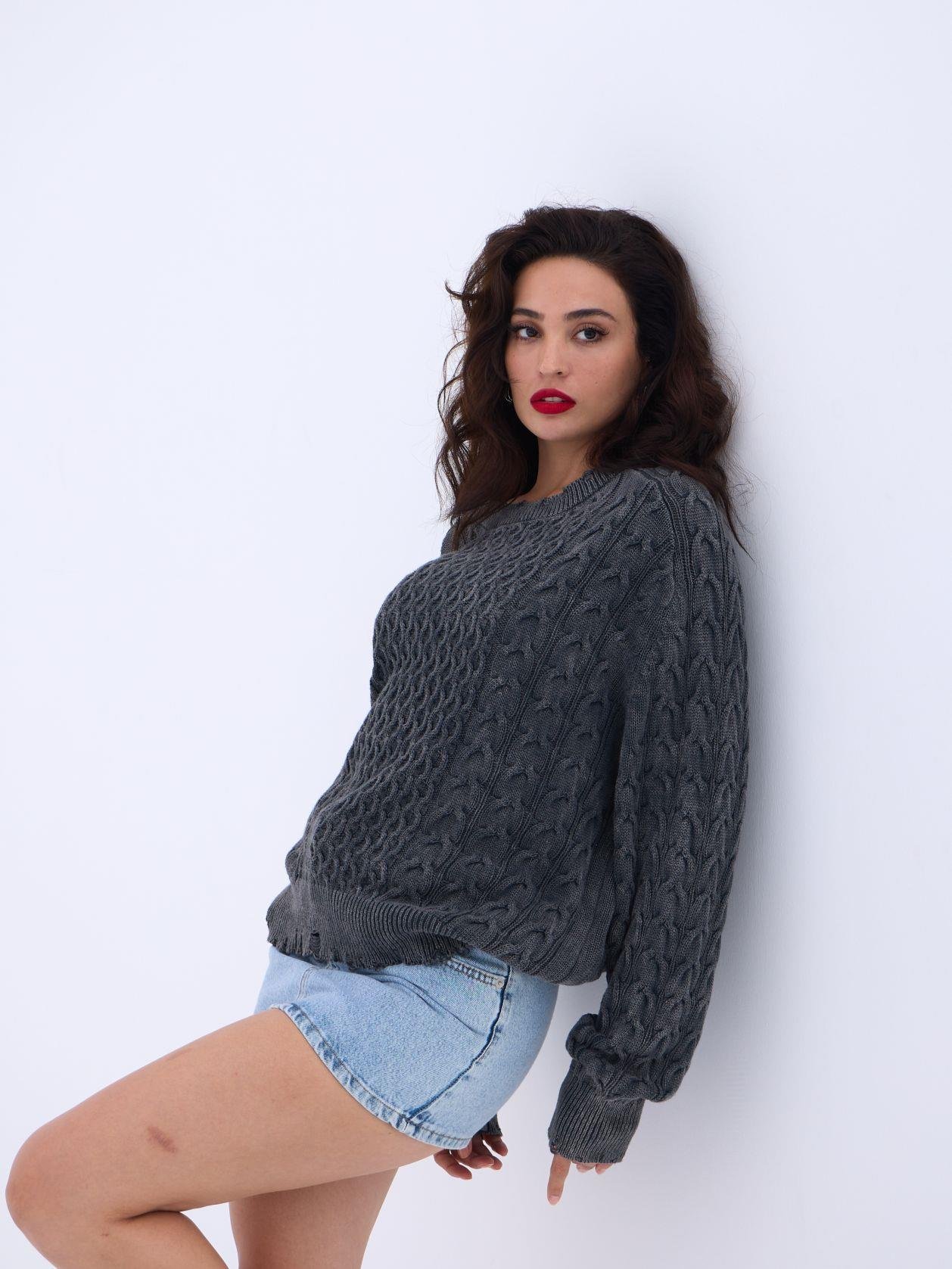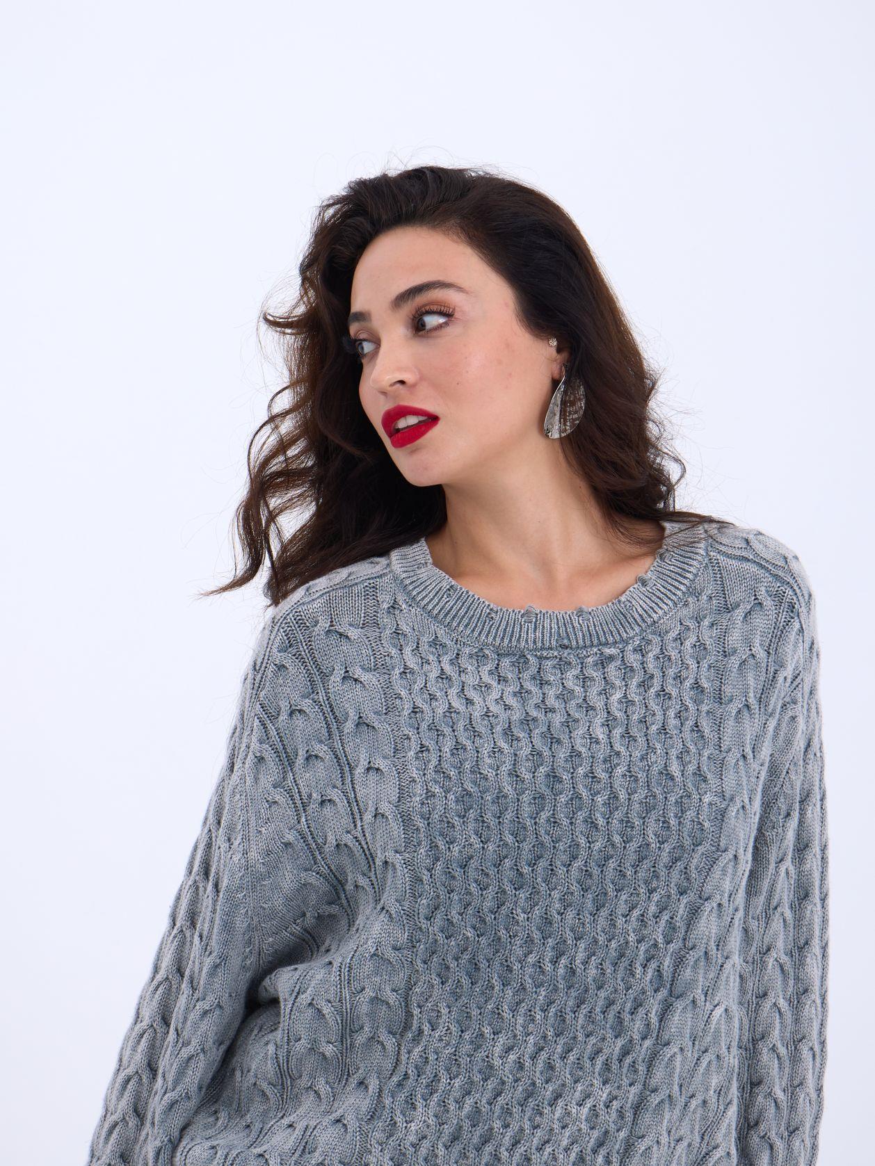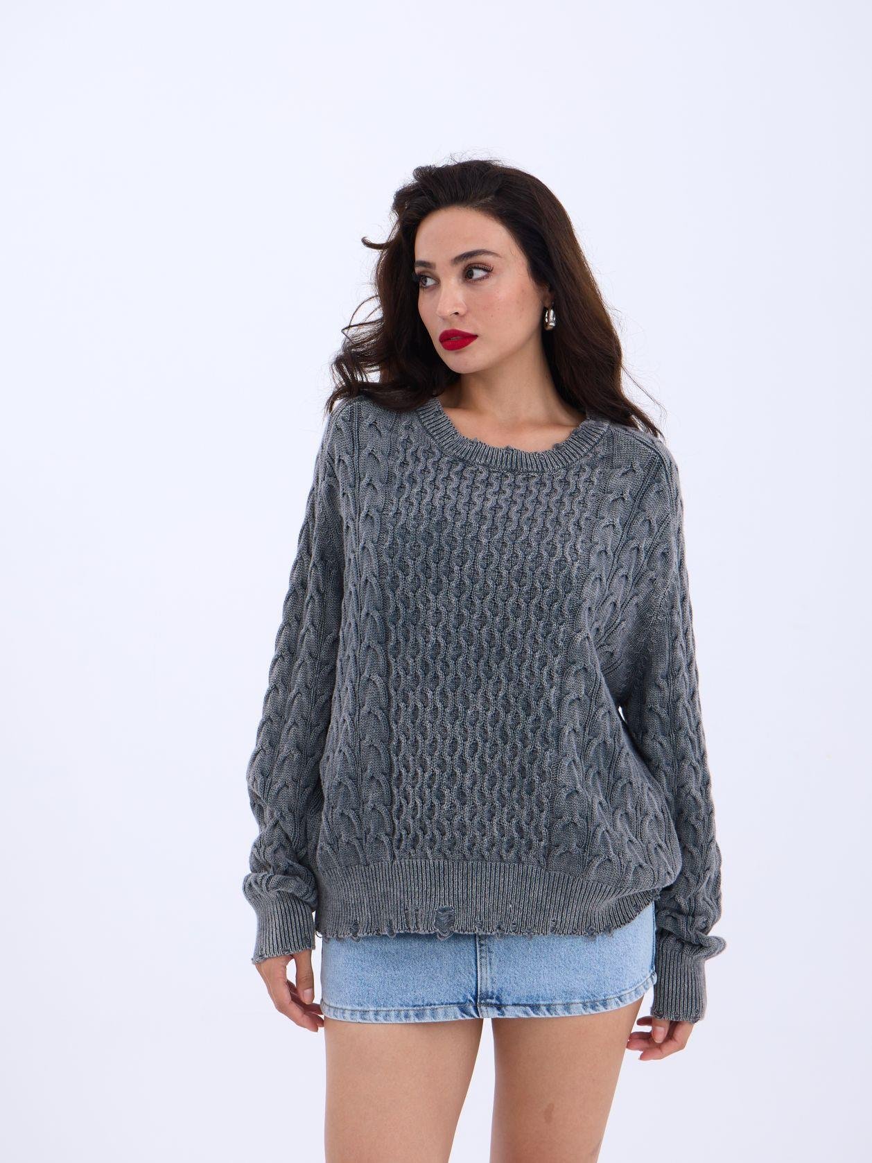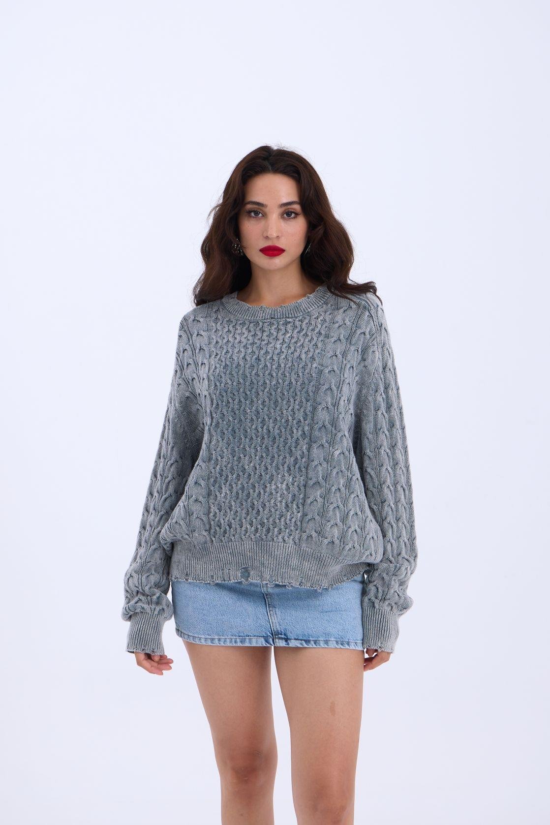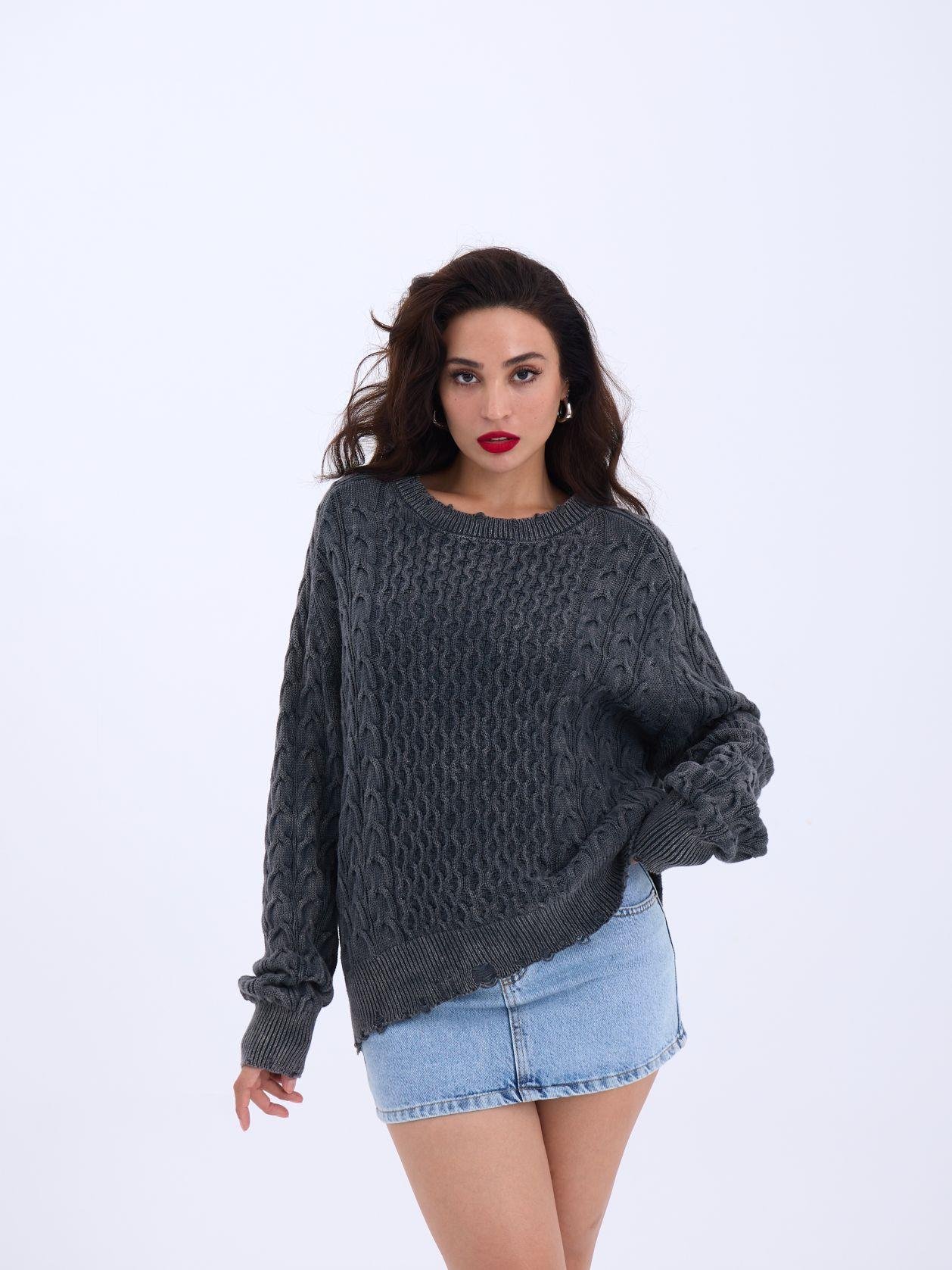 43271 TRİKO SALAŞ SAÇ ÖRGÜ KAZAK-ANTRASİT