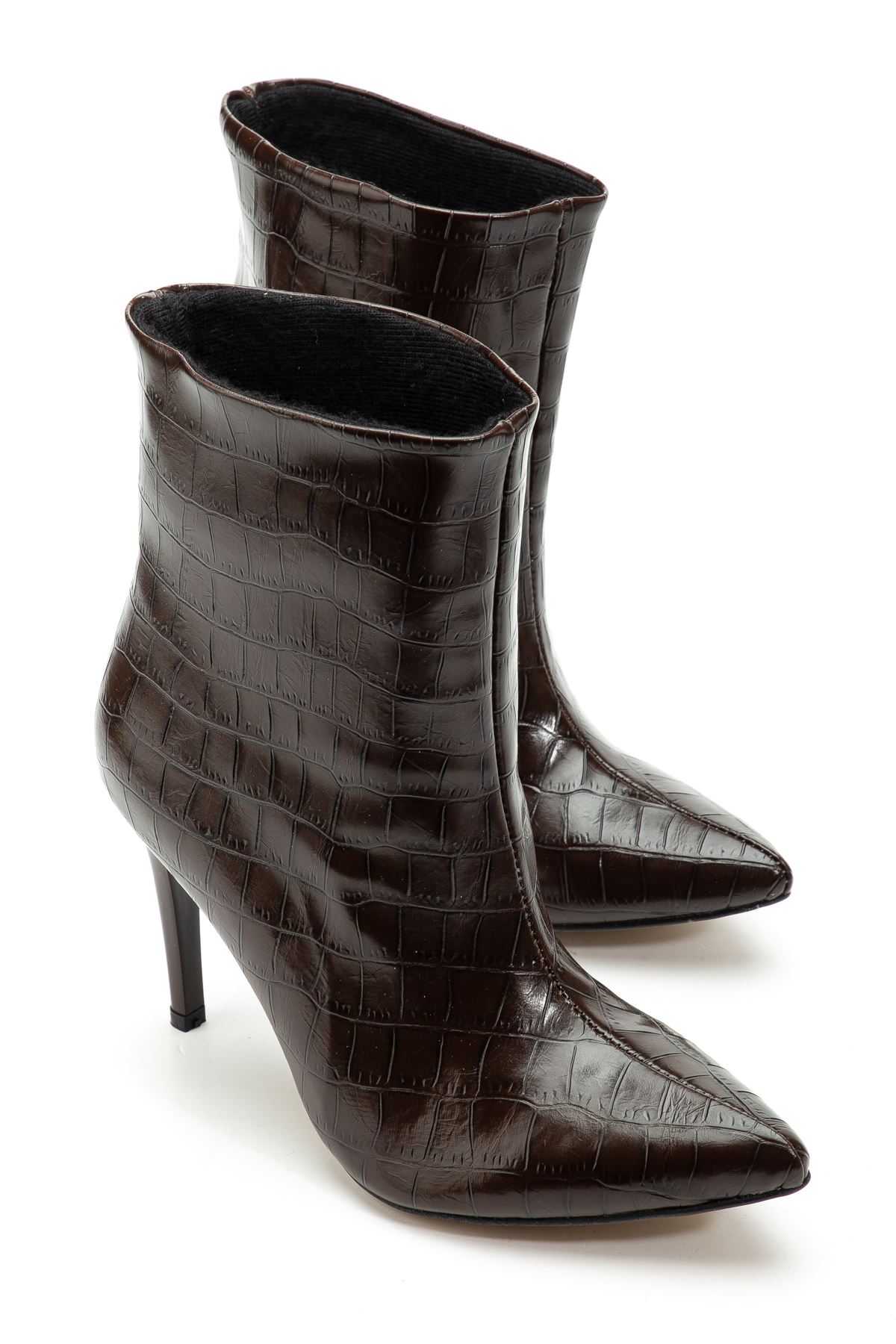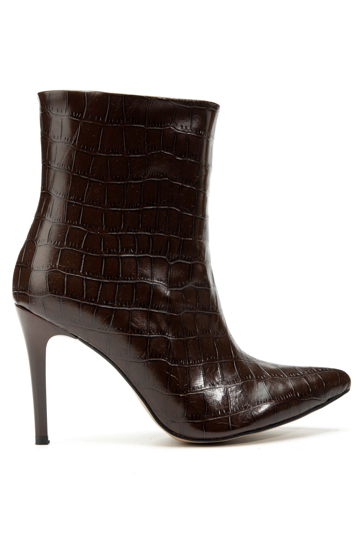 4803 Kahve Kroko Sivri Burun İnce Topuk Günlük Kadın Bot