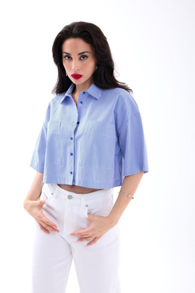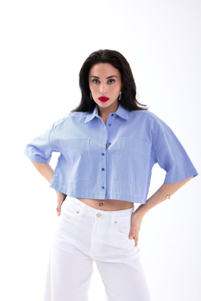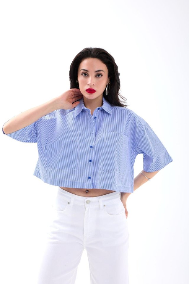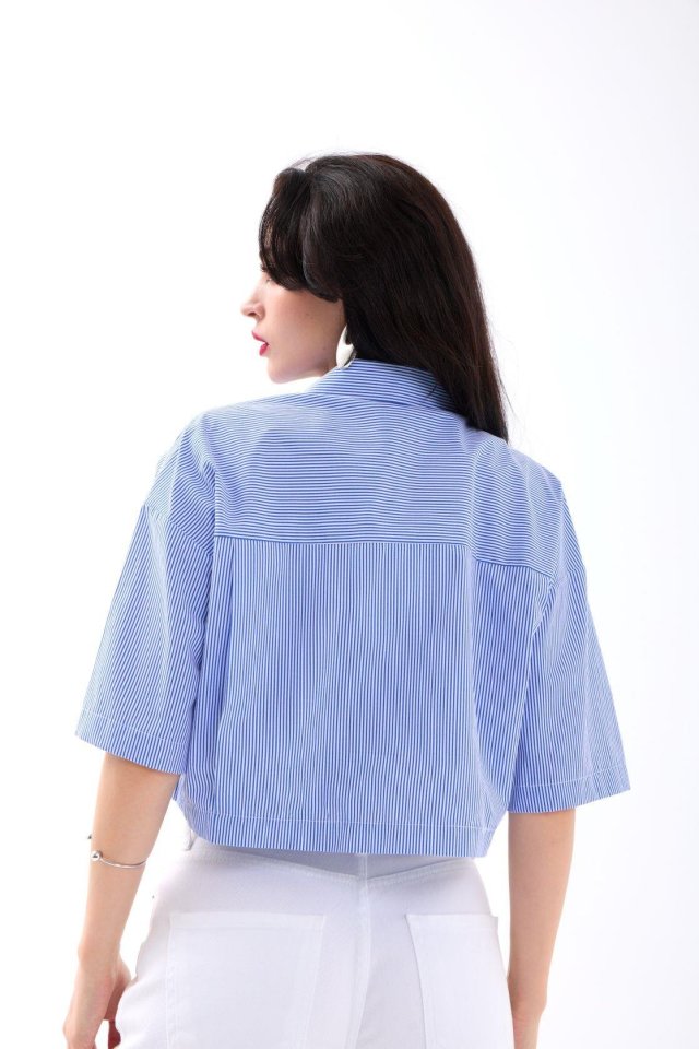 4873 GÖMLEK-MAVİ BEYAZ ÇİZGİLİ