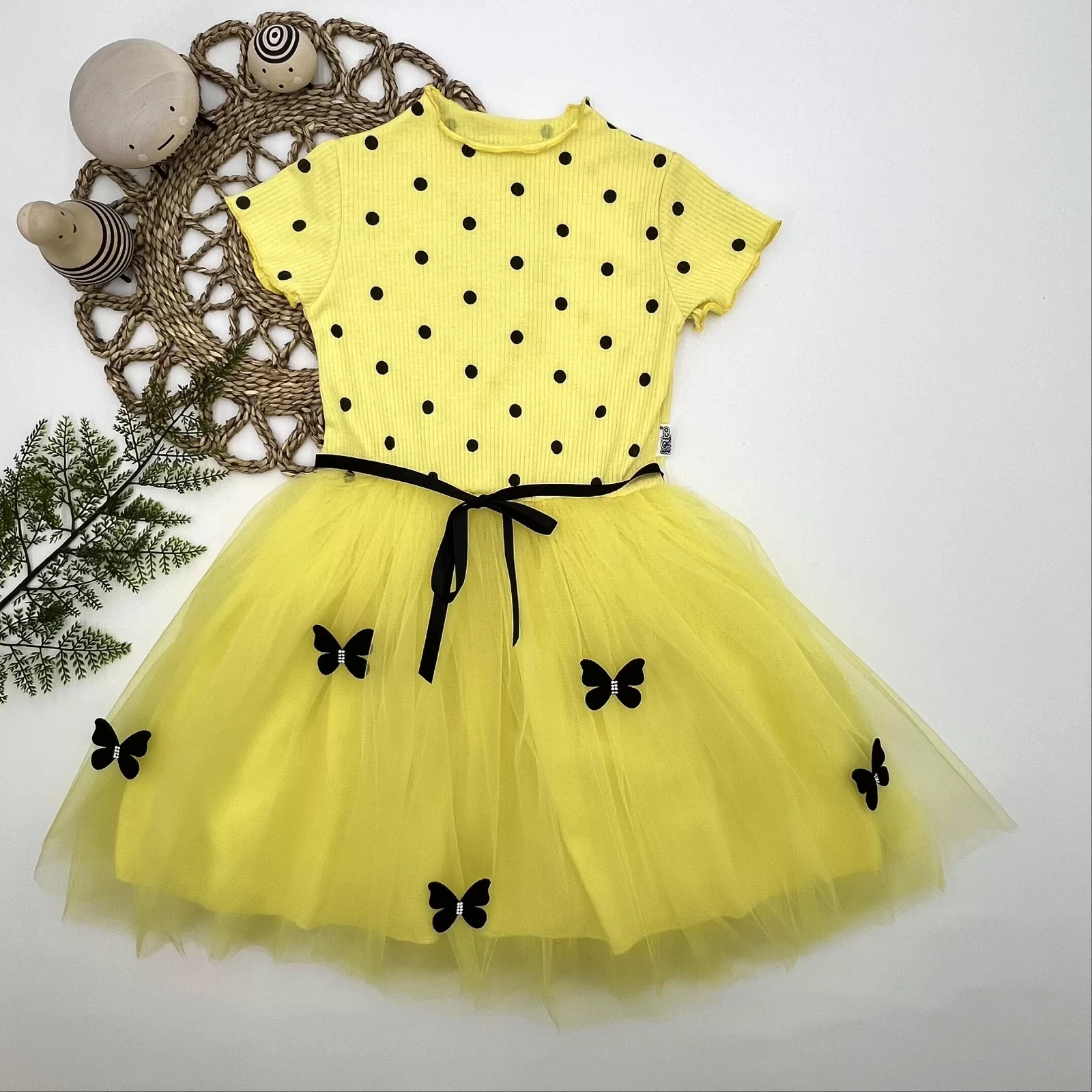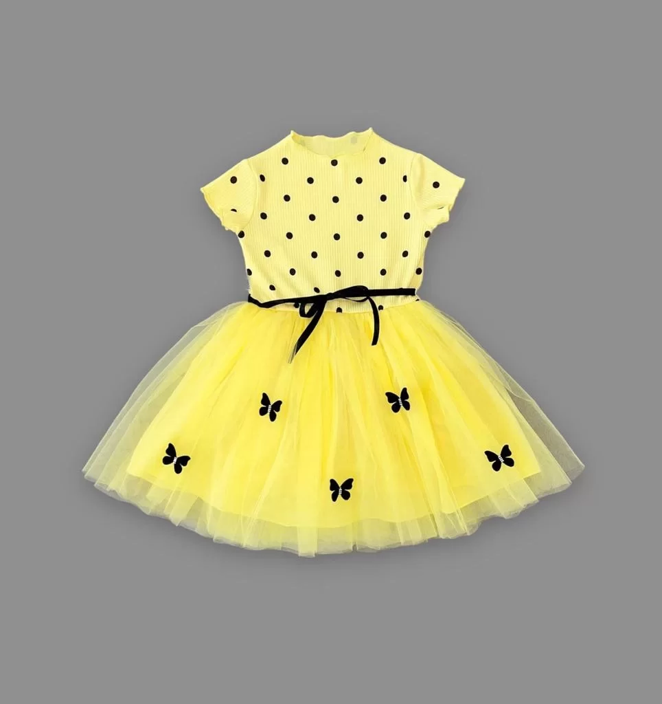 5-6-7 Yaş Puantiyeli Kelebek Etekli Astarlı Kız Çocuk Elbisesi