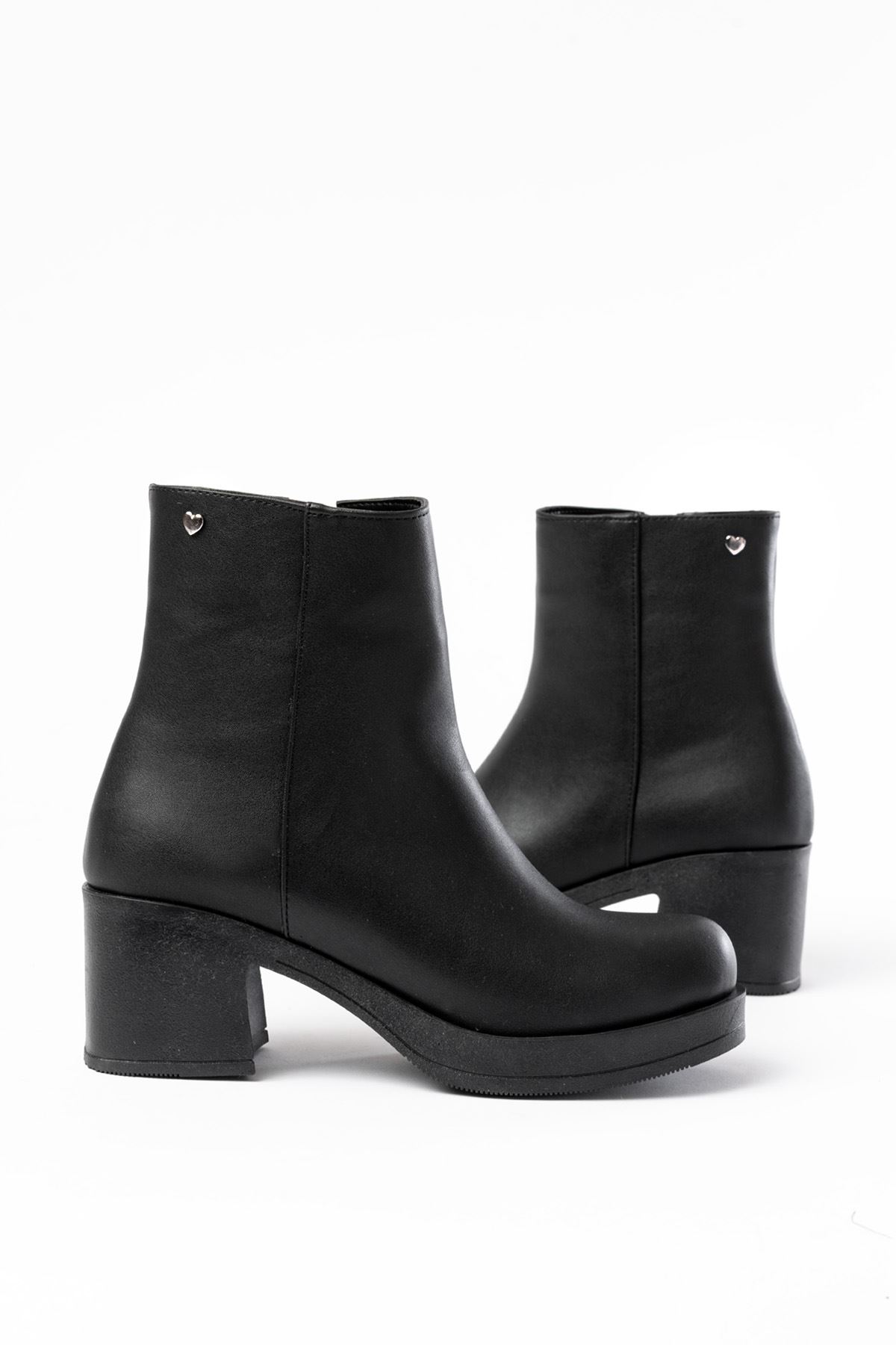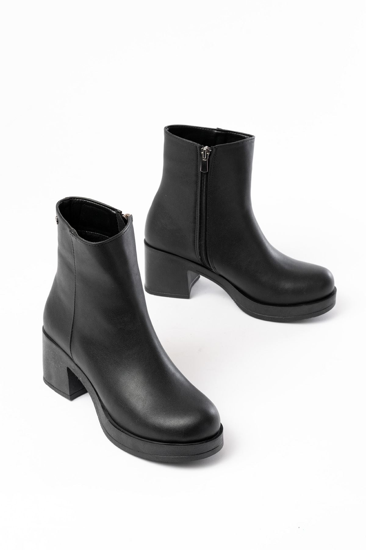 5109-3022 Siyah Fermuarlı Kalın Topuklu Günlük Kadın Bot