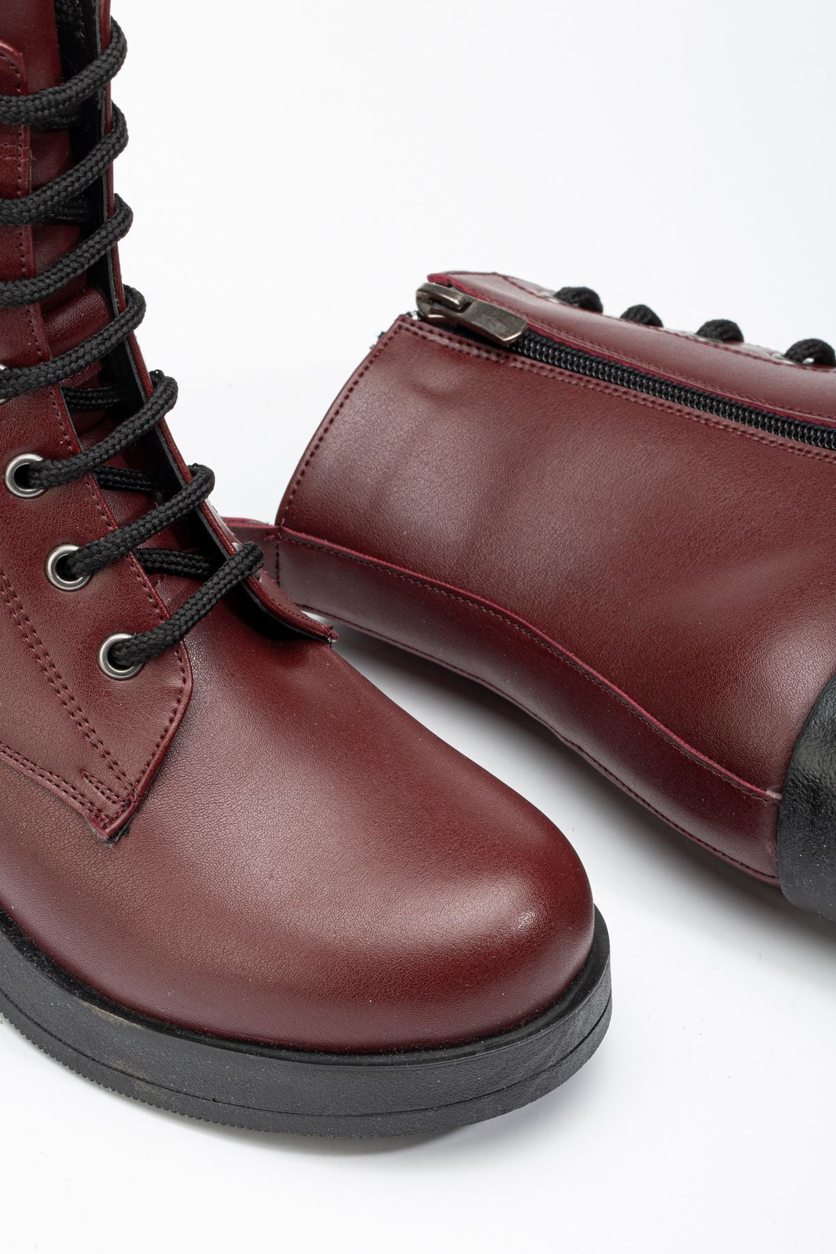 5109-3025 Bordo Bağcıklı Fermuarlı Kalın Topuklu Günlük Kadın Bot