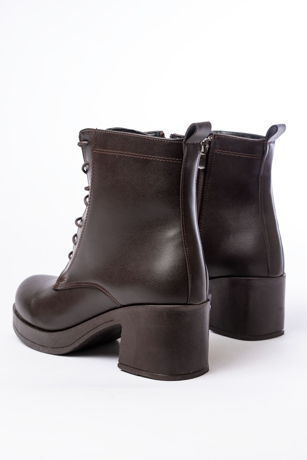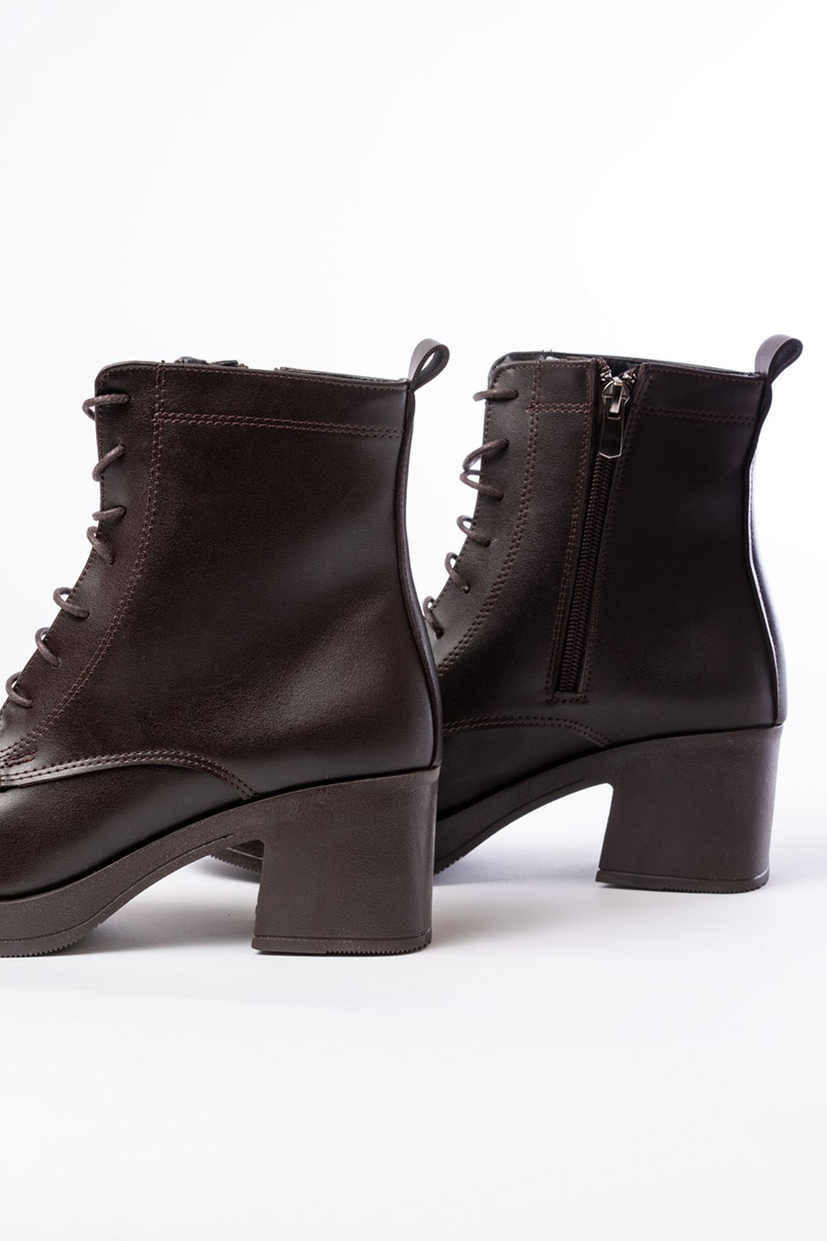 5109-3025 Kahverengi Bağcıklı Fermuarlı Kalın Topuklu Günlük Kadın Bot