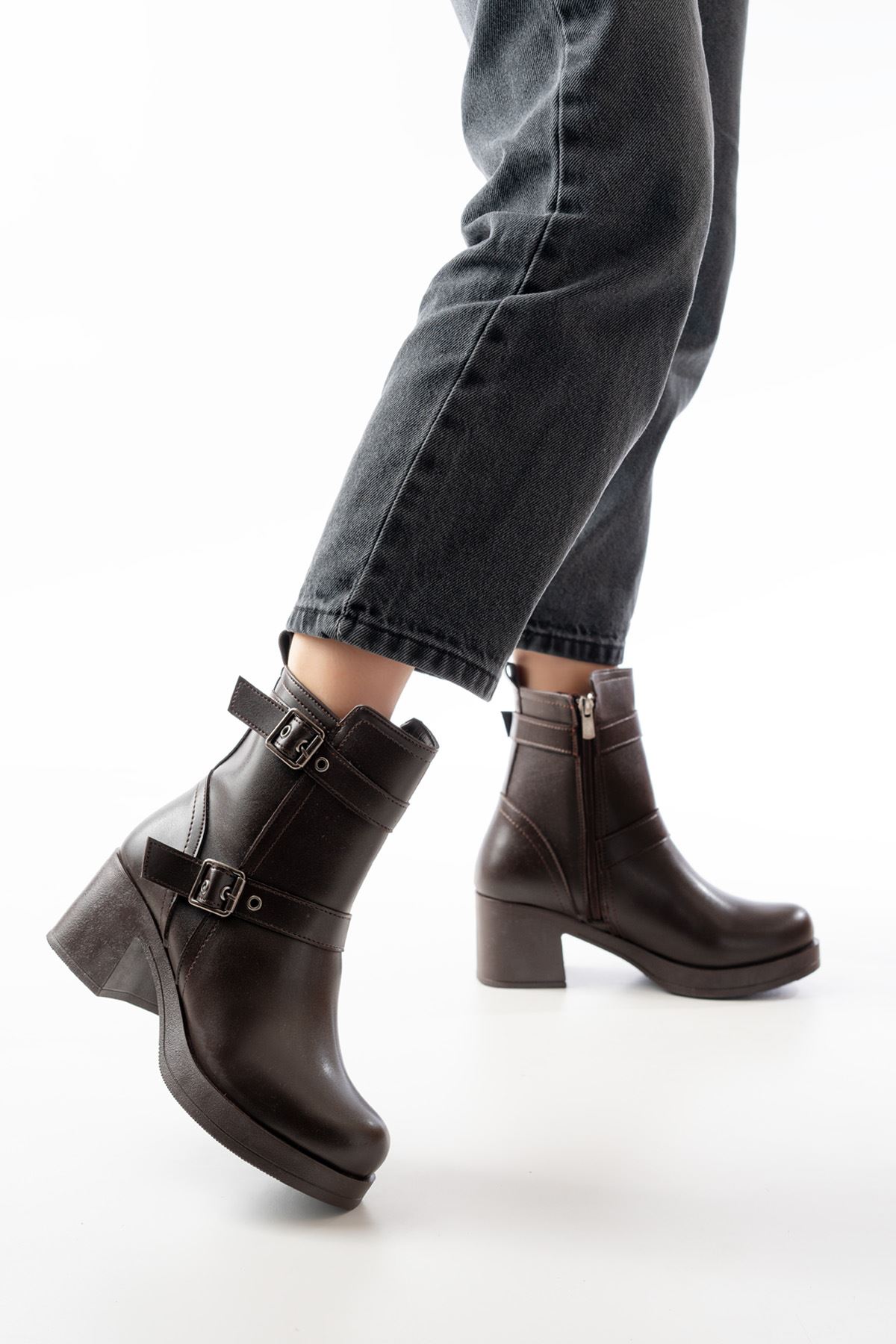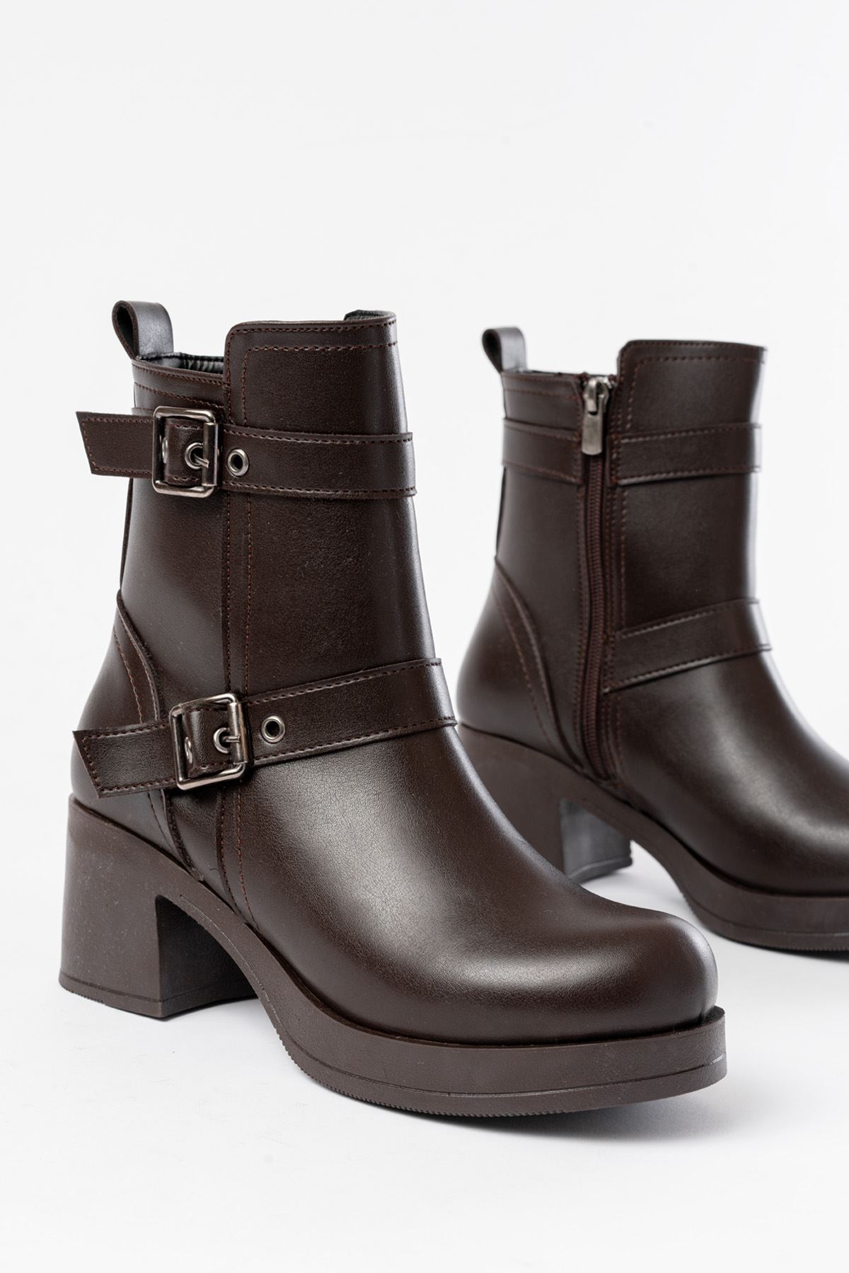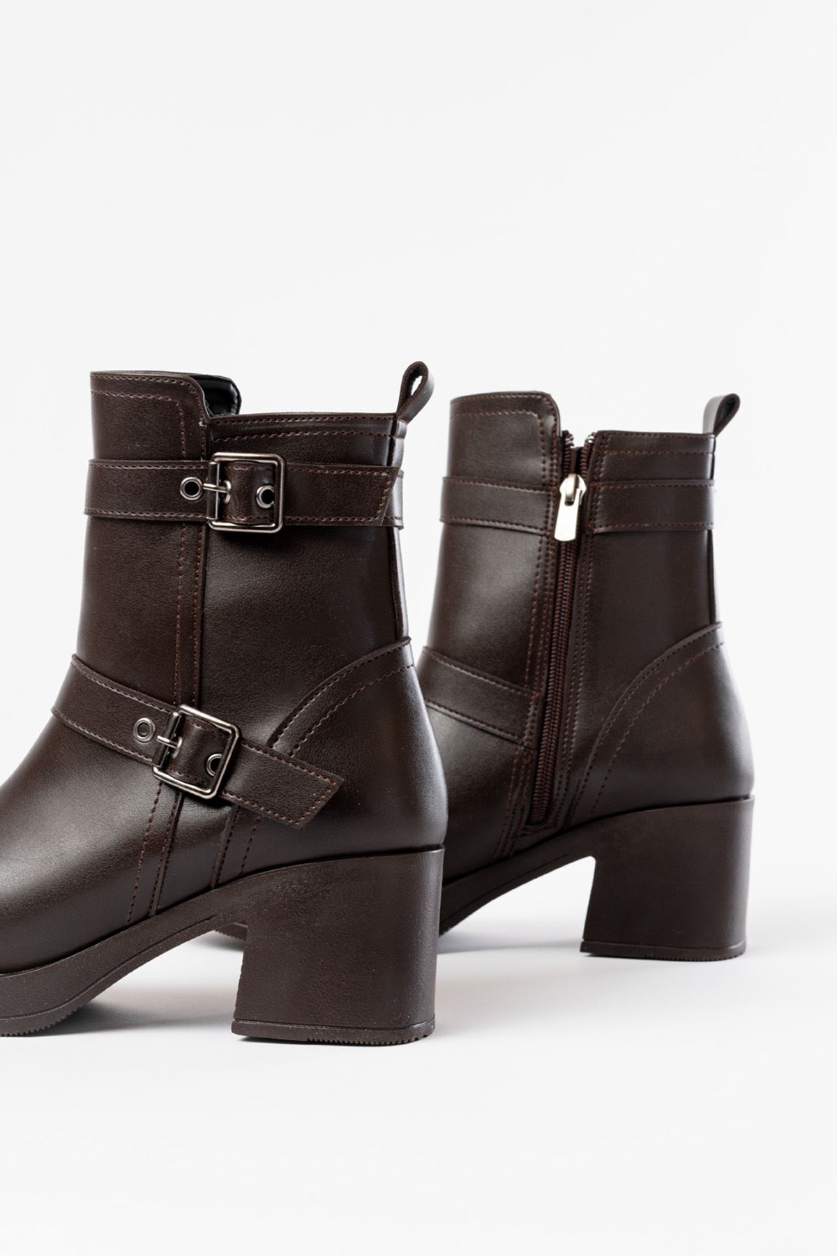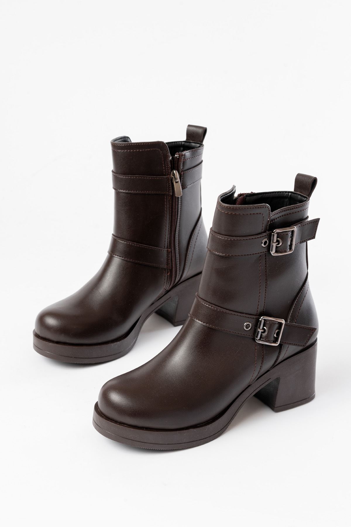 5109-3027 Kahverengi Topuklu Fermuarlı Günlük Kadın Bot