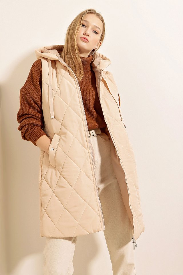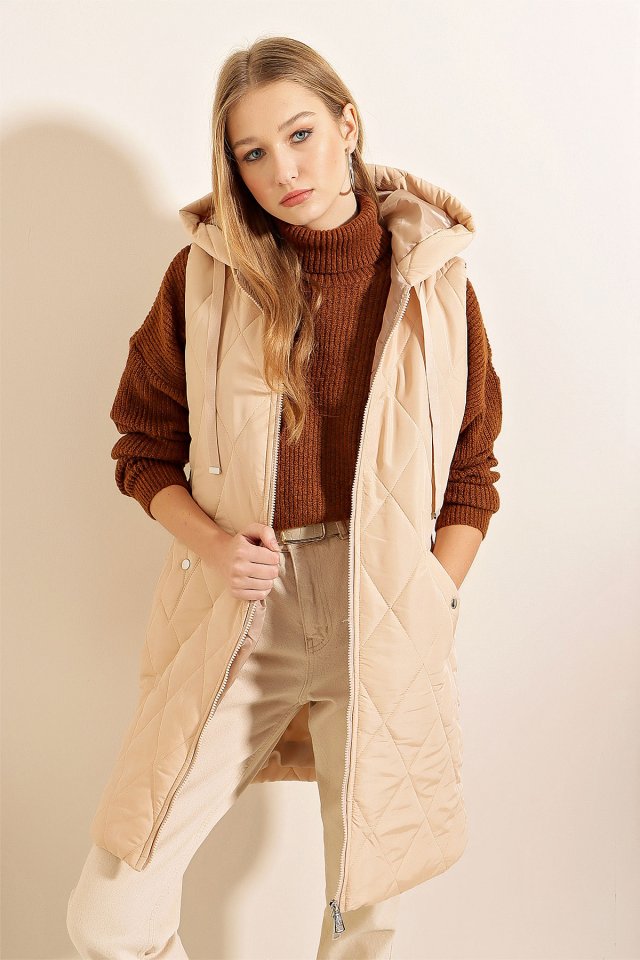 5140 Kapşonlu Uzun Şişme Yelek – Bisküvi